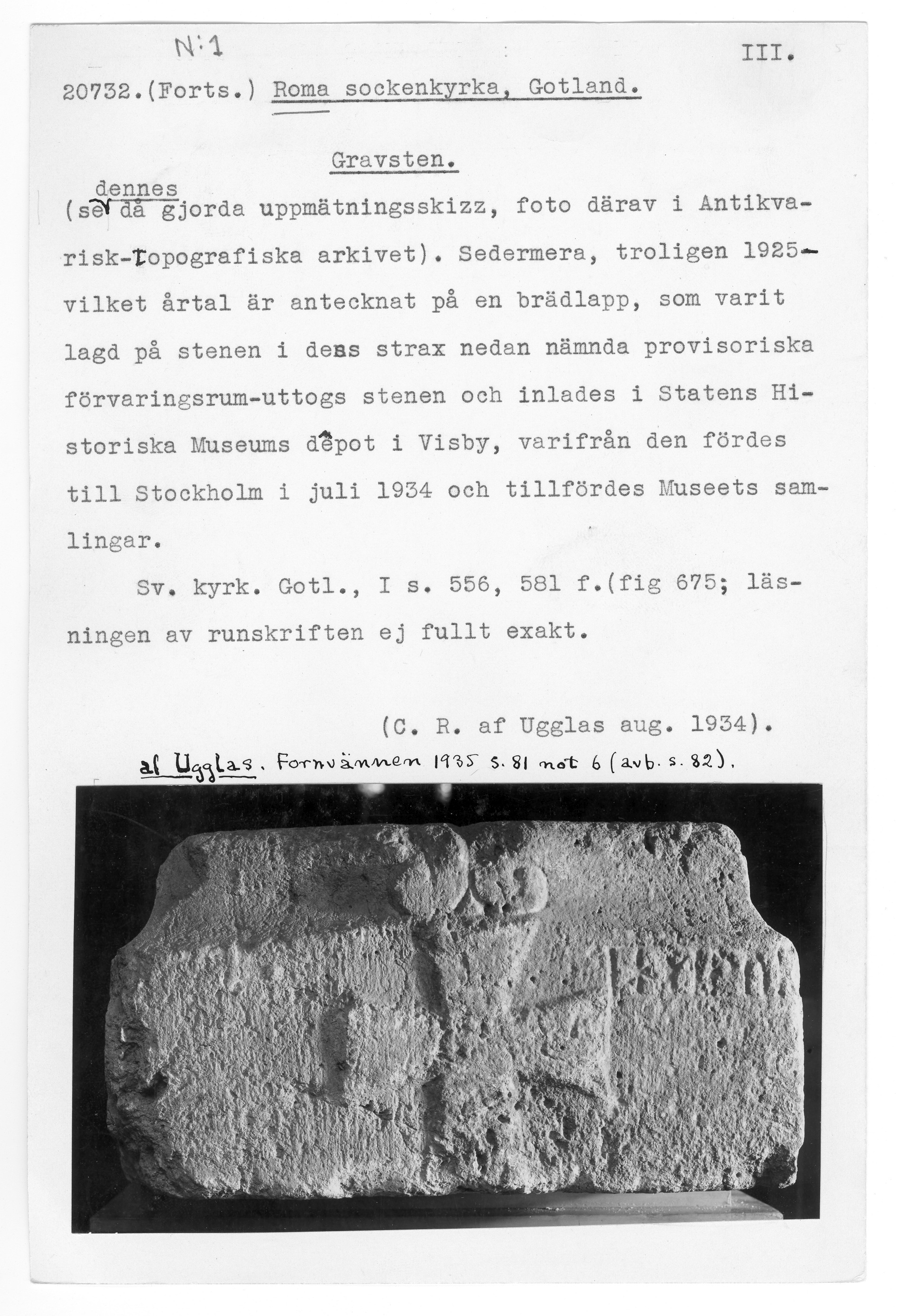 20732: \ Gotland \ Roma sockenkyrka, Gotland. \ Gravsten \ Medeltid