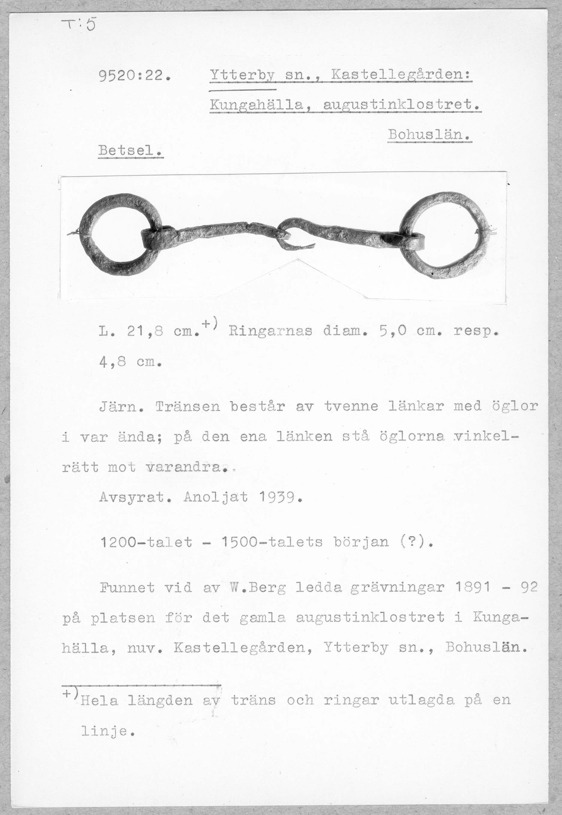 9520:22 \ Bohuslän \ Ytterby sn, Kastellegården: Kungahälla, augustinklostret. Bohuslän. \ Betsel \ Medeltid