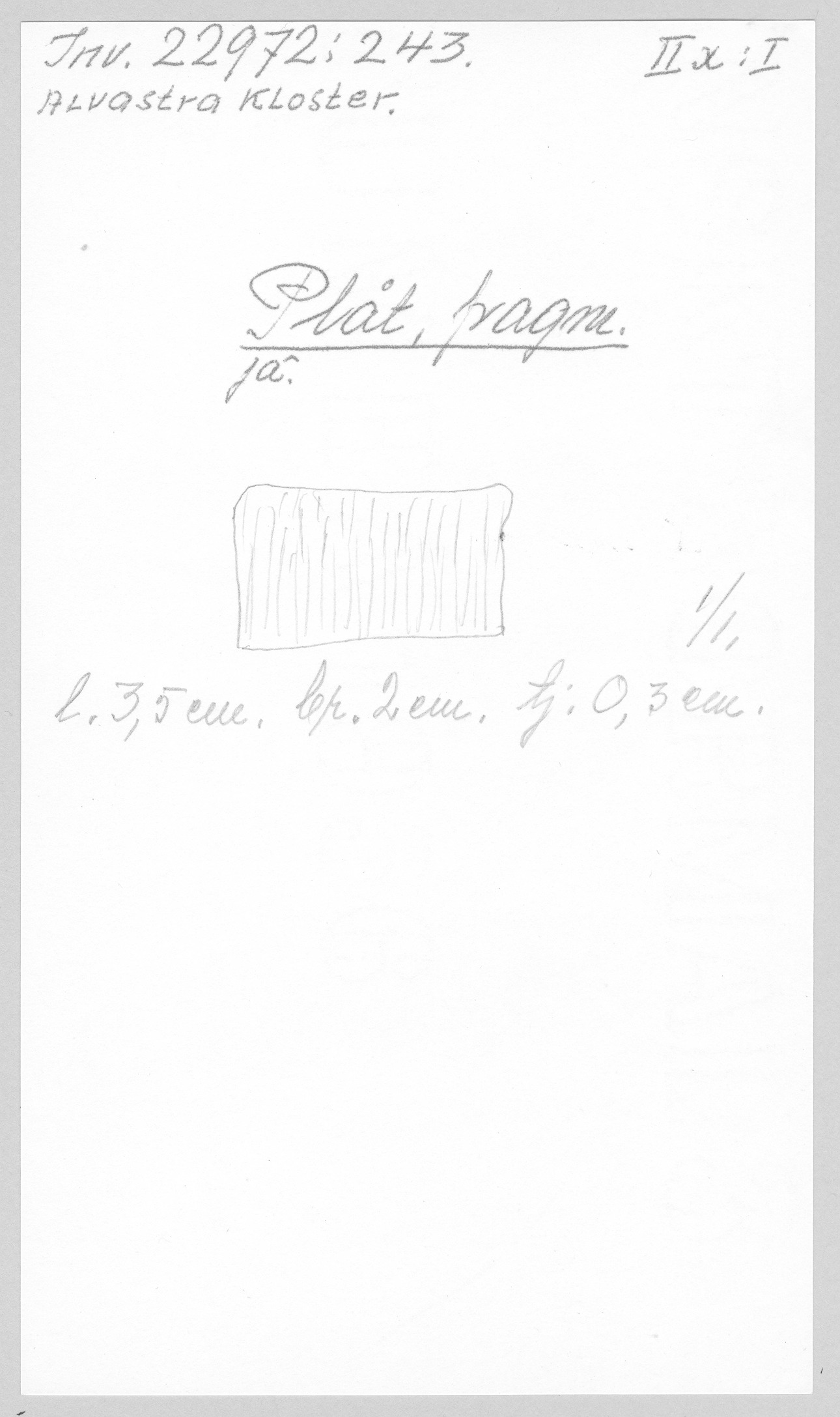 Ög, Västra Tollstad, Alvastra kloster. Plåt, fragm