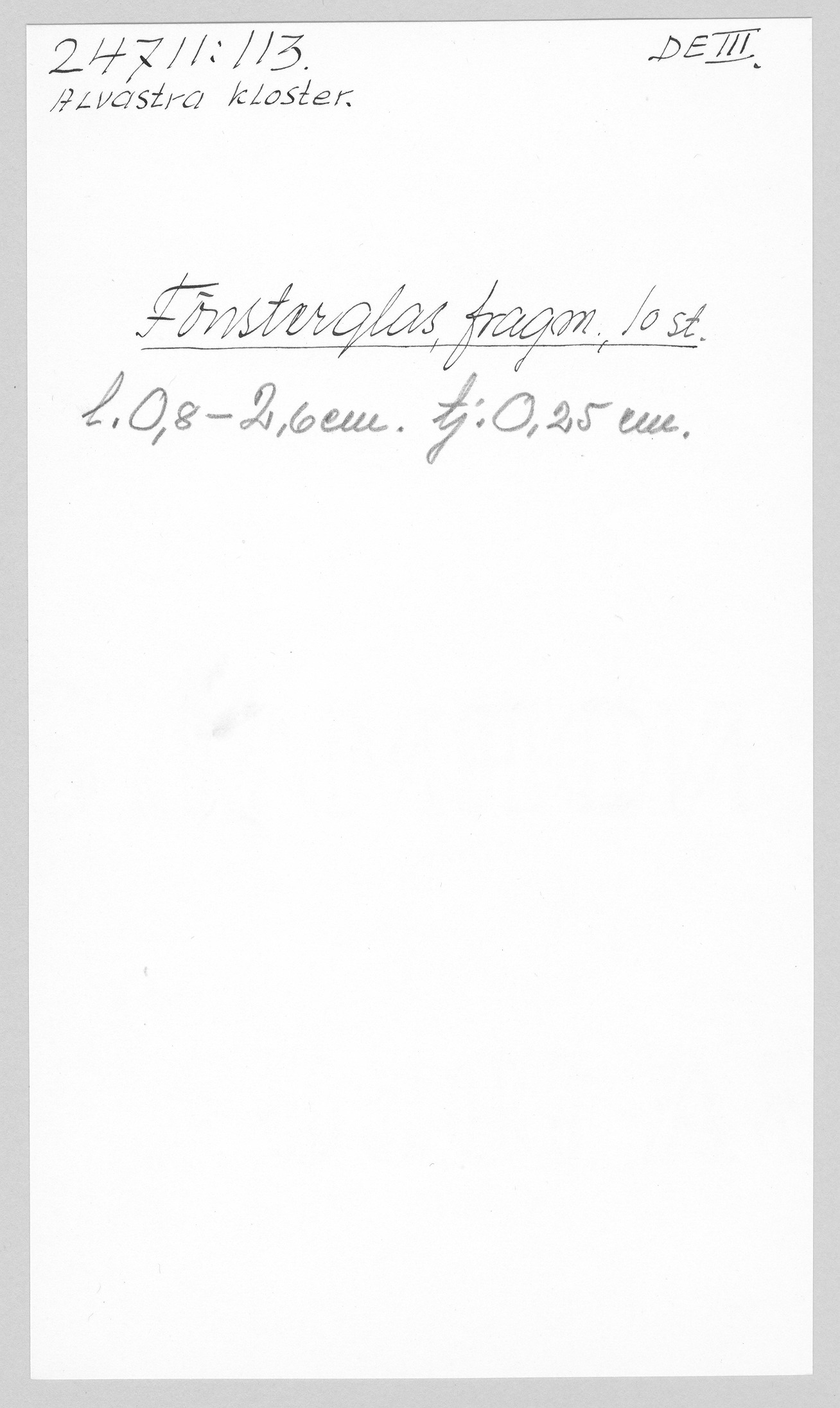 Ög, Västra Tollstad, Alvastra kloster. Fönsterglas, fragm. 10 st