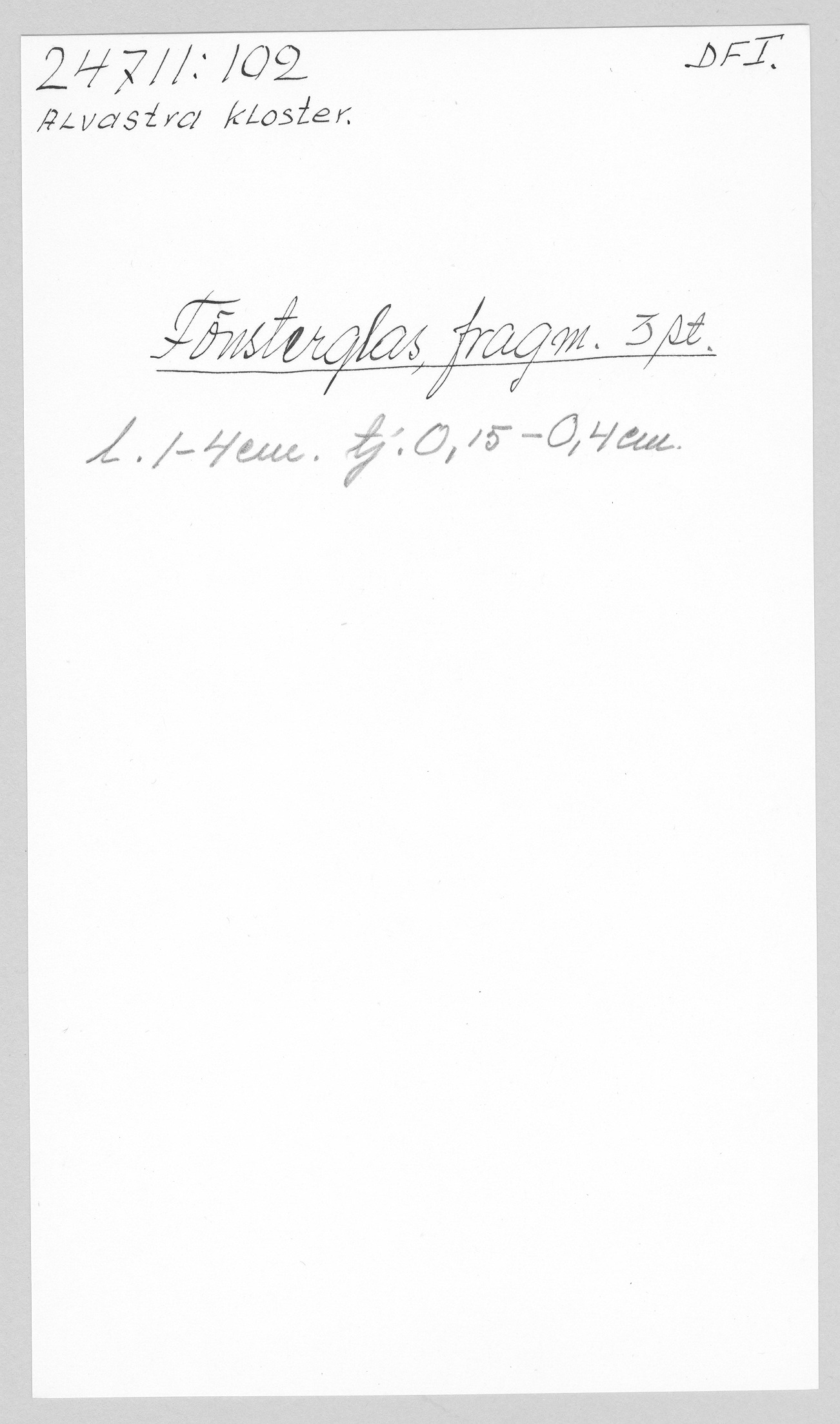 Ög, Västra Tollstad, Alvastra kloster. Fönsterglas, fragm. 3 st