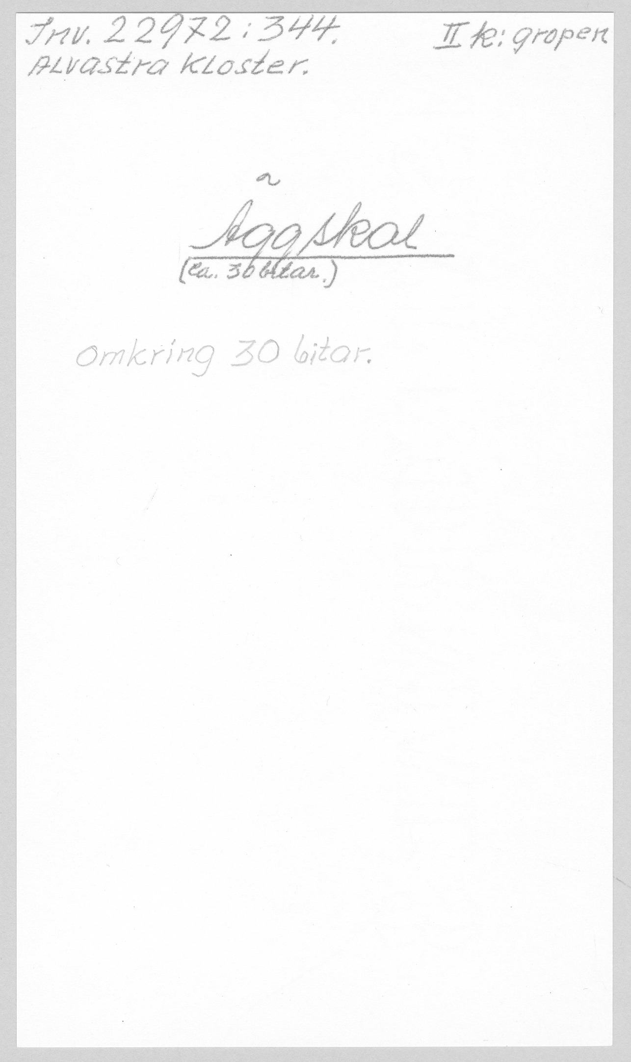 Ög, Västra Tollstad, Alvastra kloster. Äggskal