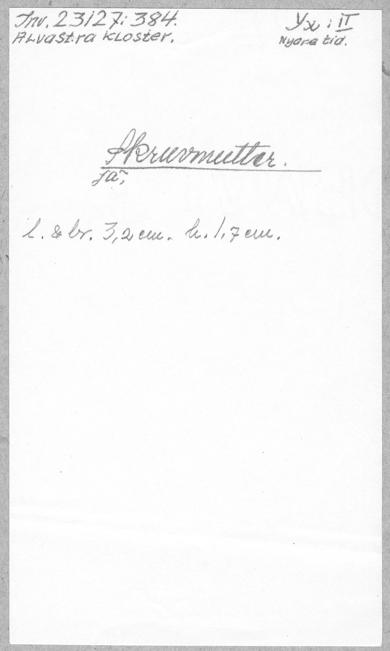 Ög, Västra Tollstad, Alvastra kloster. Skruvmutter