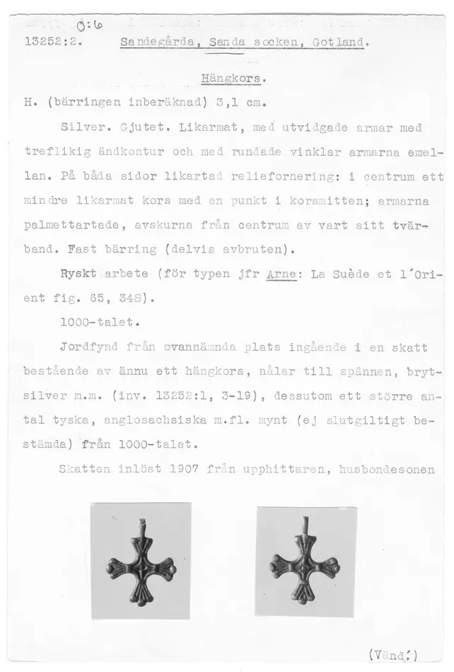 13252:2 \ Gotland \ Sandegårda, Sanda socken, Gotland \ Hängkors \ Medeltid