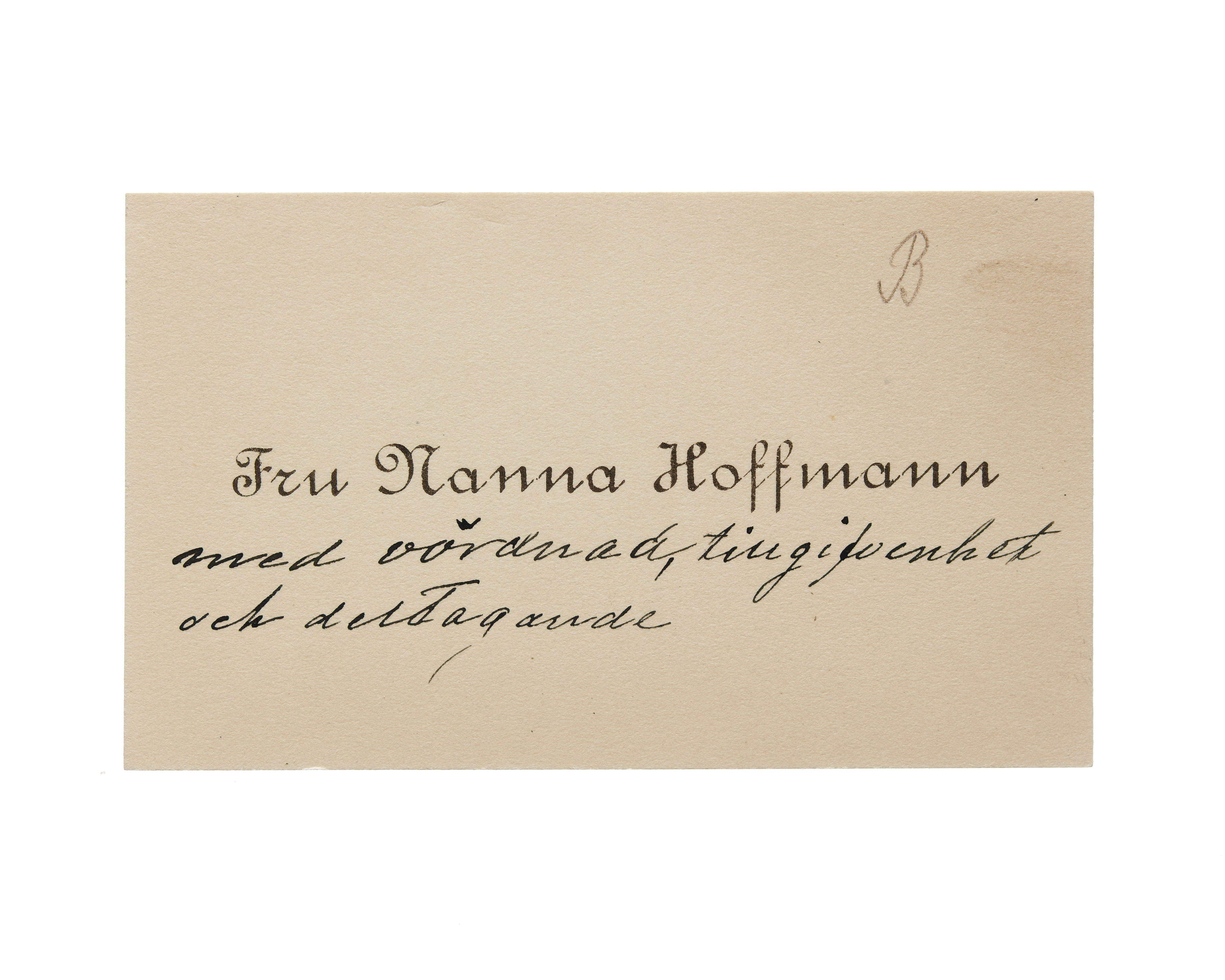 Visitkort från Fru Nanna Hoffman, f. Westin, 1915.
