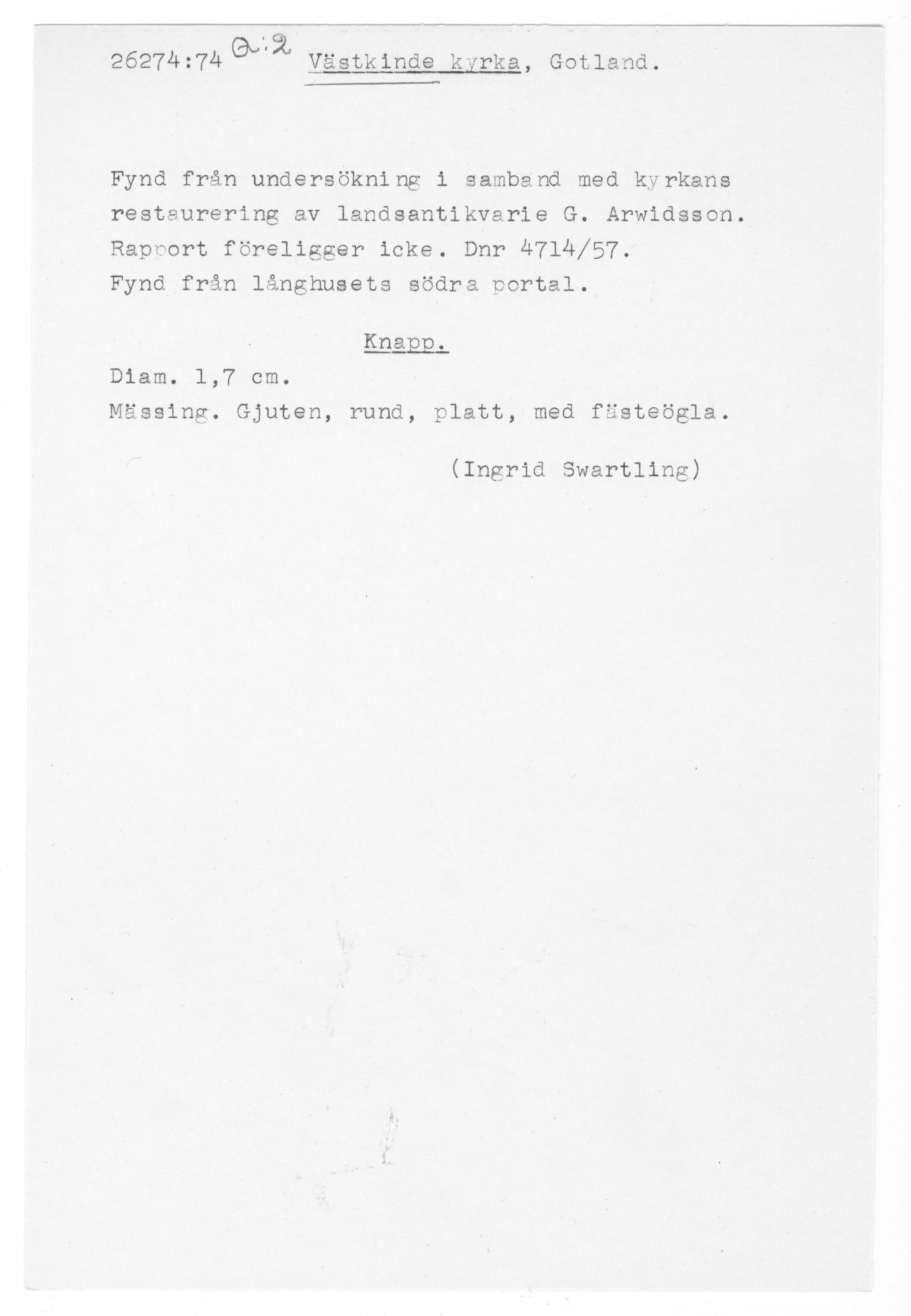 26274:74 \ Gotland \ Västkinde kyrka, Gotland. \ Knapp \ Medeltid