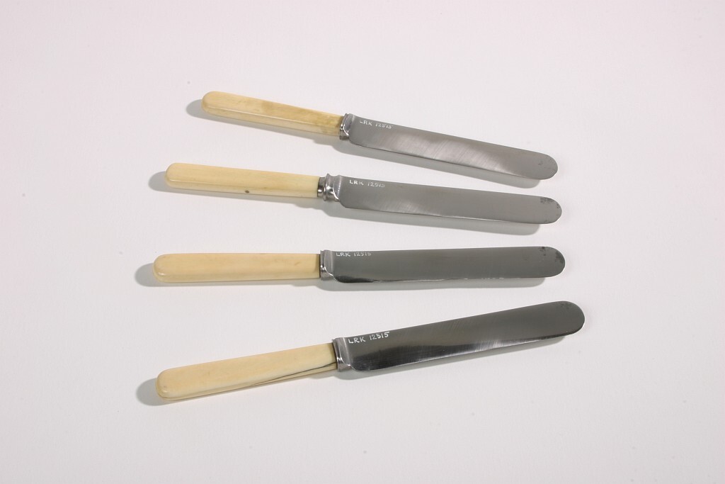 Fyra stycken matknivar med ställskaft av elfenben.