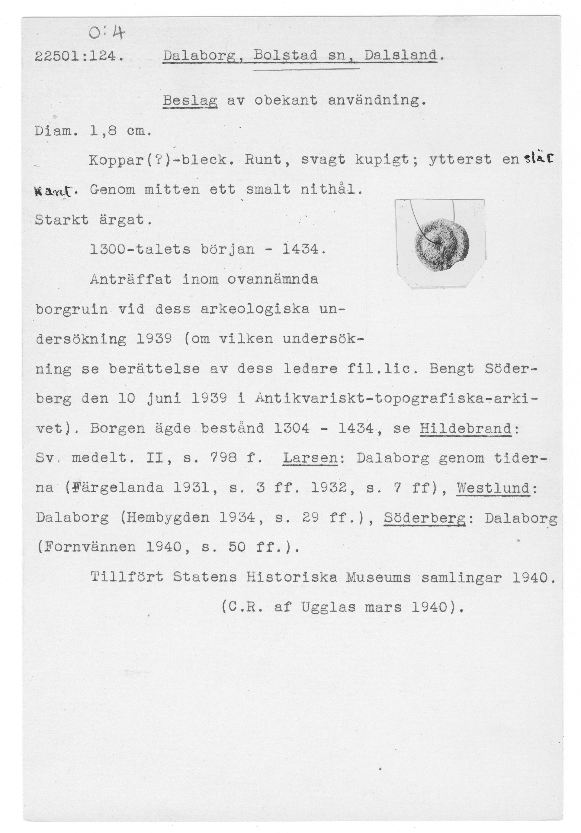 22501:124 \ Dalsland \ Dalaborg, Bolstad sn, Dalsland. \ Beslag av obekant användning \ Medeltid