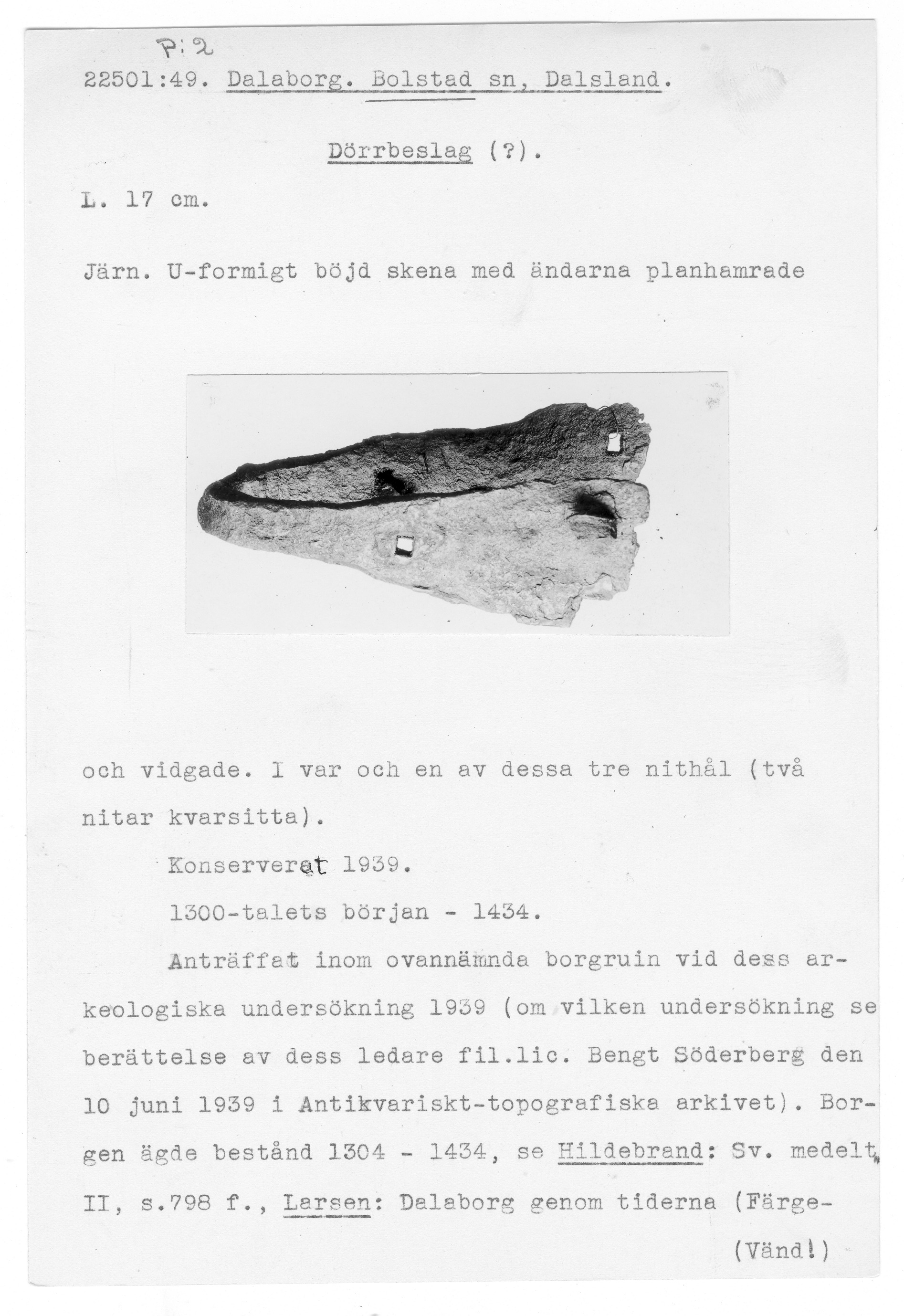 22501:49 \ Dalsland \ Dalaborg. Bolstad sn, Dalsland. \ Dörrbeslag (?) \ Medeltid