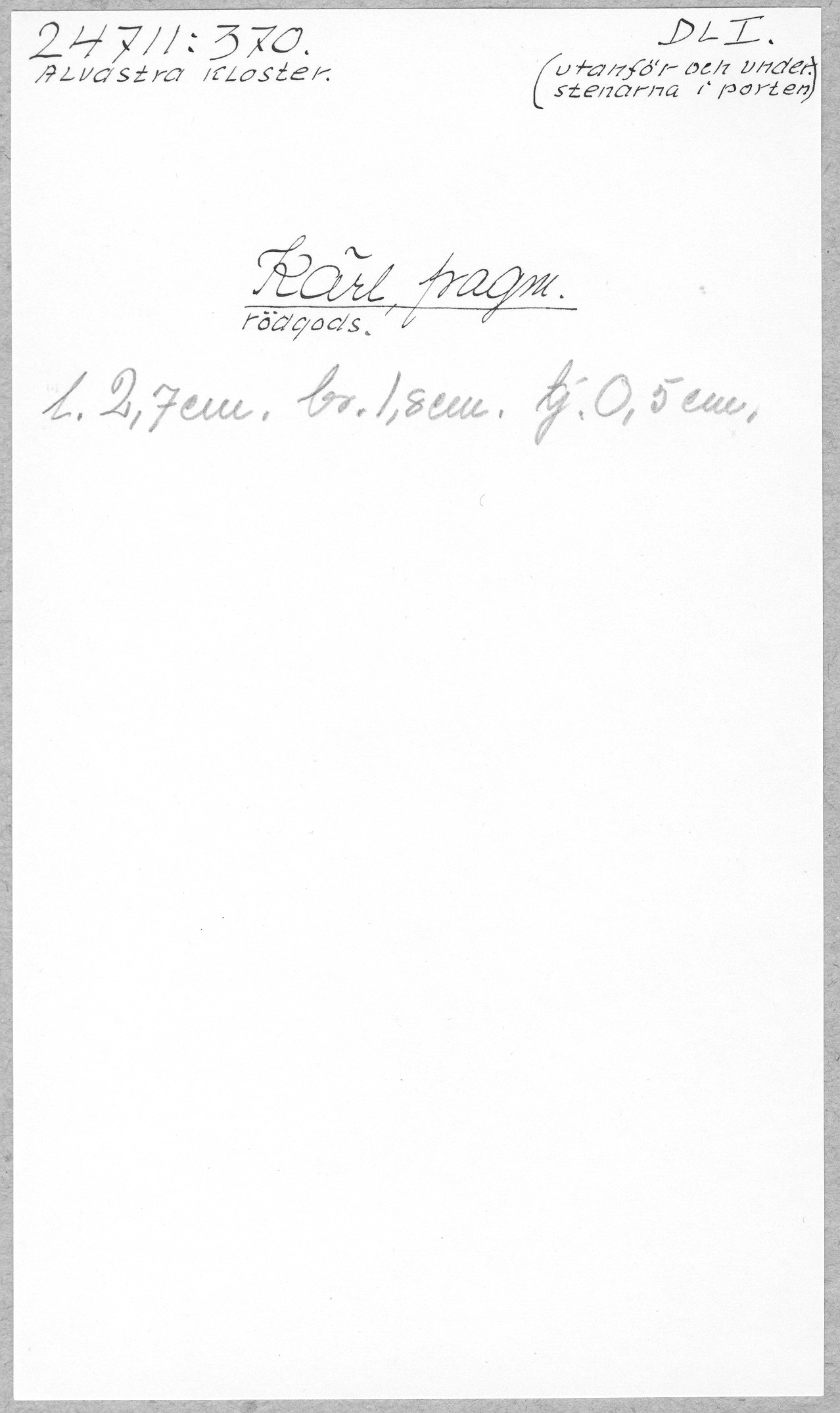 Ög, Västra Tollstad, Alvastra kloster. Kärl, fragm