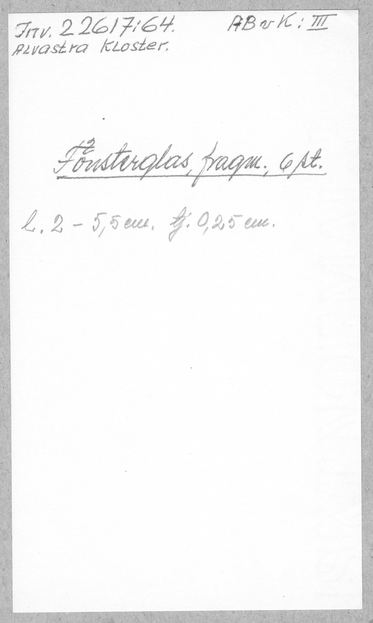 Ög, Västra Tollstad, Alvastra kloster. Fönsterglas, fragm. 6 st