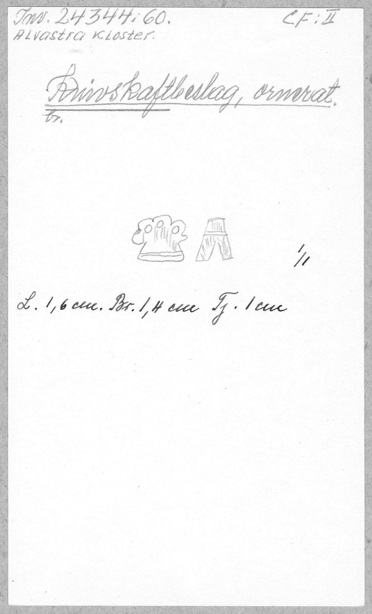 Ög, Västra Tollstad, Alvastra kloster. Knivskaftbeslag, ornerat