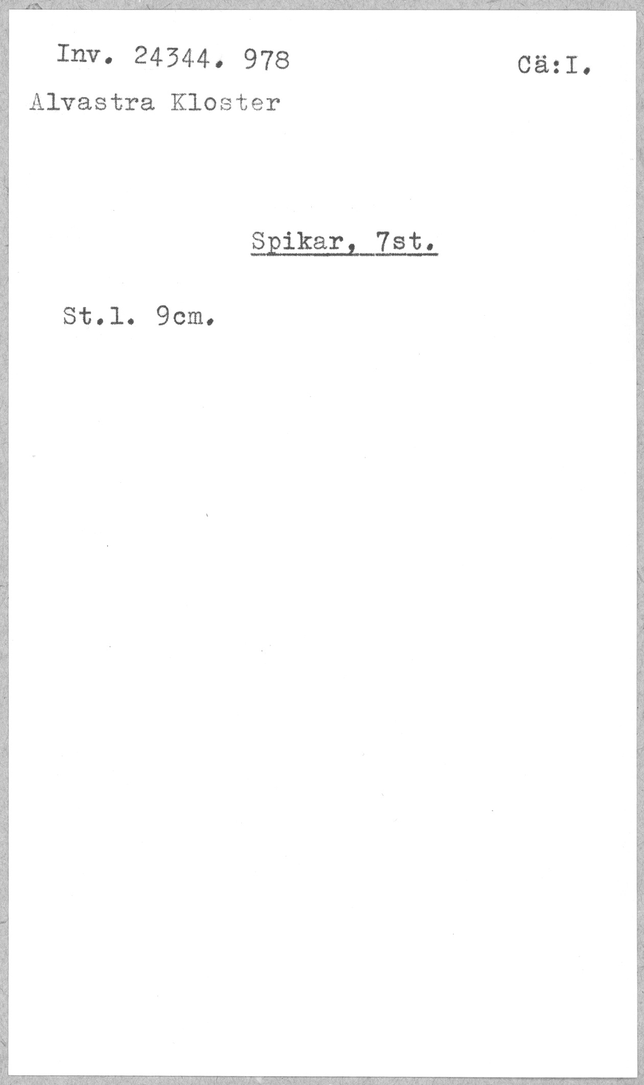 Ög, Västra Tollstad, Alvastra kloster. Spikar, 7 st