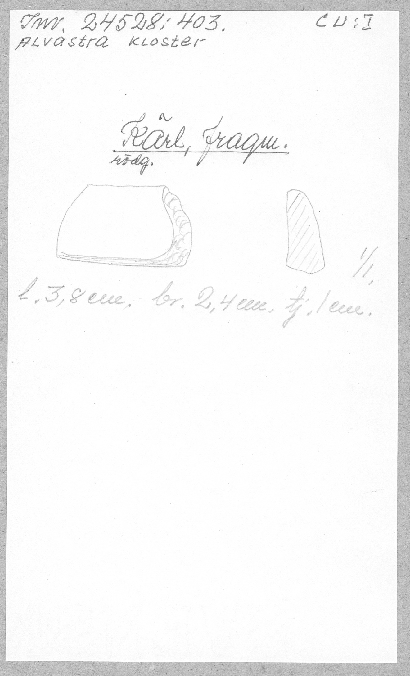 Ög, Västra Tollstad, Alvastra kloster. Kärl, fragm