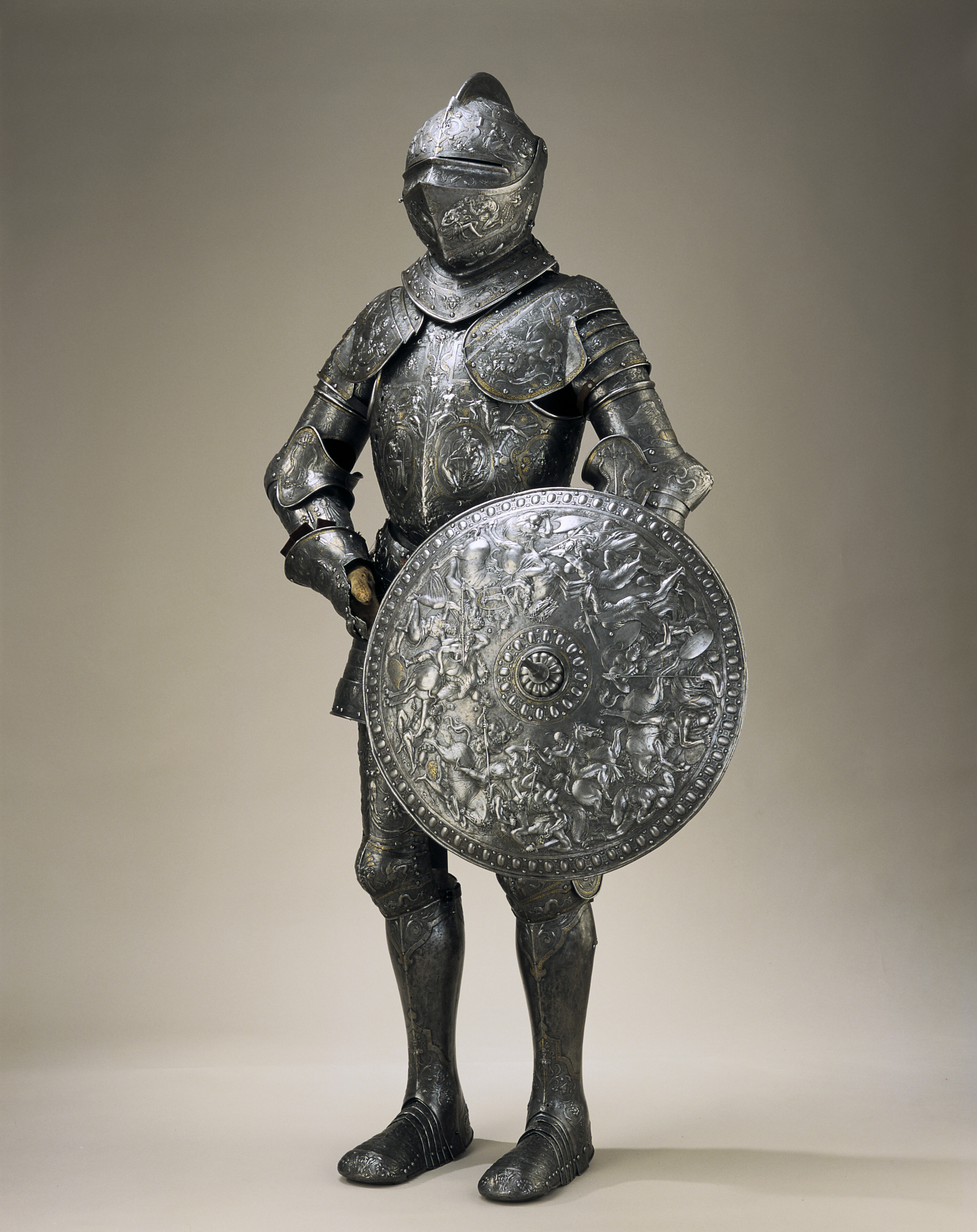 Erik XIV rustning och sköld från 1562 i manieristisk stil.