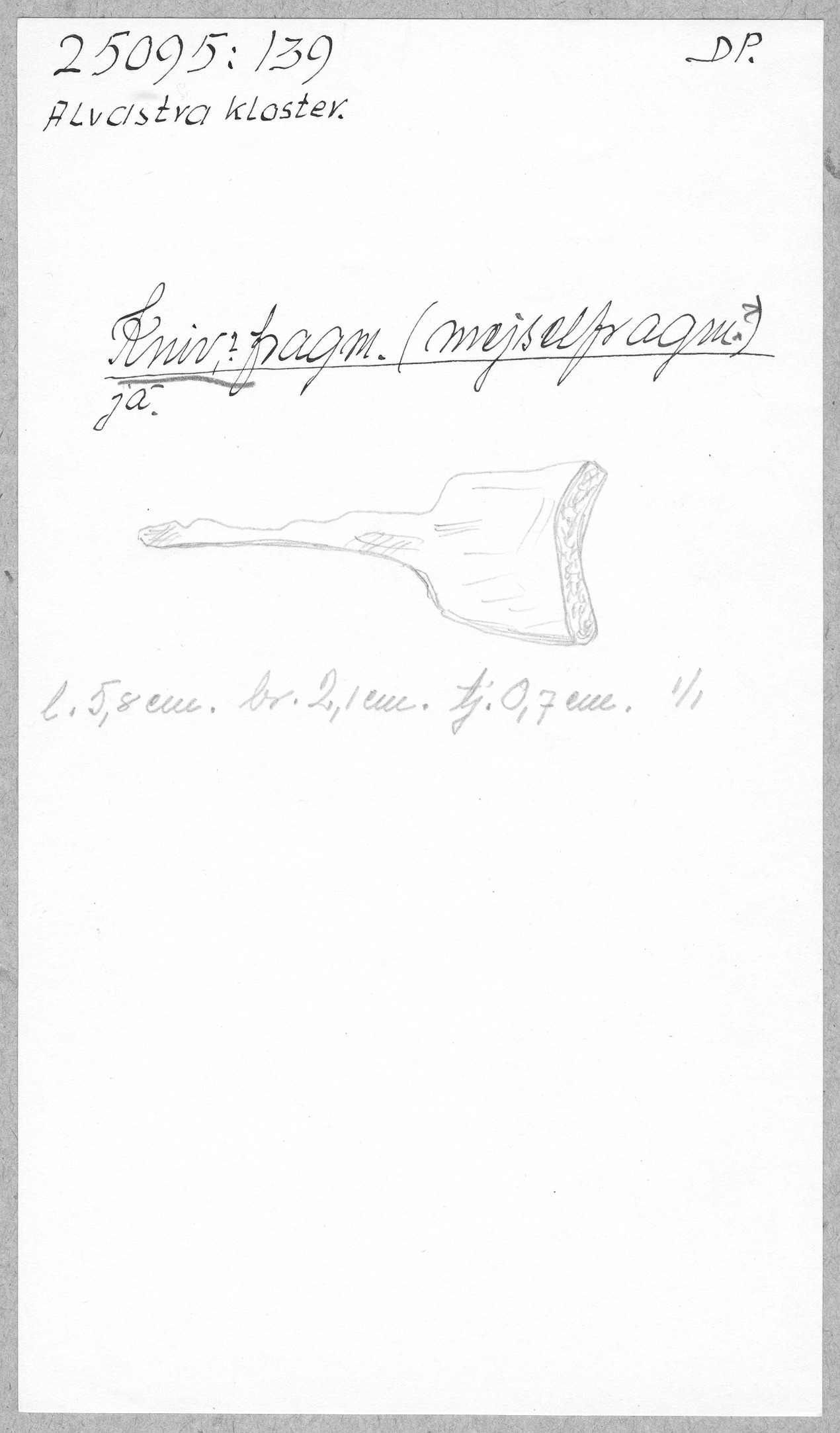 Ög, Västra Tollstad, Alvastra kloster. Kniv? Fragm. (mejselfragm?)