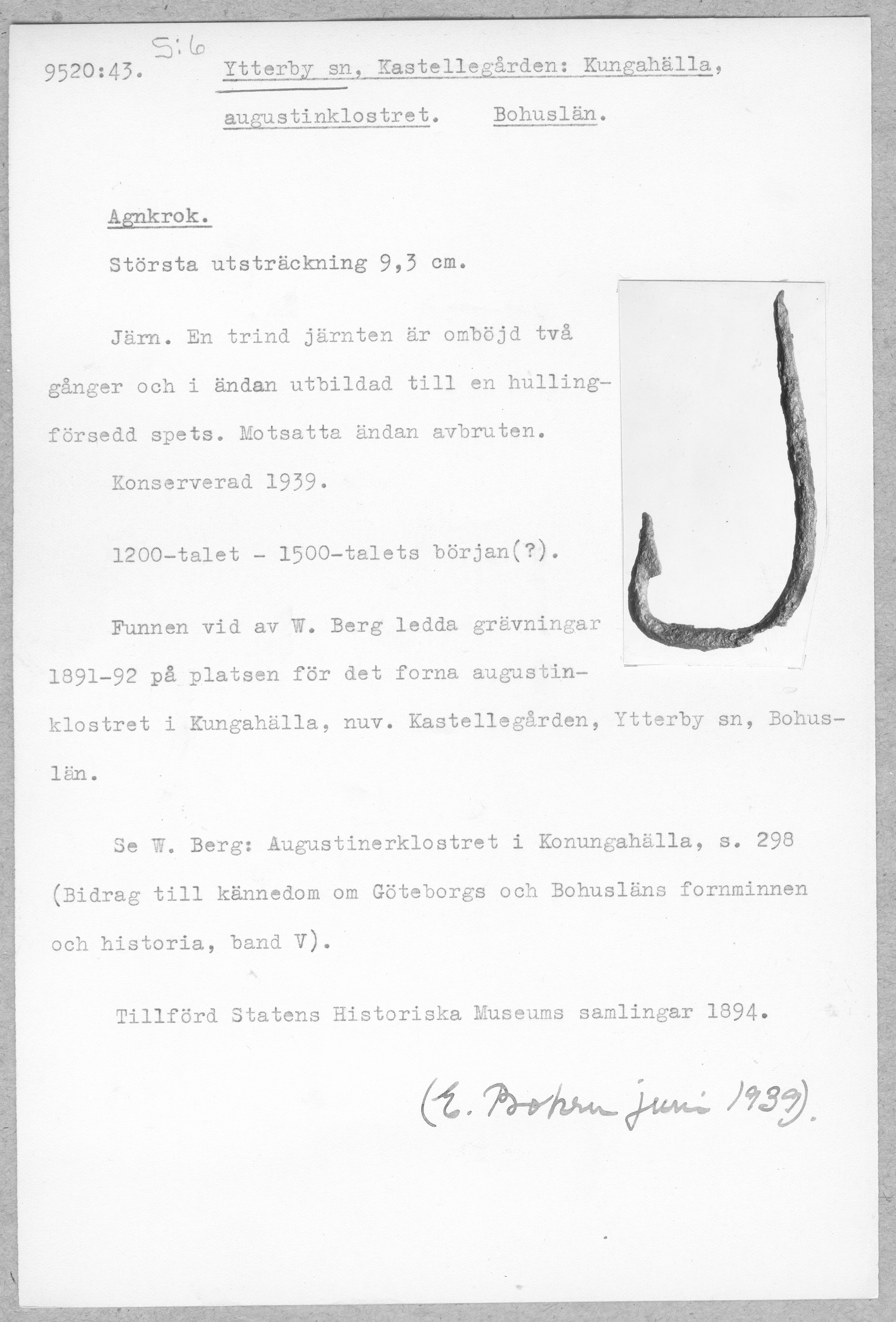 9520:43 \ Bohuslän \ Ytterby sn, Kastellegården: Kungahälla, augustinklostret. Bohuslän. \ Agnkrok \ Medeltid