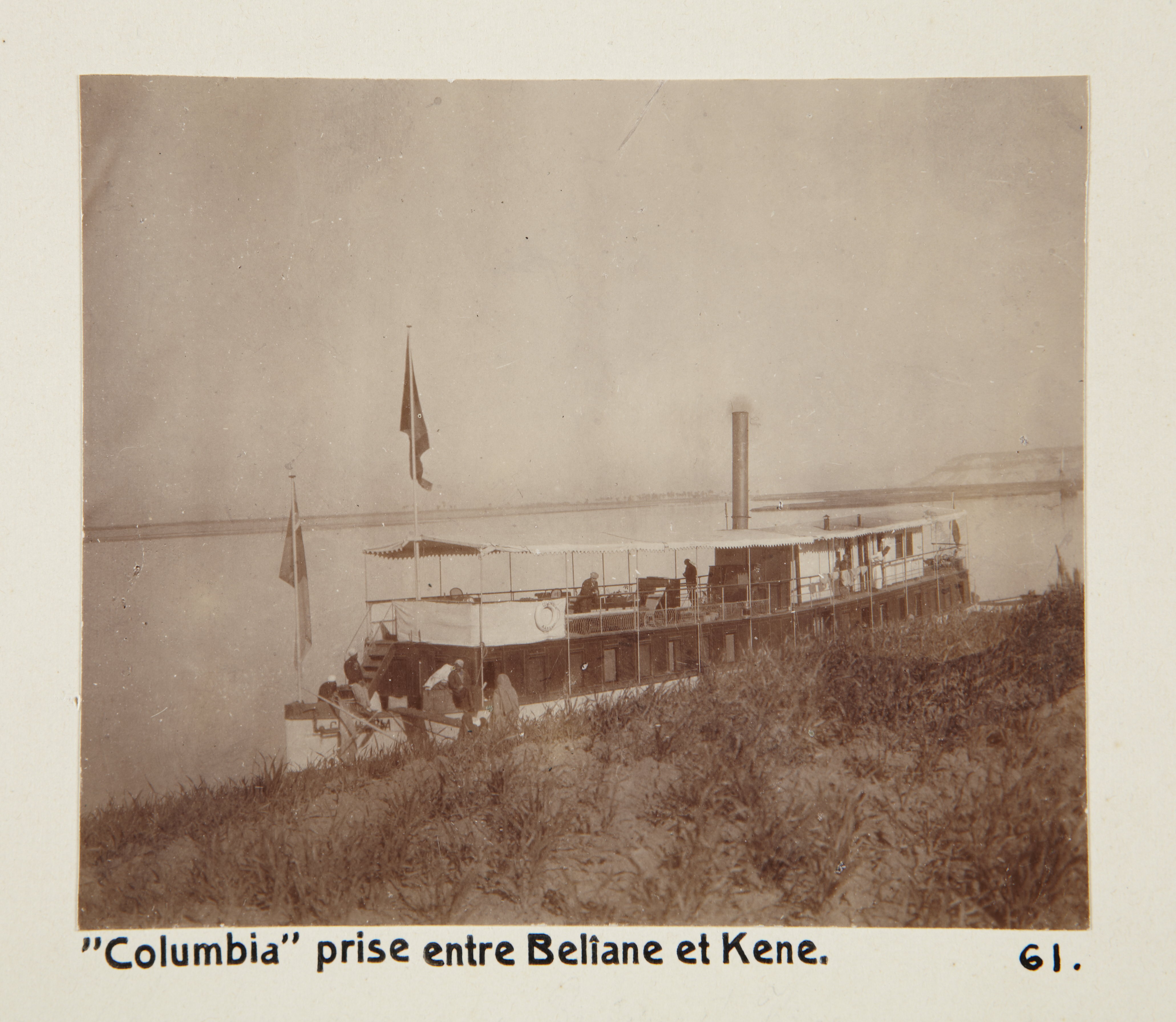 Fotografi från familjen von Hallwyls resa genom Egypten och Sudan, 5 november 1900 – 29 mars 1901. Ångfartyget Columbia, fotograferat mellan Beliane och Qena.