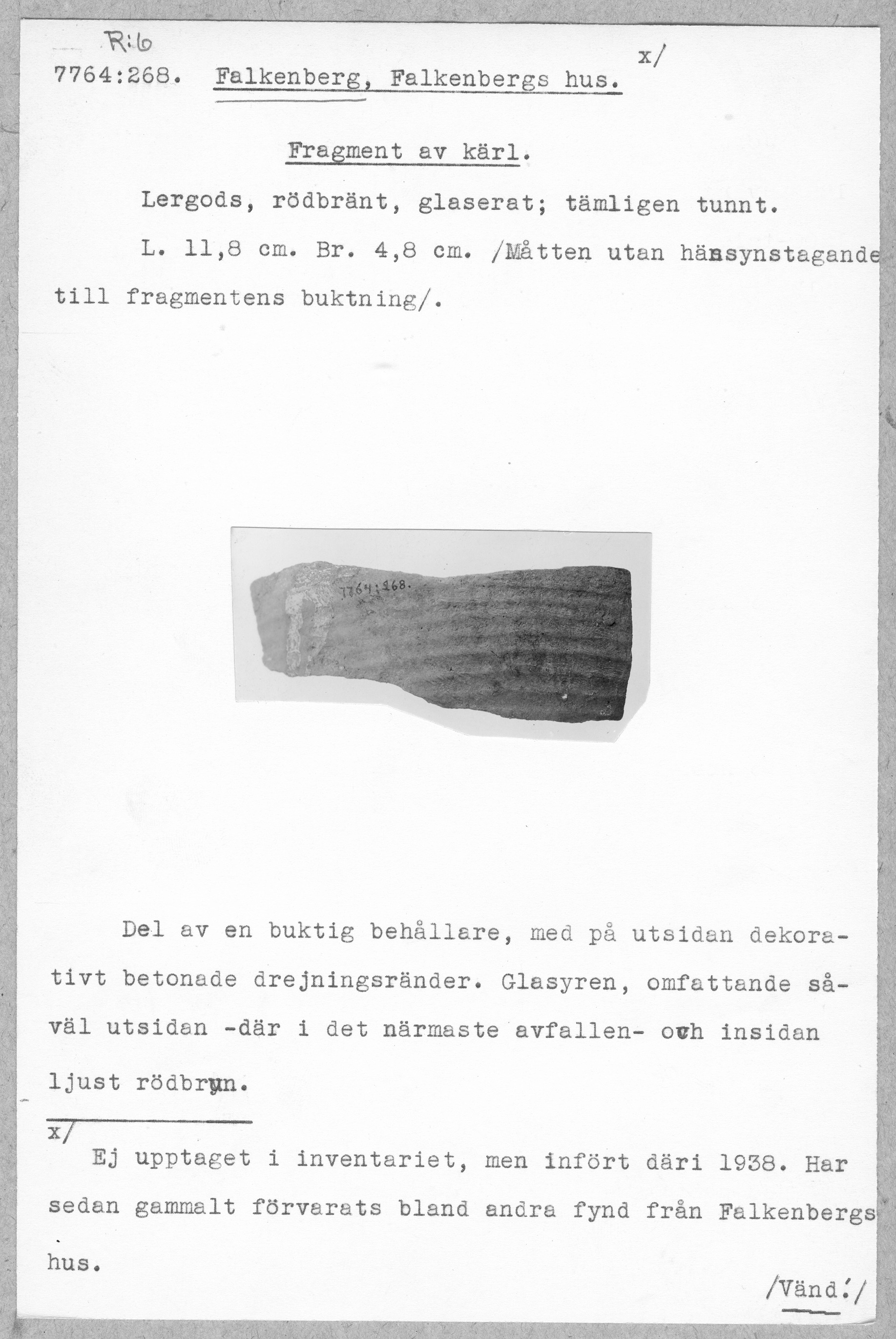 7764:268 \ Halland \ Falkenberg, Falkenbergs hus. \ Fragment av kärl \ Medeltid