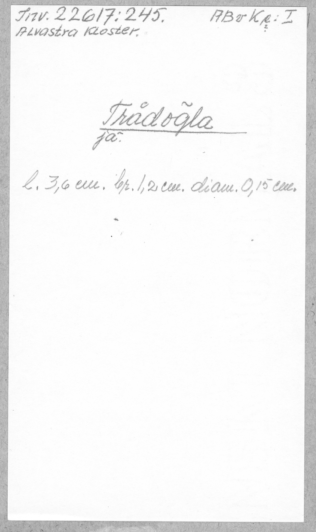 Ög, Västra Tollstad, Alvastra kloster. Trådögla