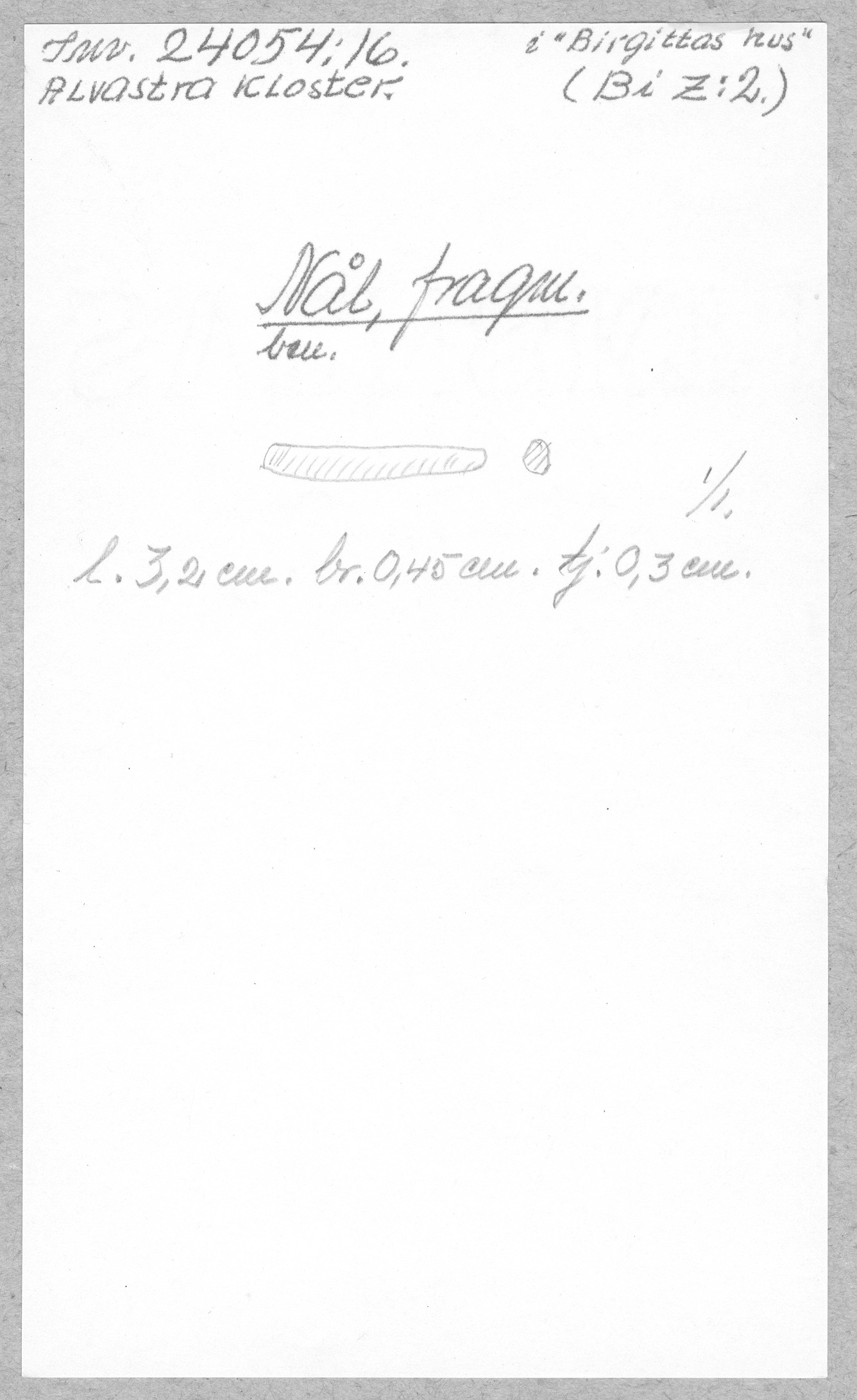 Ög, Västra Tollstad, Alvastra kloster. Nål, fragm