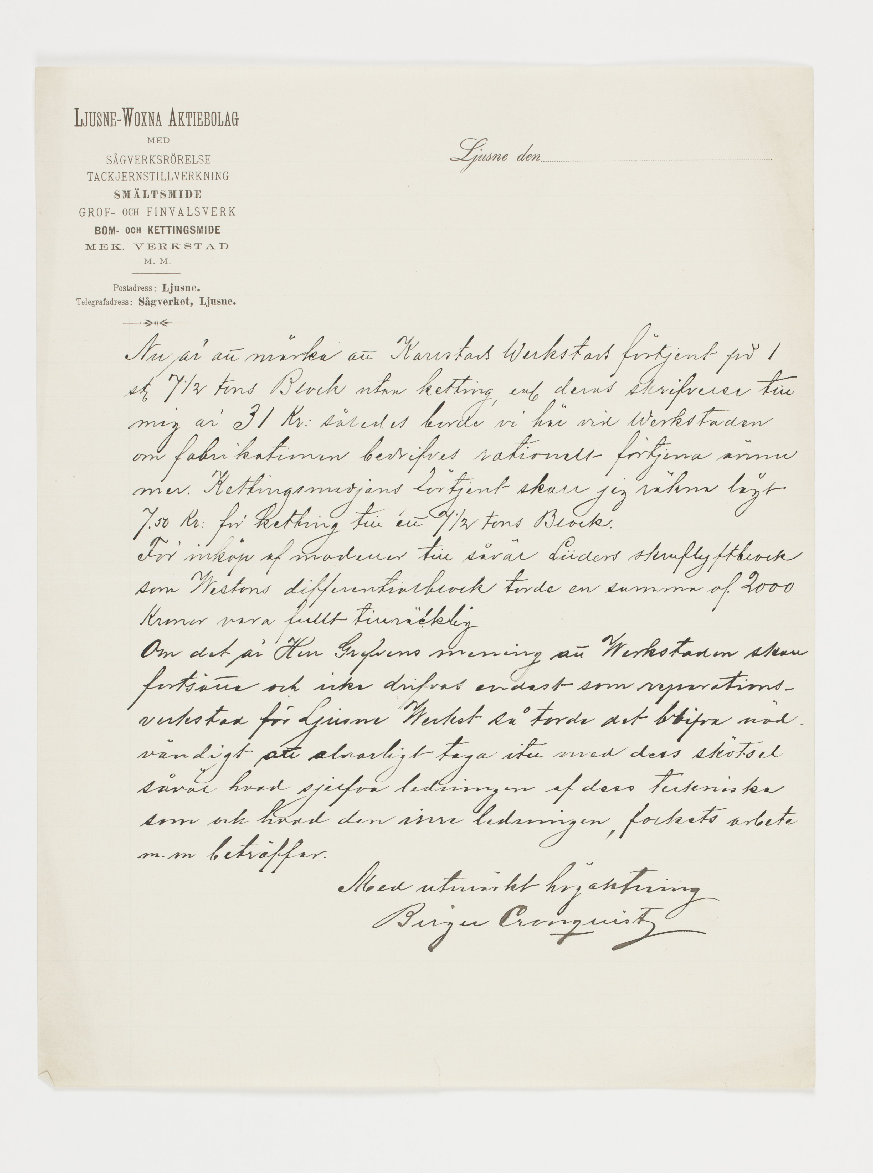 Affärshandling, Ljusne-Voxna