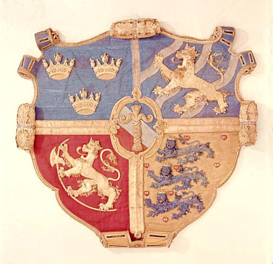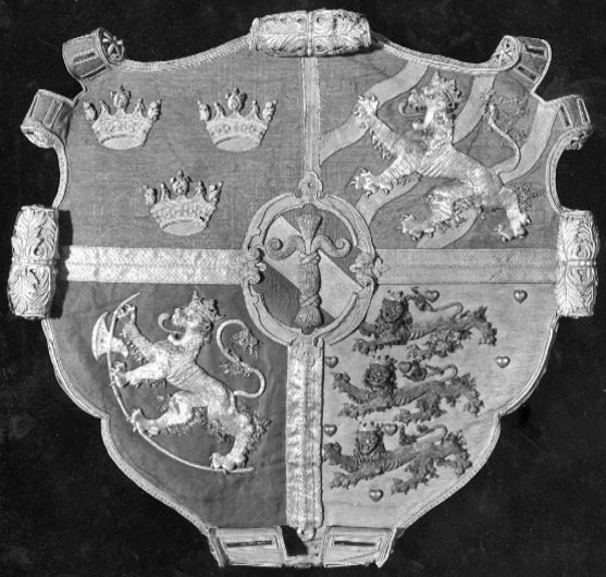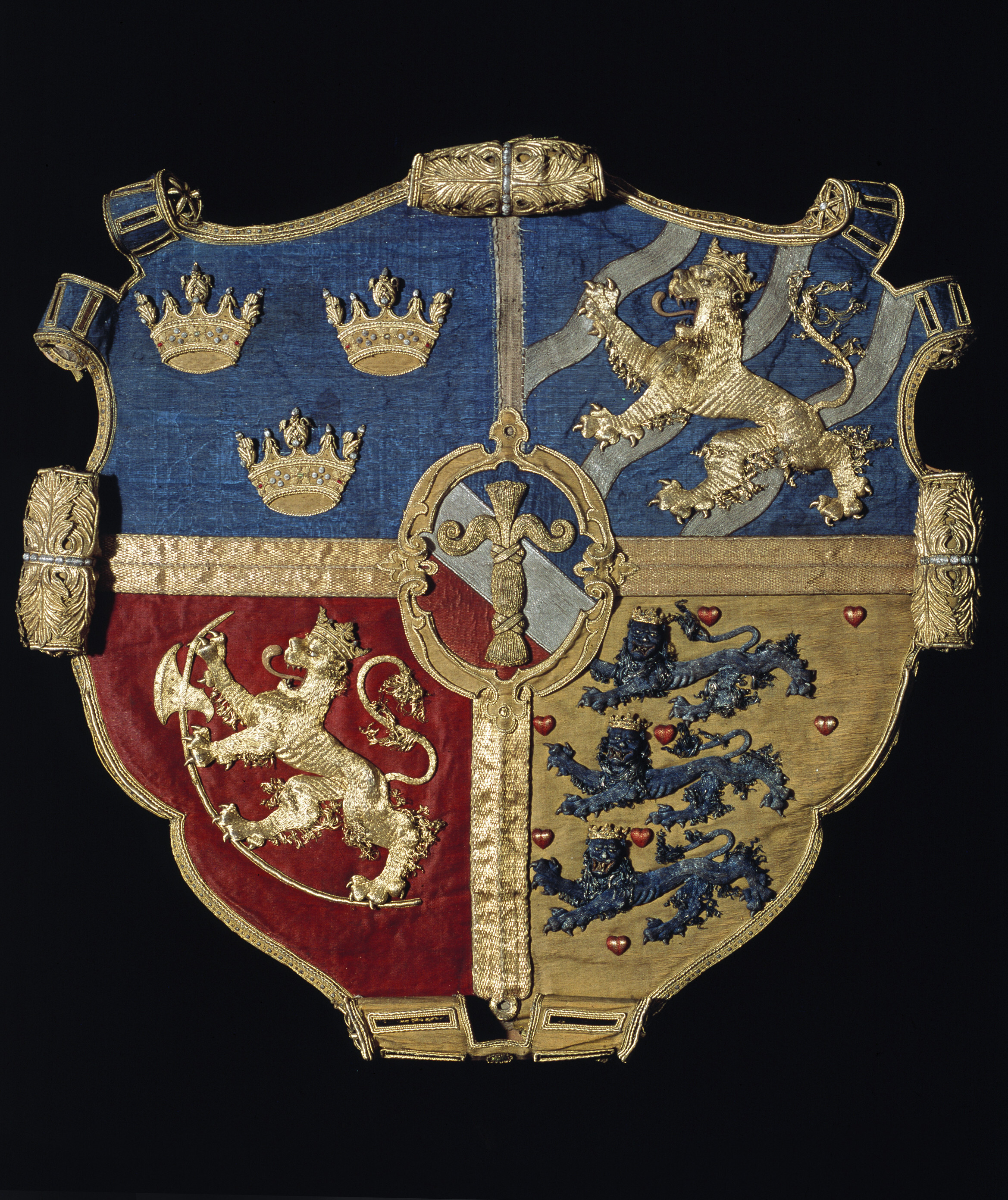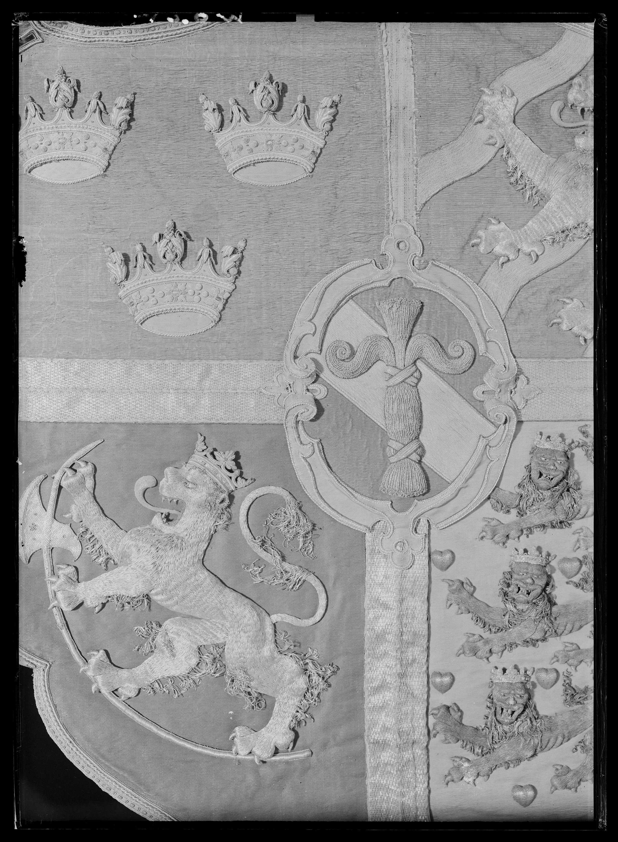 Riksvapen, Vasa-ättens vapen, broderat till kröningen 1561 på beställning av Erik XIV.
