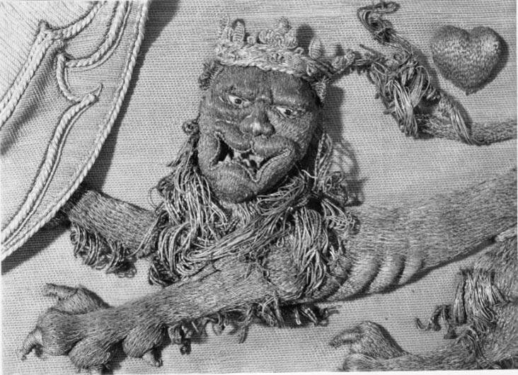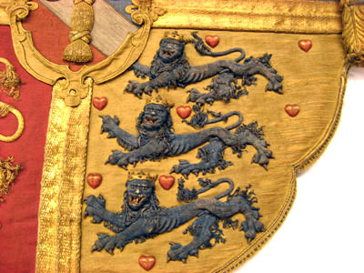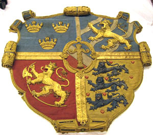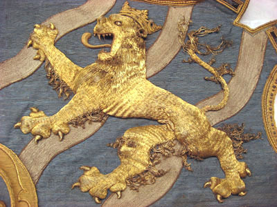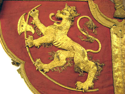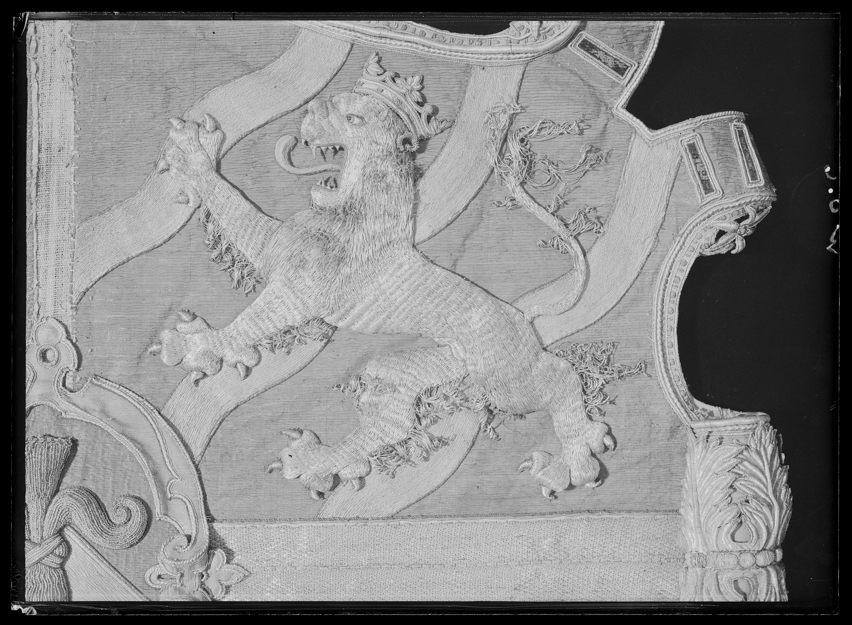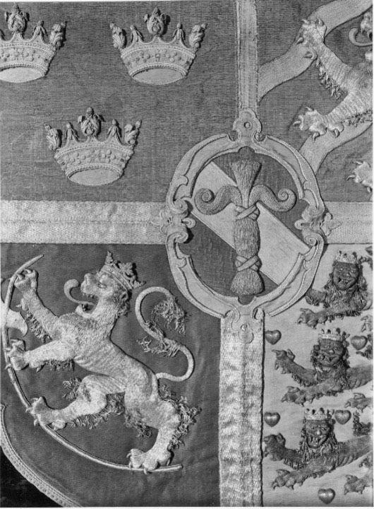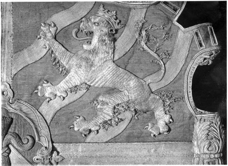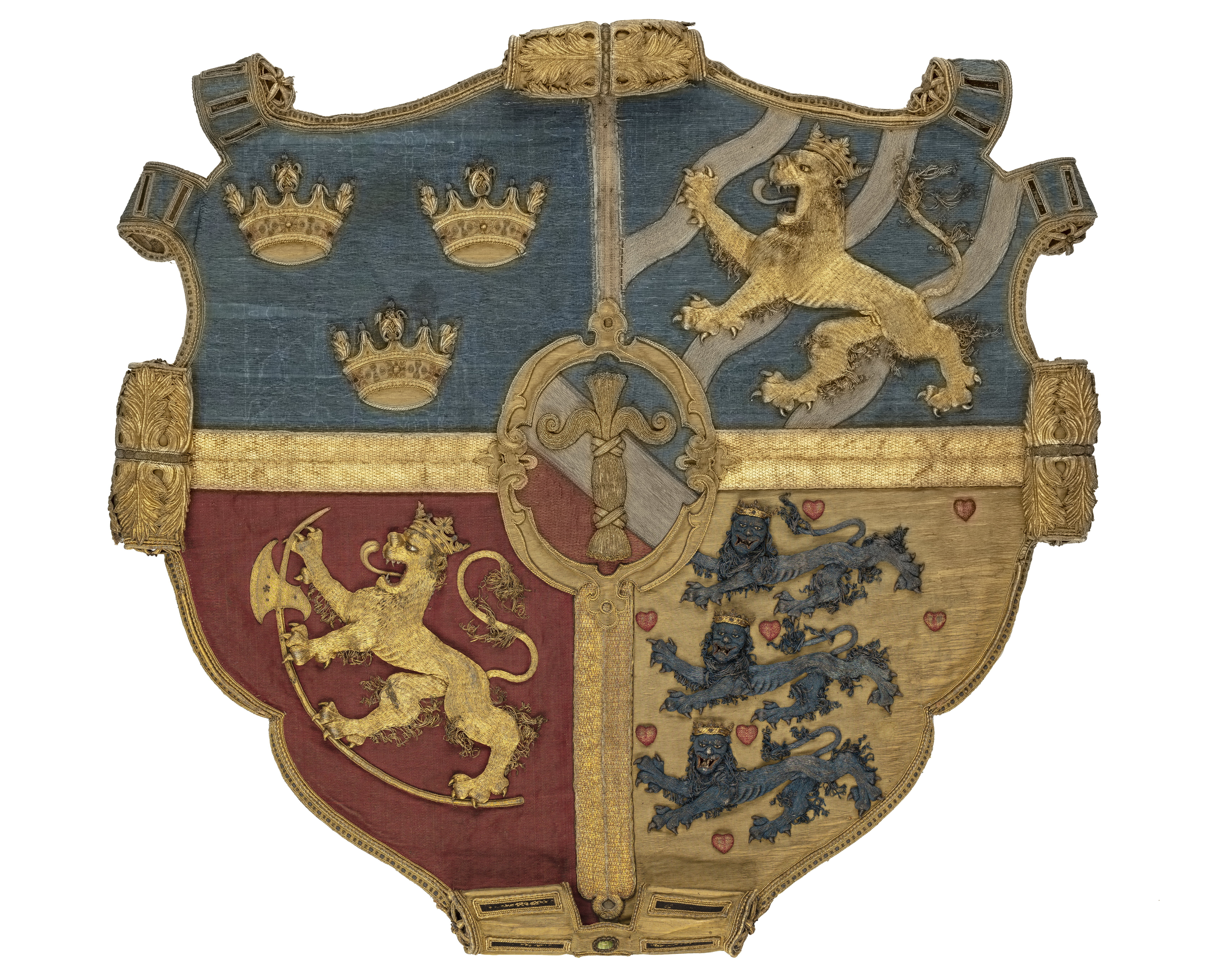 Riksvapen, Vasa-ättens vapen, broderat till kröningen 1561 på beställning av Erik XIV.