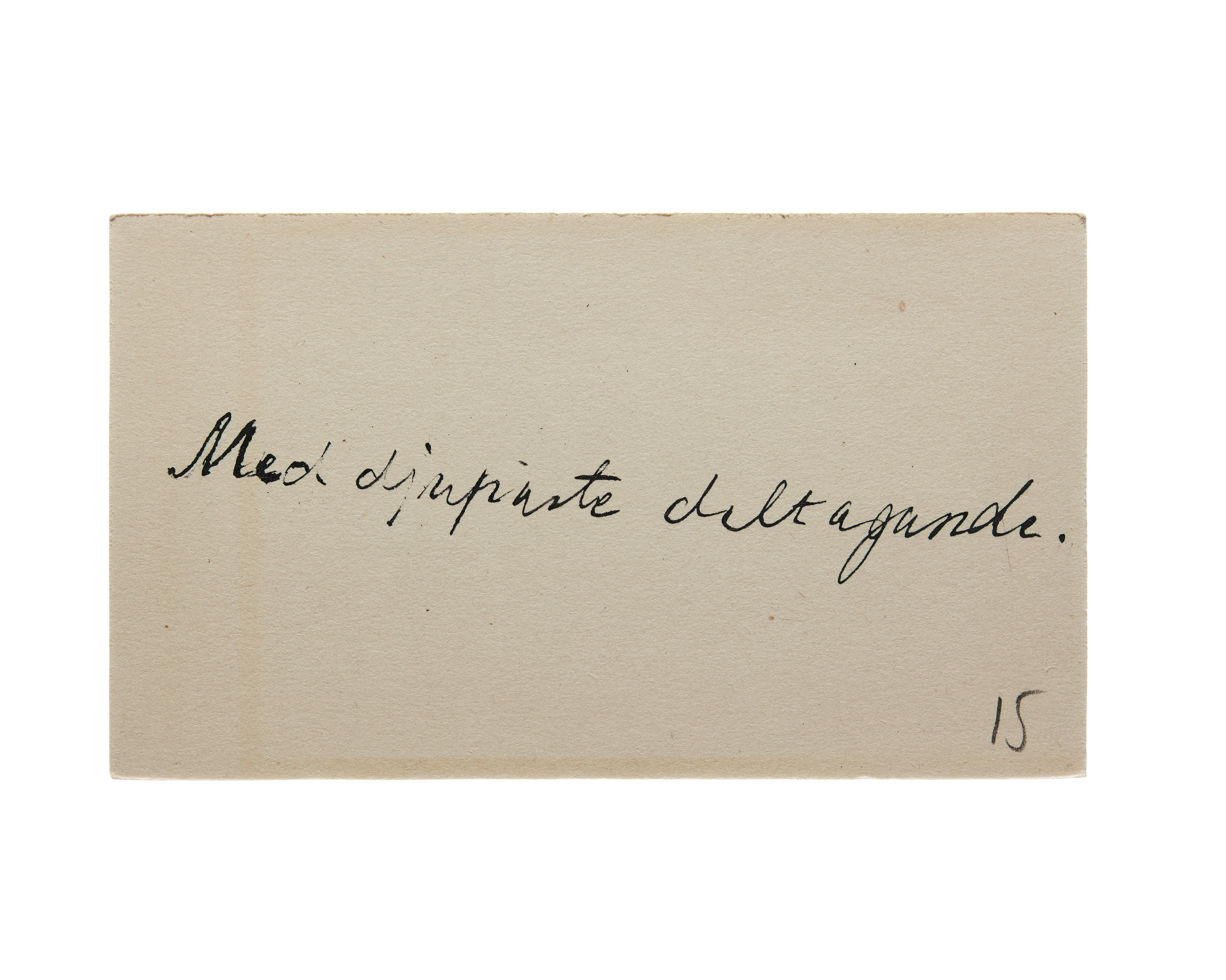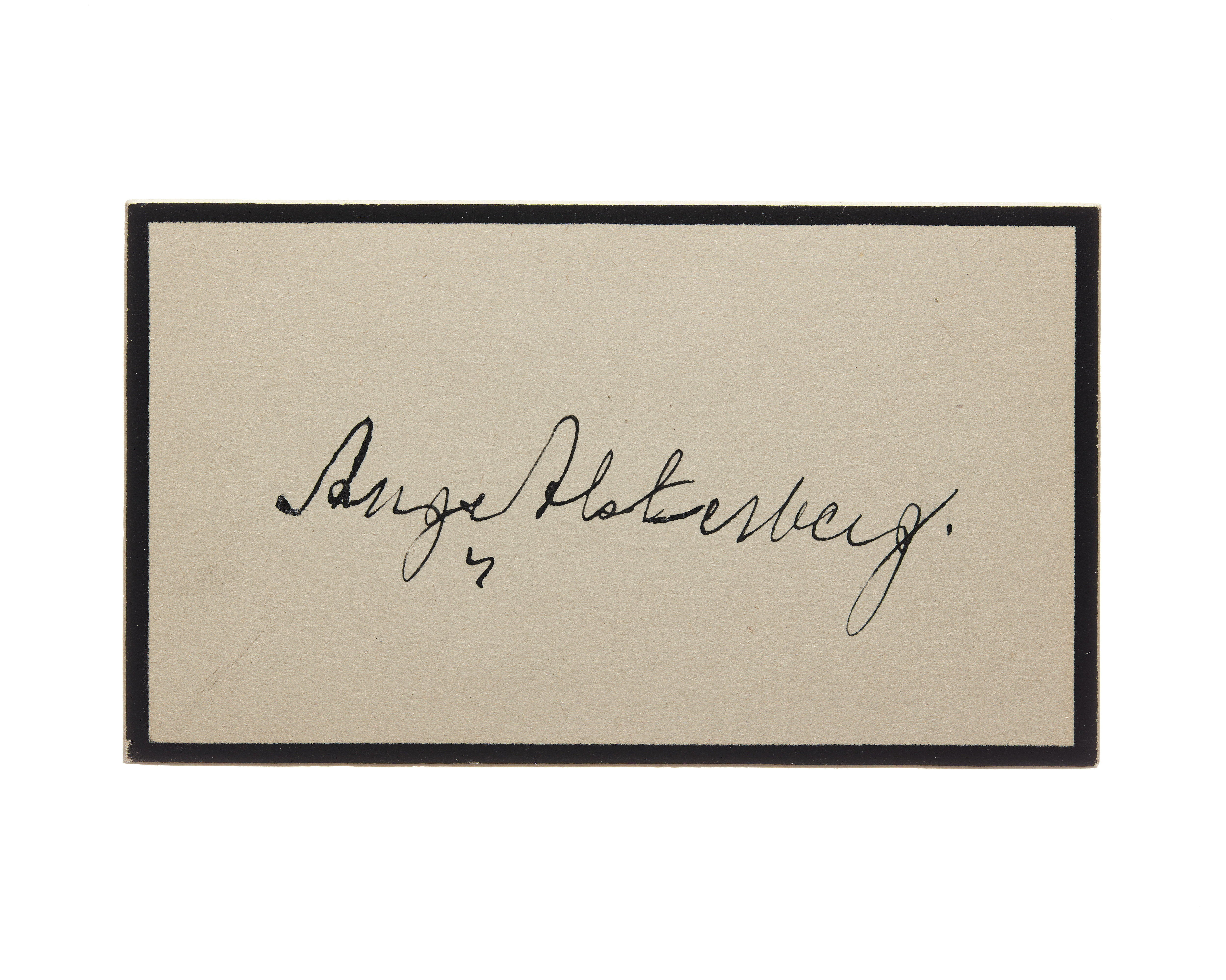 Ett visitkort från smidesverkmästare August Alsterberg, inget datum (sannolikt 1921), det står på baksidan med handskrift "Med djupaste deltagande".