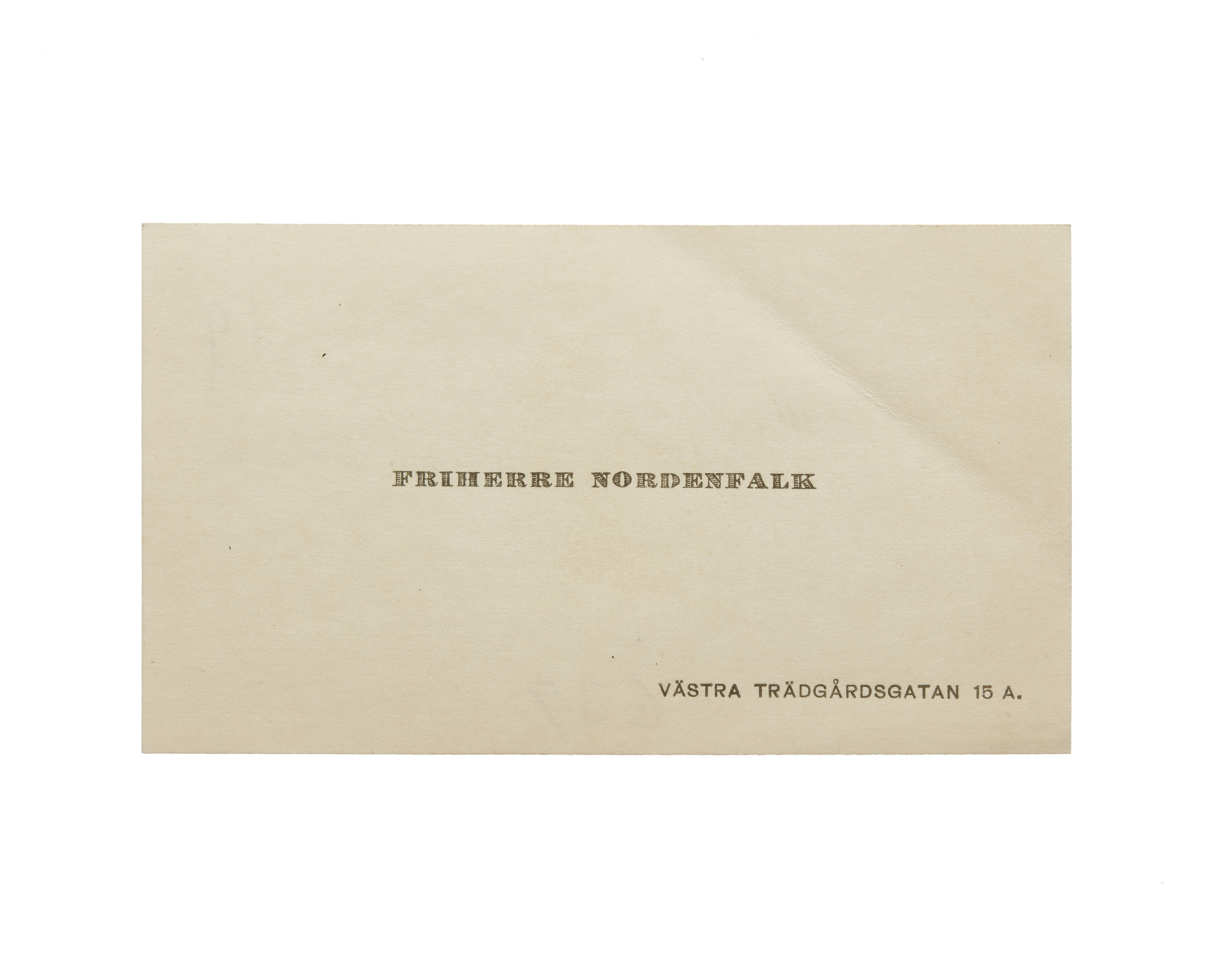 Visitkort från Friherre Johan Axel Nordenfalk.