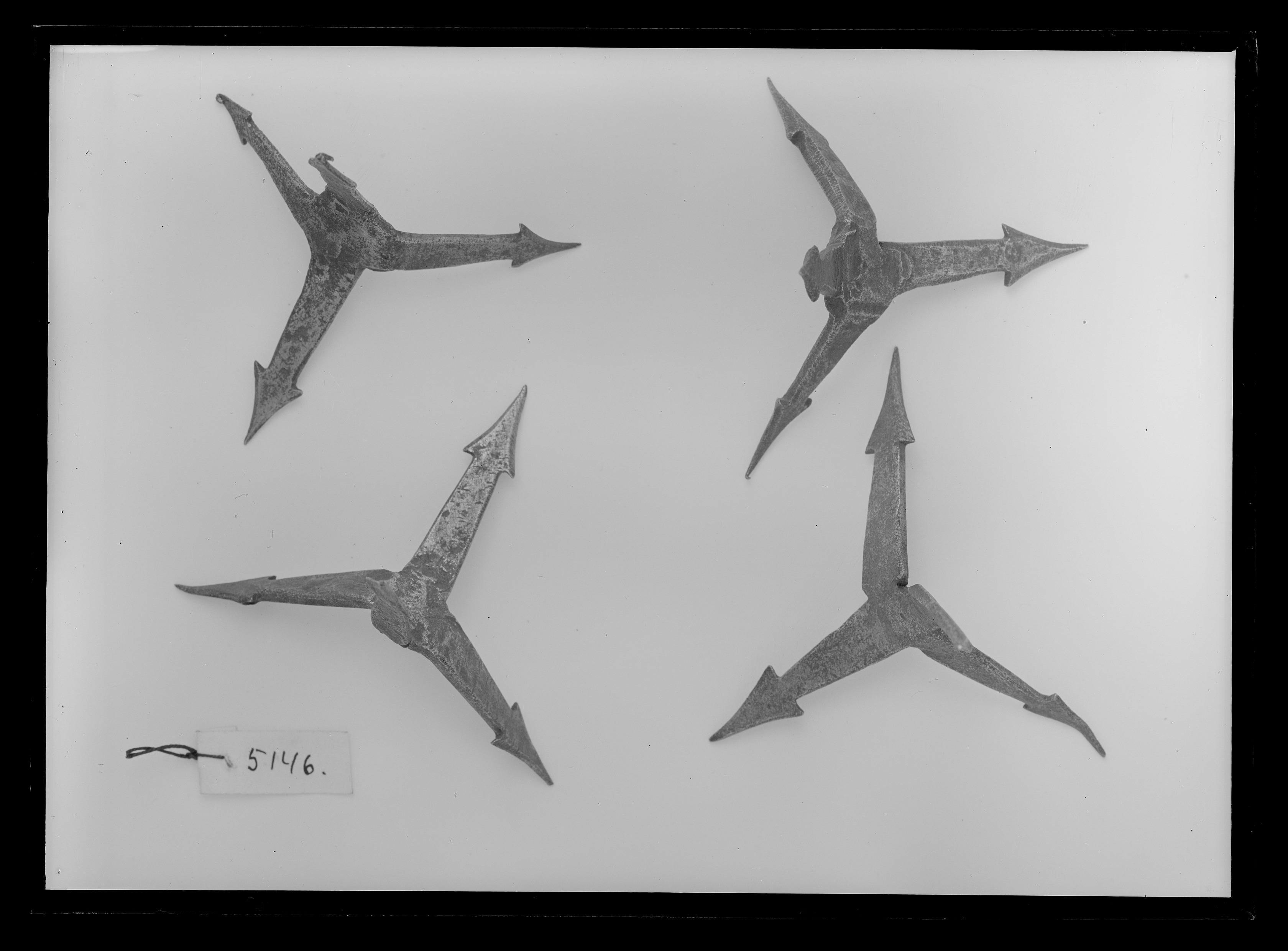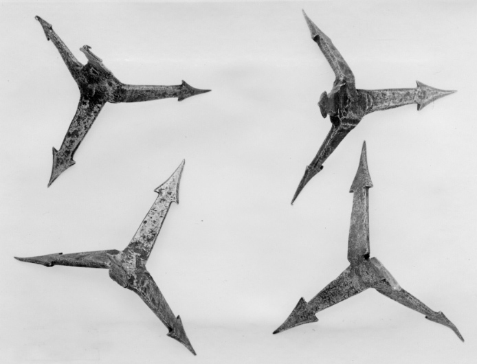 Fotangel av stål sammansatt av två i trubbig vinkel böjda bågar med rektangulärt tvärsnitt, avslutade med triangulära spetsar med insvängda sidor.