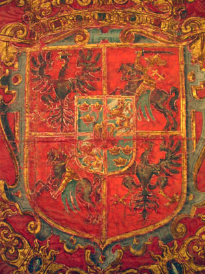 Trumpetfana med Polen-Litauens vapen, hjärtsköld Vasa, använd vid Sigismund III:s hov.