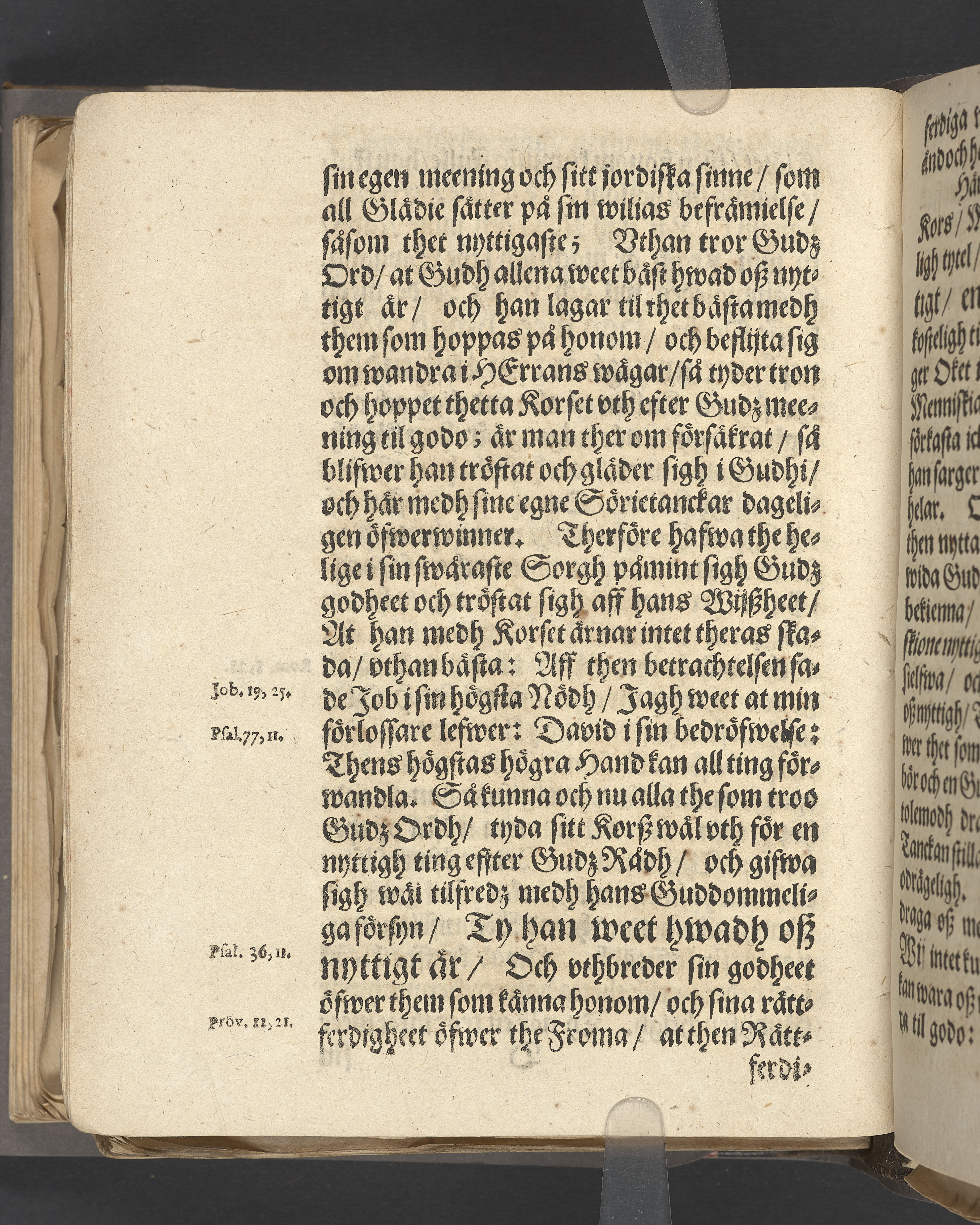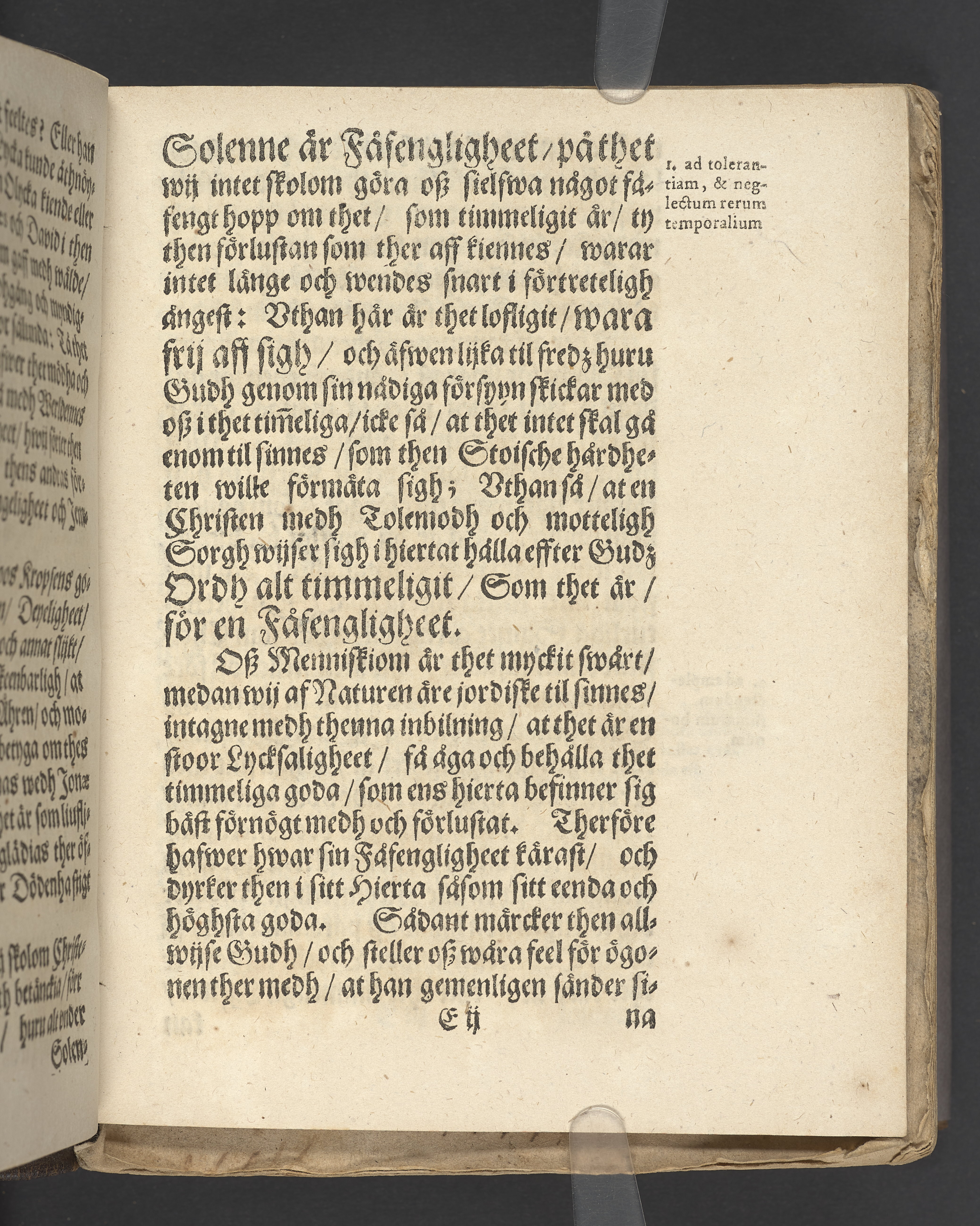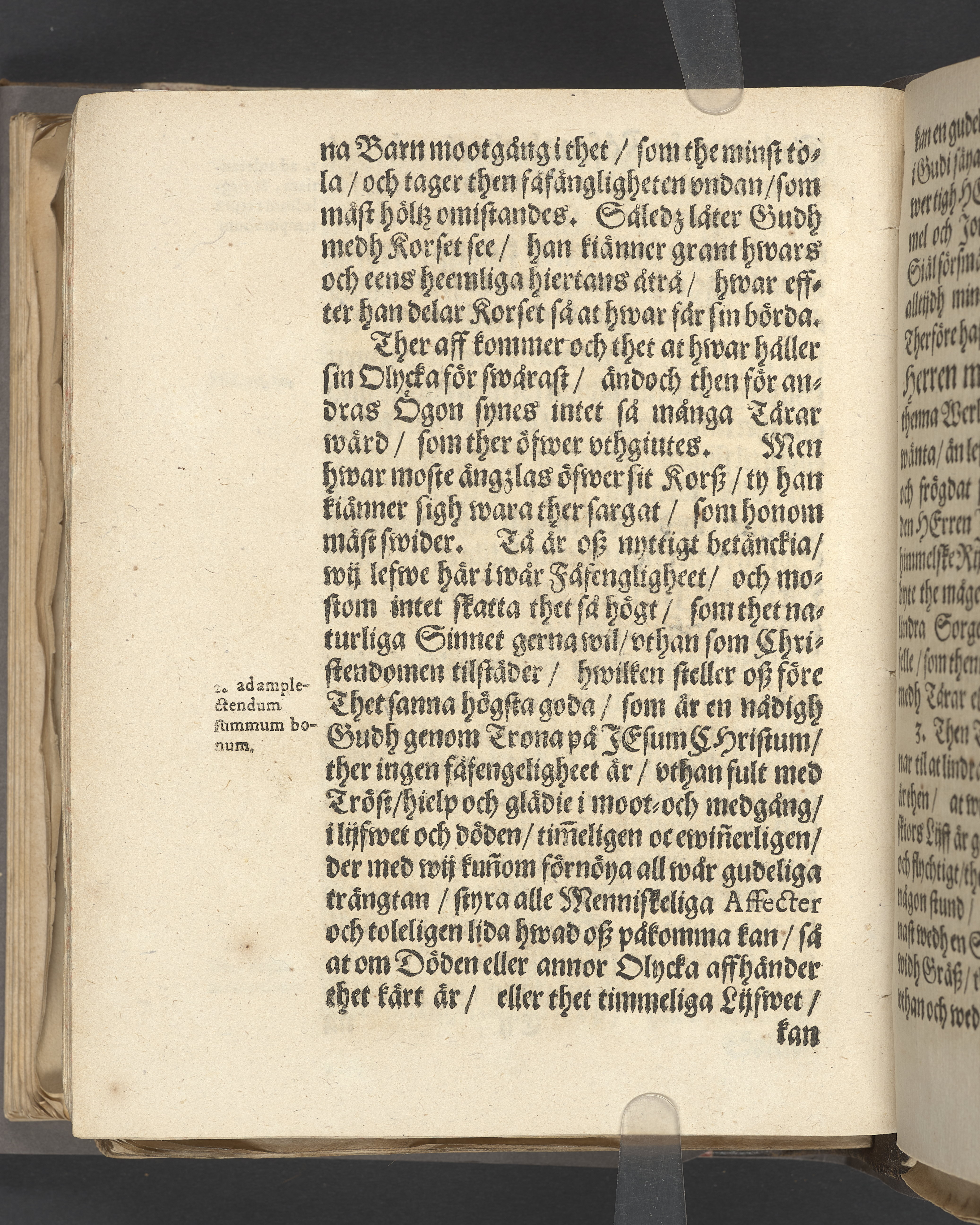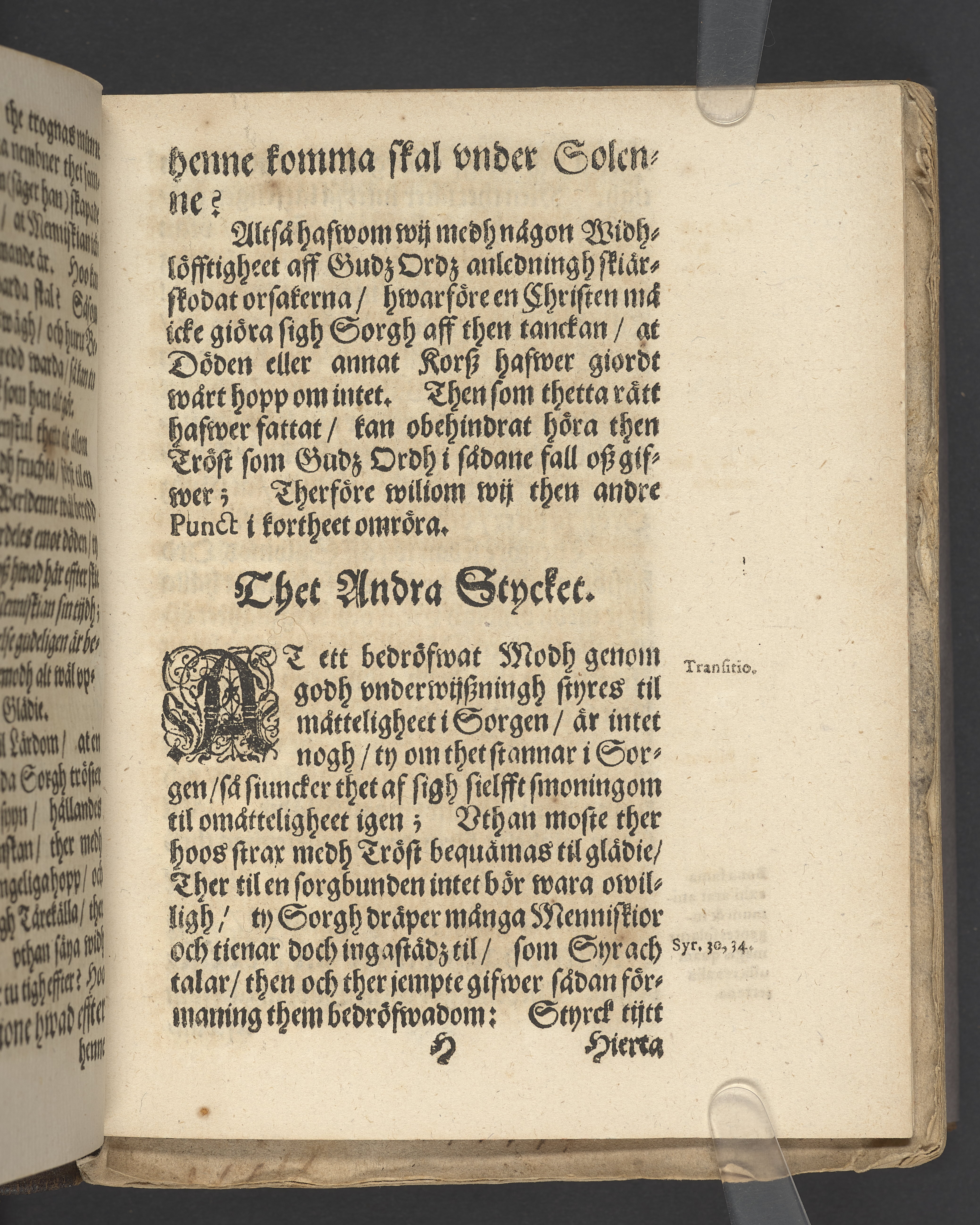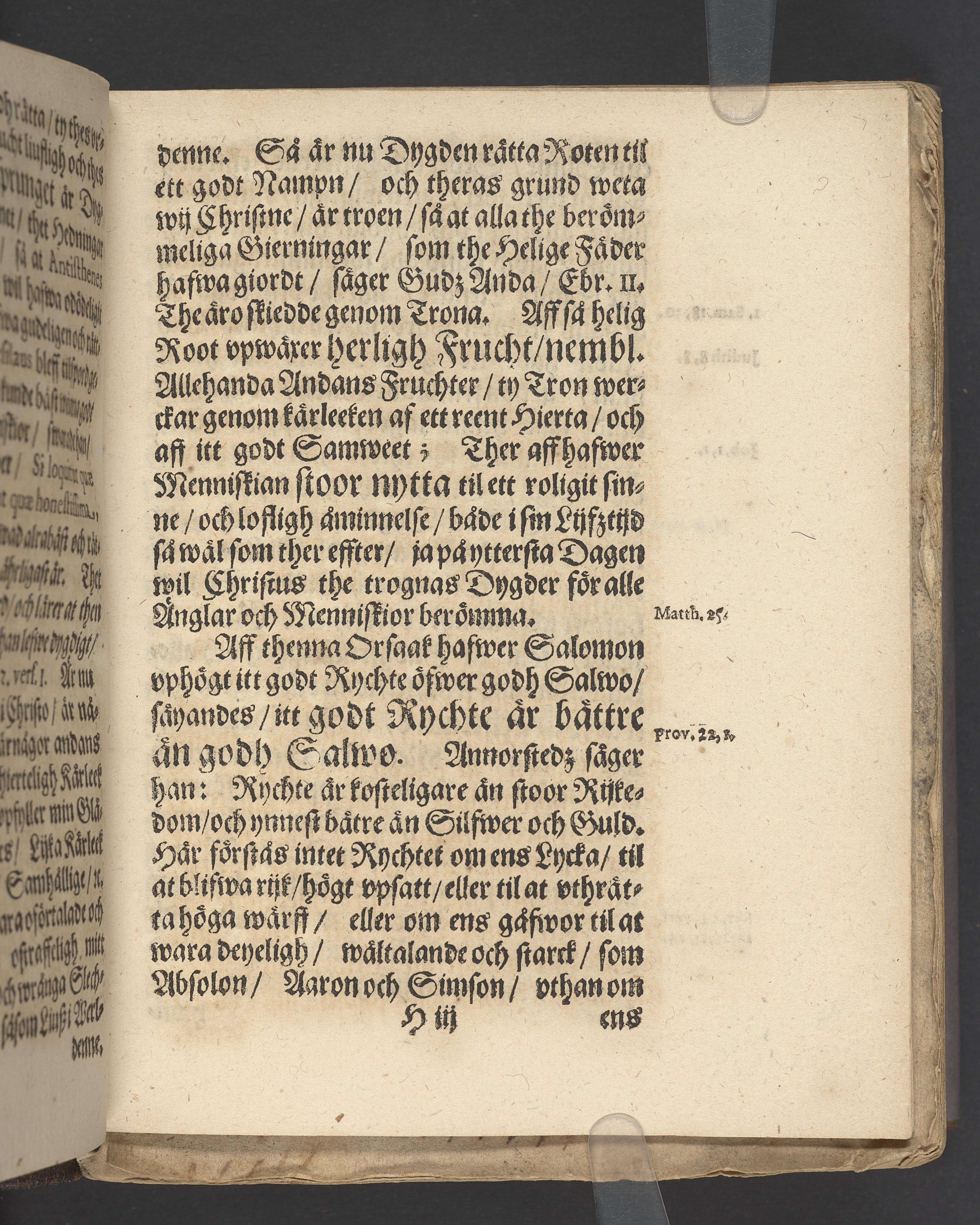 Sprängt snitt i rött. Högst upp på titelsidan anteckning i bläck med uppgifter om födelse- och dödsdatum för den avlidna. Mitt på sidan nära den inre marginalen med bläck "N. 33". Tryckt dedikation till fadern Claes Stiernsköld, samt modern och systrarna.