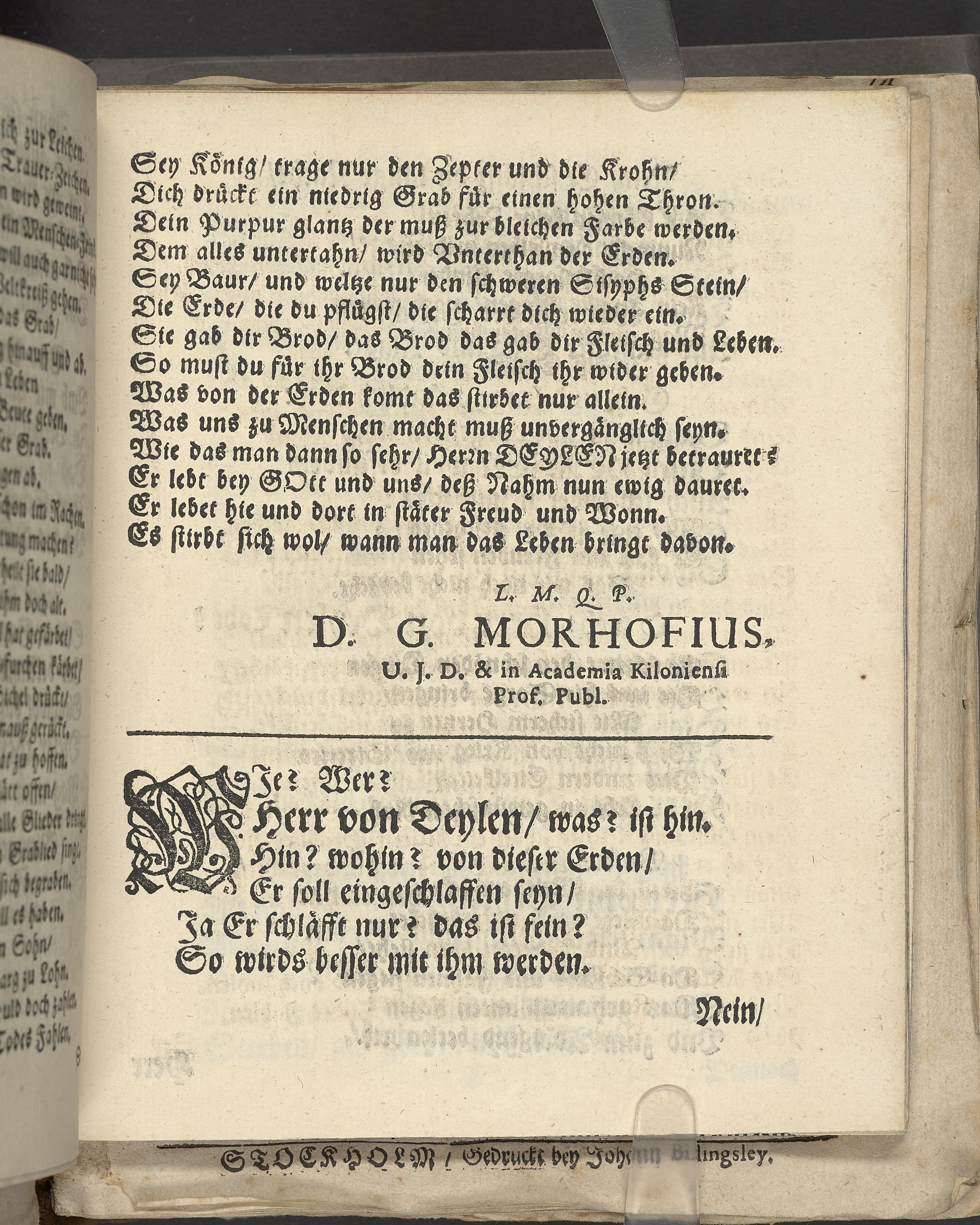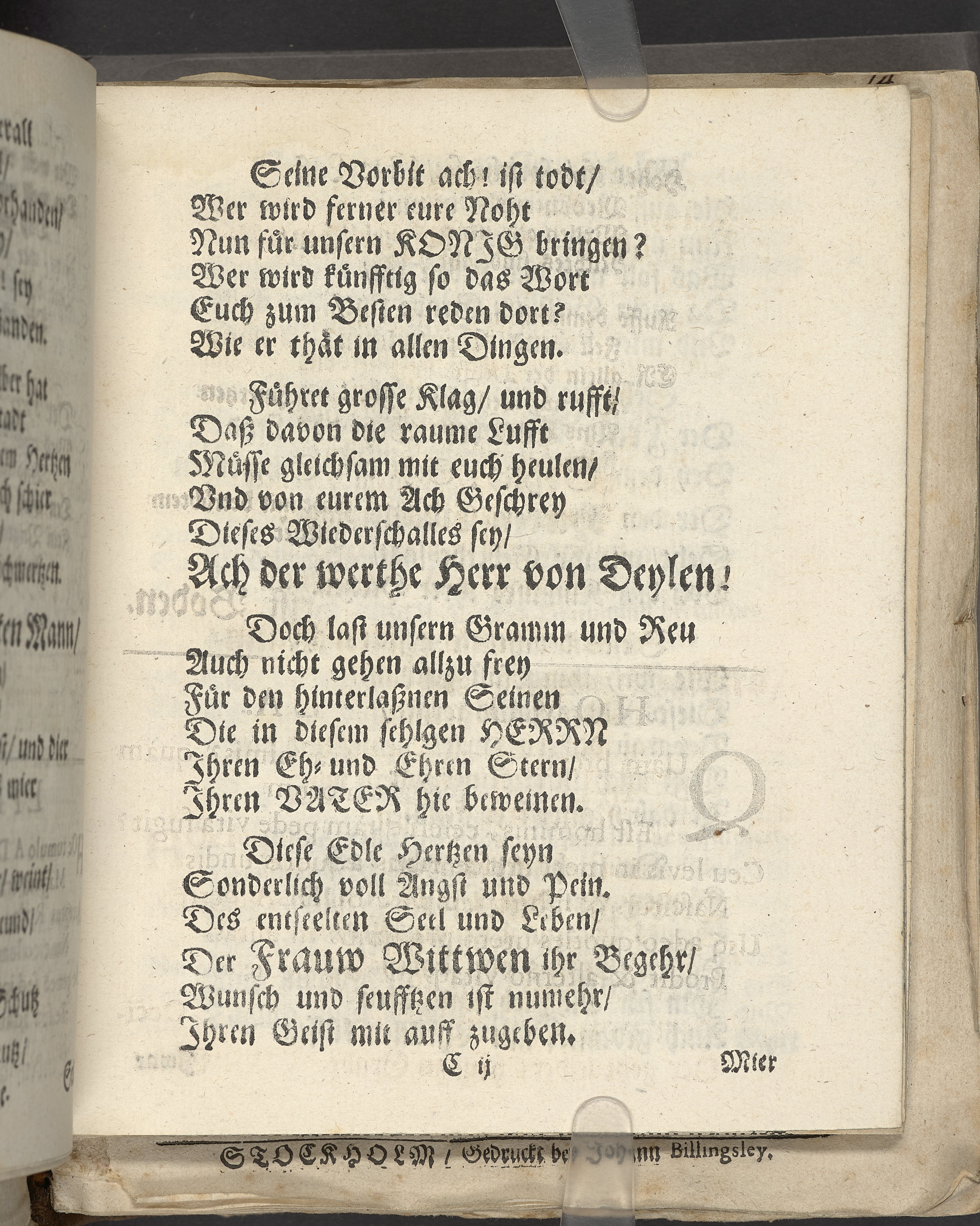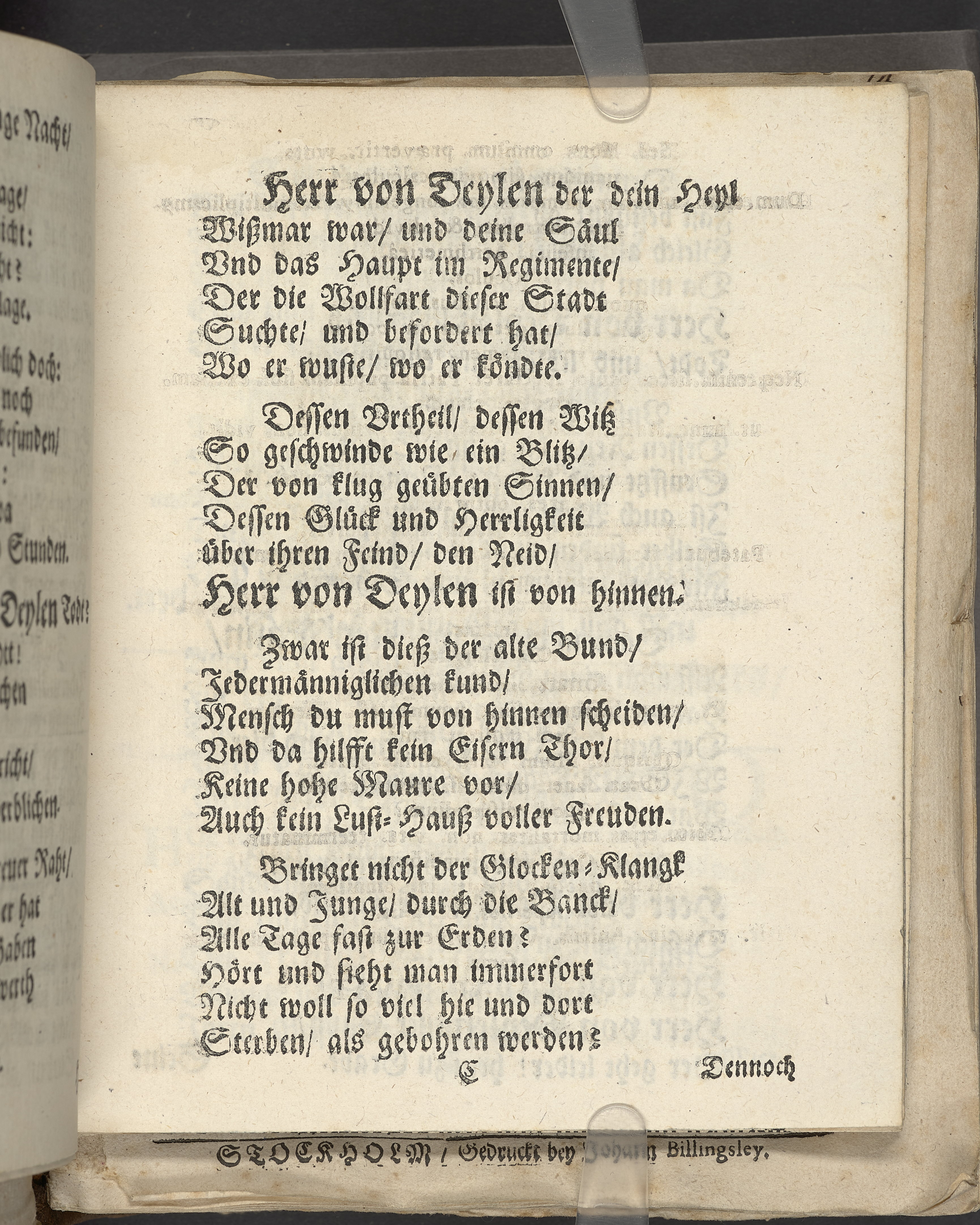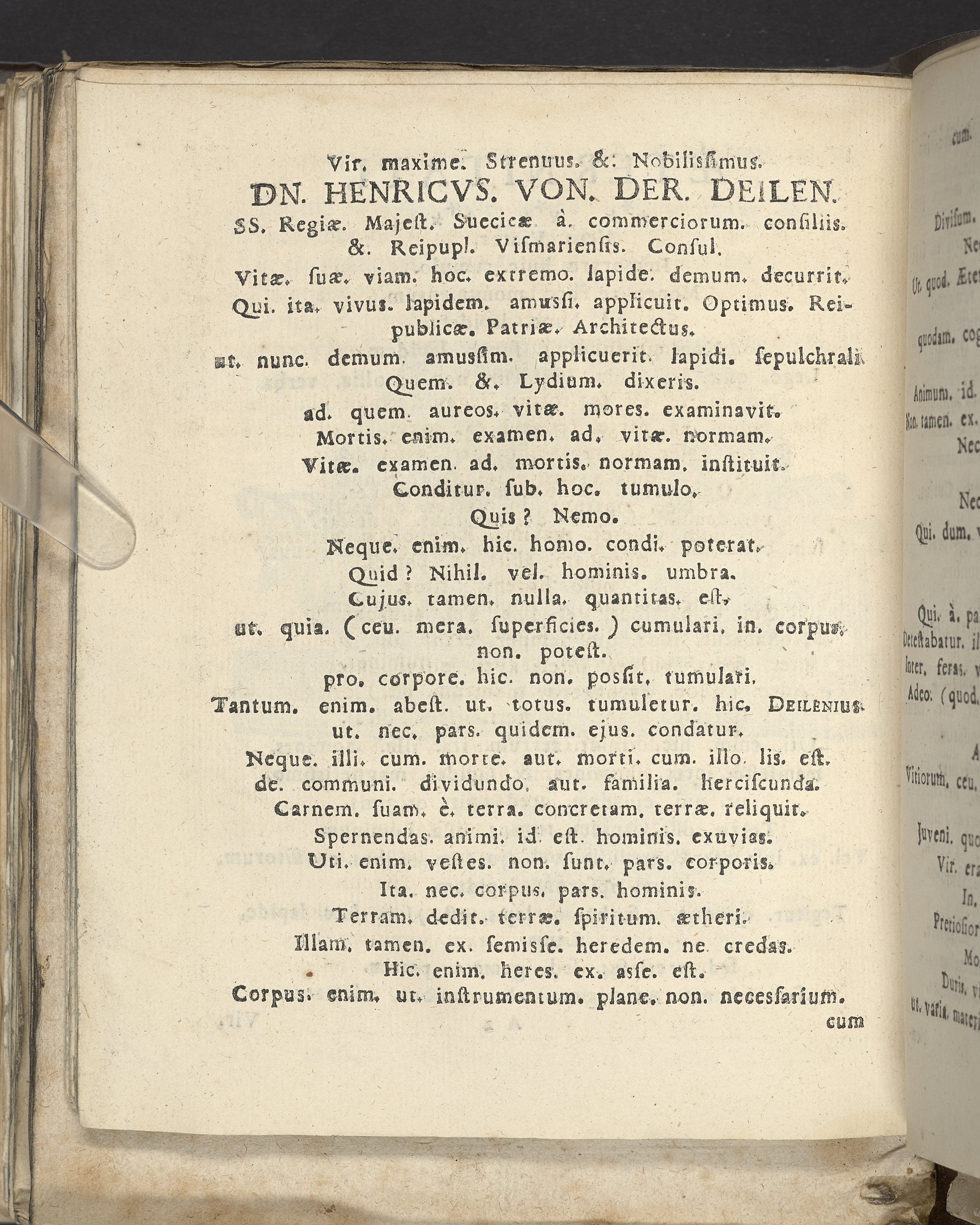 Bittere Traur-Klagen, und hertzliches mittleiden über ... Herrn Heinrich von der Deilen, Ihrer königl. Maytt. zu Schweden gewesenen Commercien-Rahts ... als derselbe am 21. Januarii, des 1666. Jahrs ... eingeschlaffen, und folgends den 25. April selbigen Jahrs mit adelichen Ceremonien in sein herrliches Erbbegräbnüsz, in der Pfarr-Kirchen zu St. Nicolai, beygesetzet wurde ... geführet von geehrten Herren, guten Freunden und Bekanten. Wiszmar, gedruckt bey Joachim-Georg Rheten.