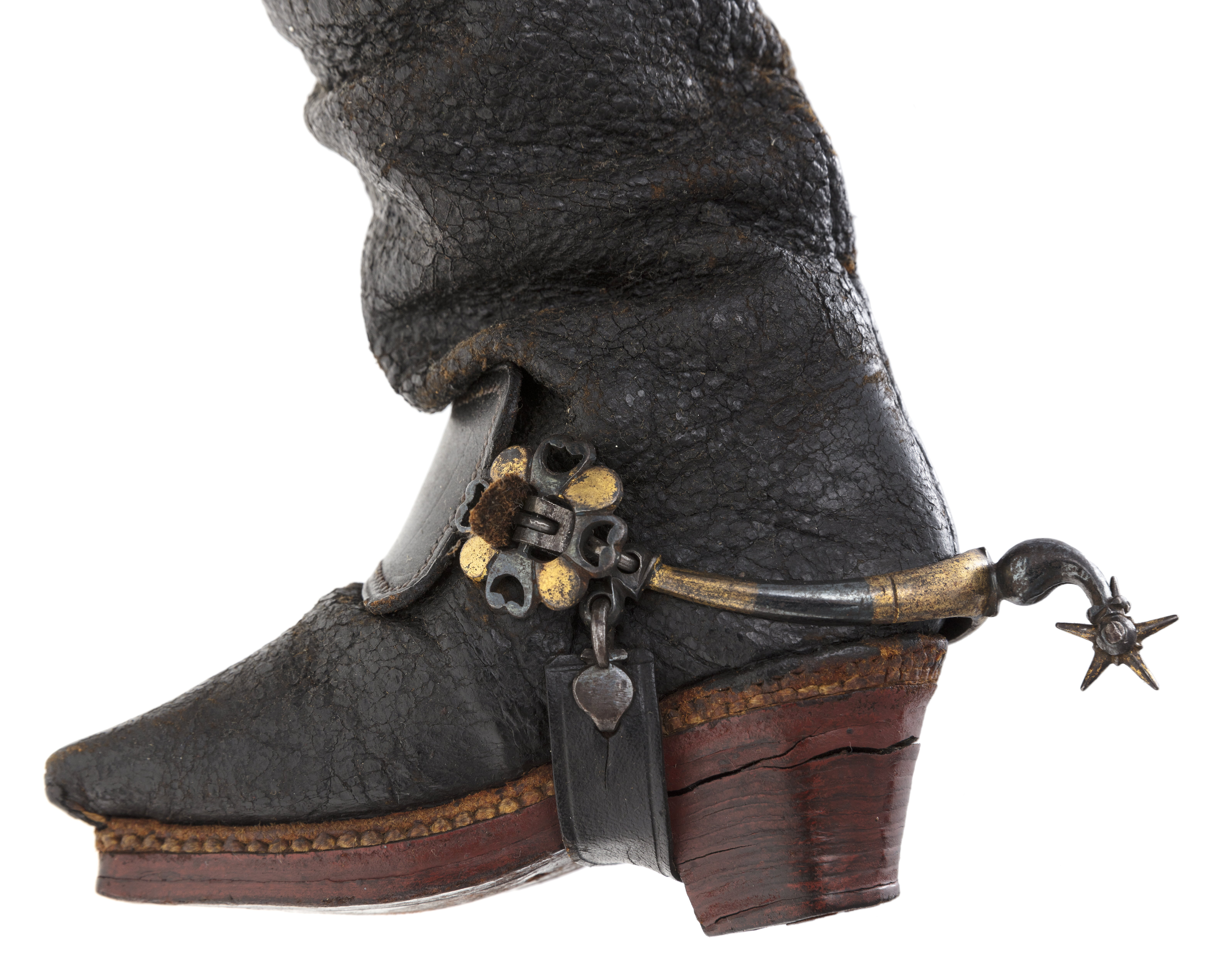 Sporrar till docka föreställande rytteriöverste, Sverige 1660-tal. Tillhörig Karl XI.