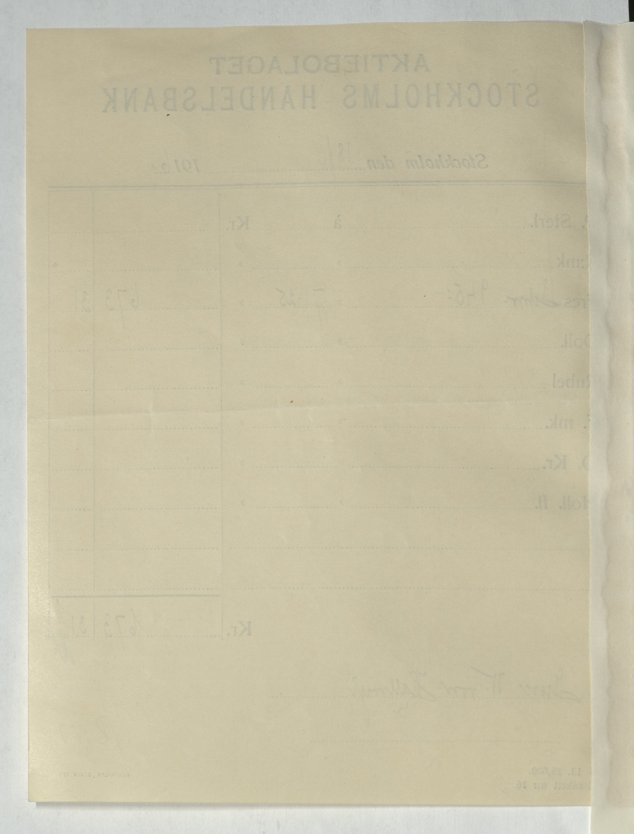 Verifikation från Aktiebolaget Stockholms Handelsbank