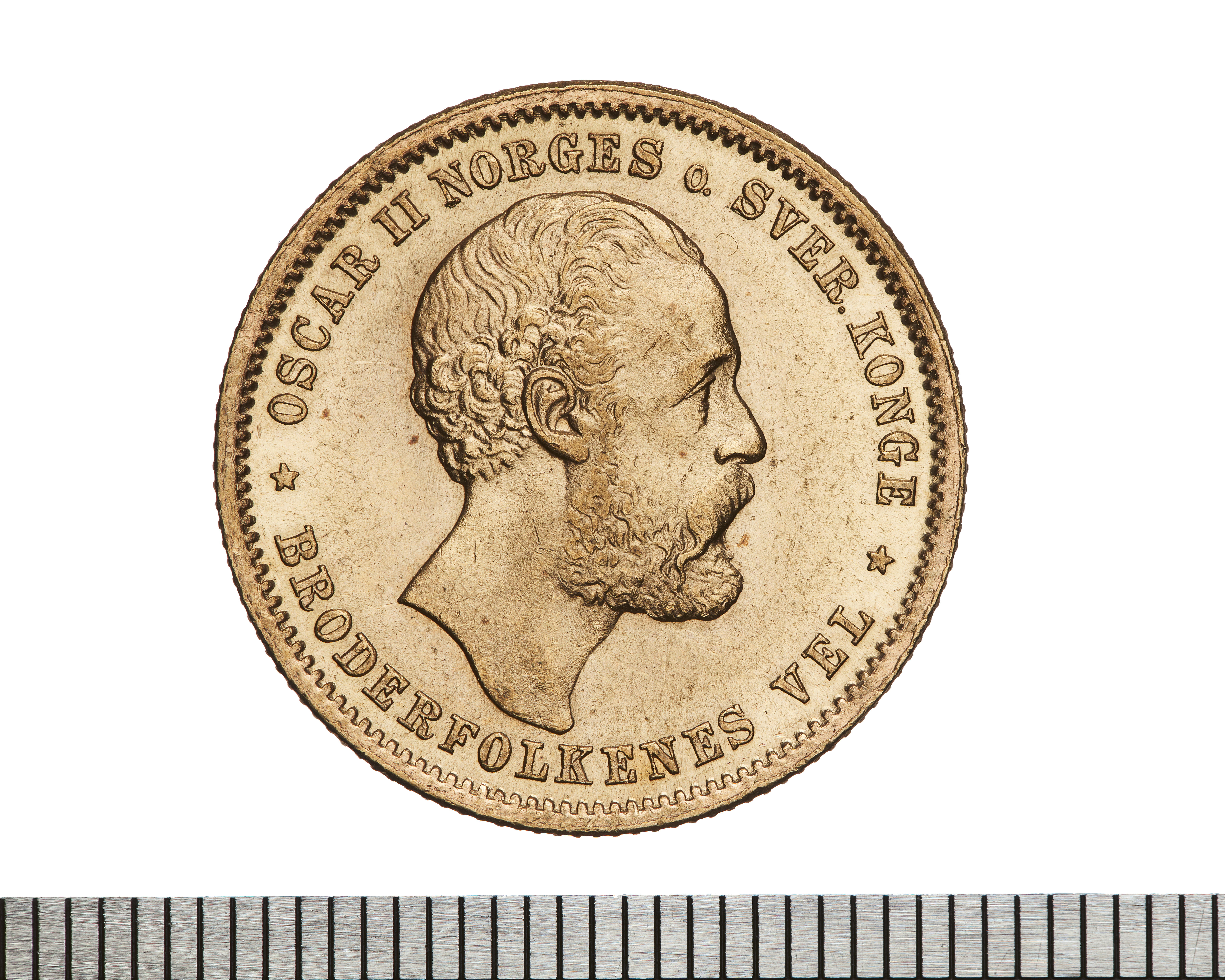Upphov: Oscar II av Sverige och Norge. Media: Bonnevier, Helena. Ekonomiska museet - Kungliga myntkabinettet/SHM, (CC BY 4.0) Du får bearbeta och dela verket för alla ändamål, även kommersiella, så länge du anger upphovsperson och licensgivare.