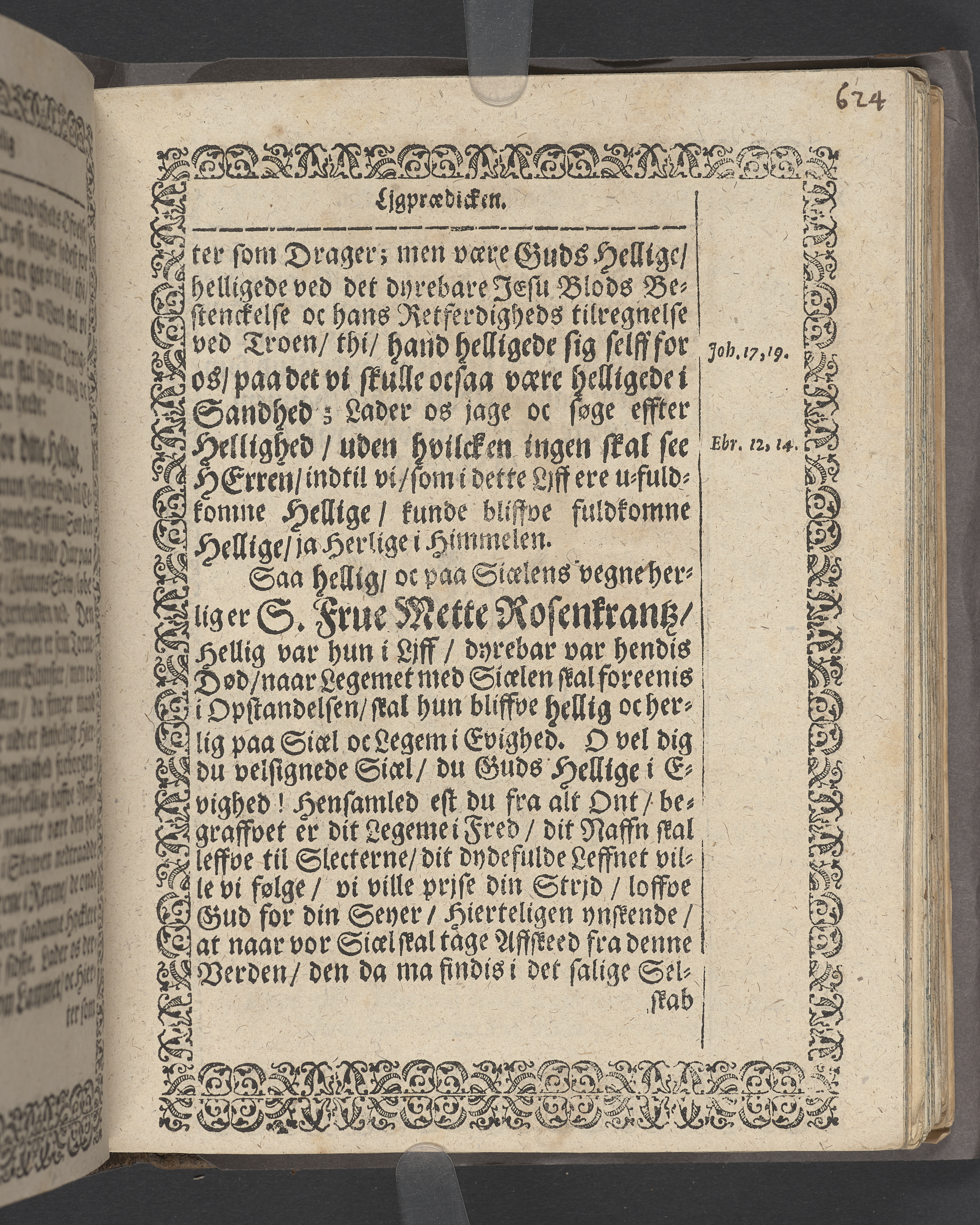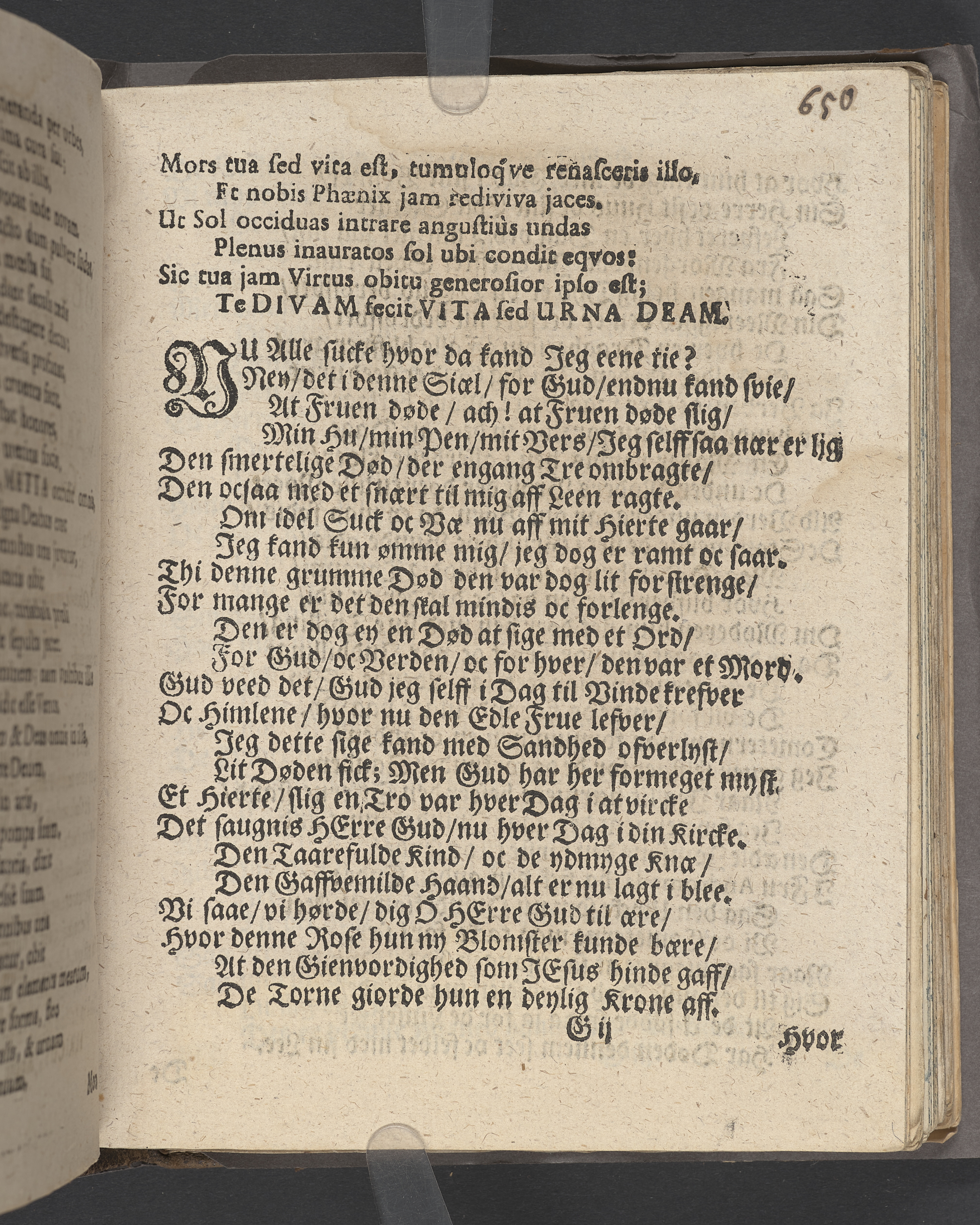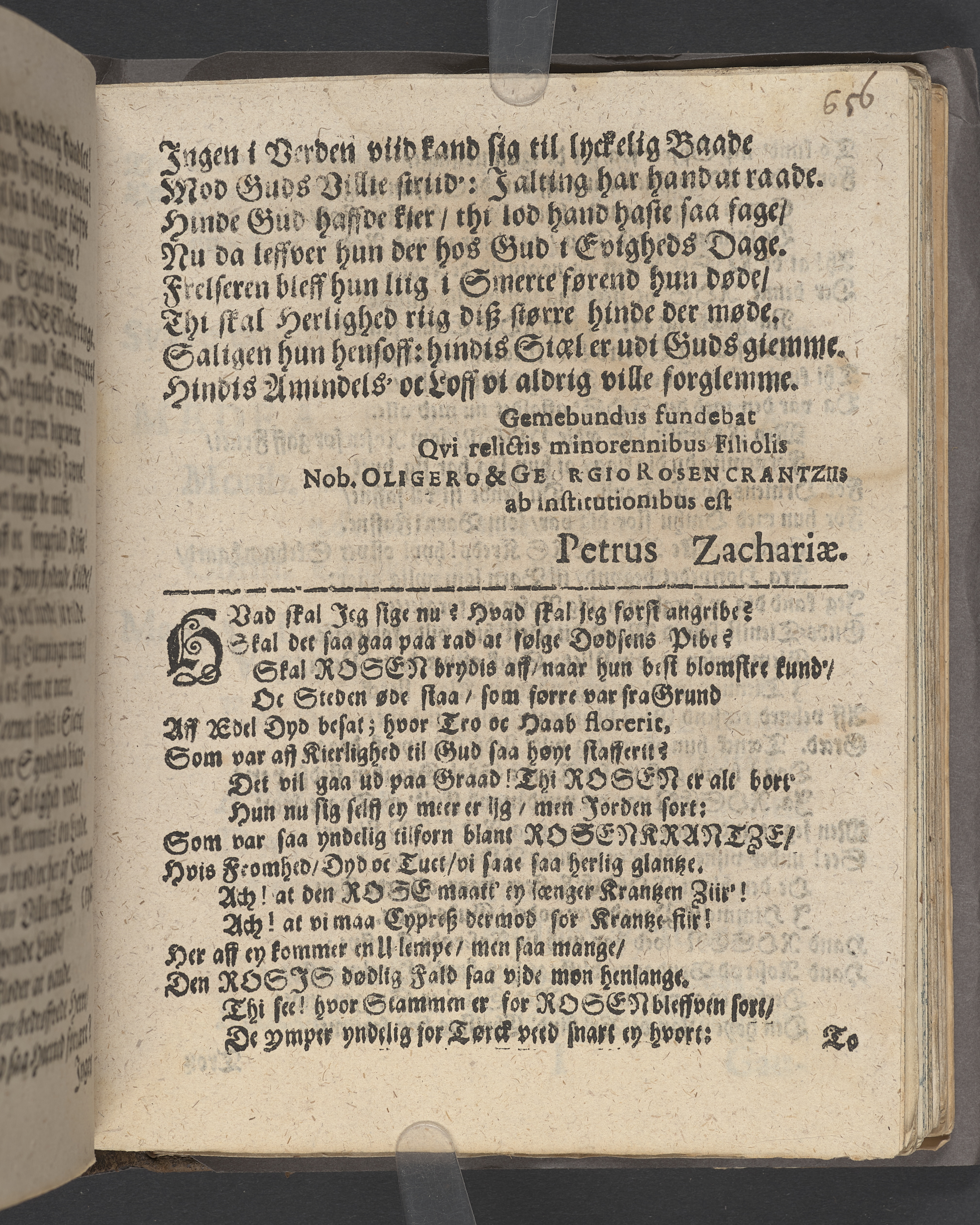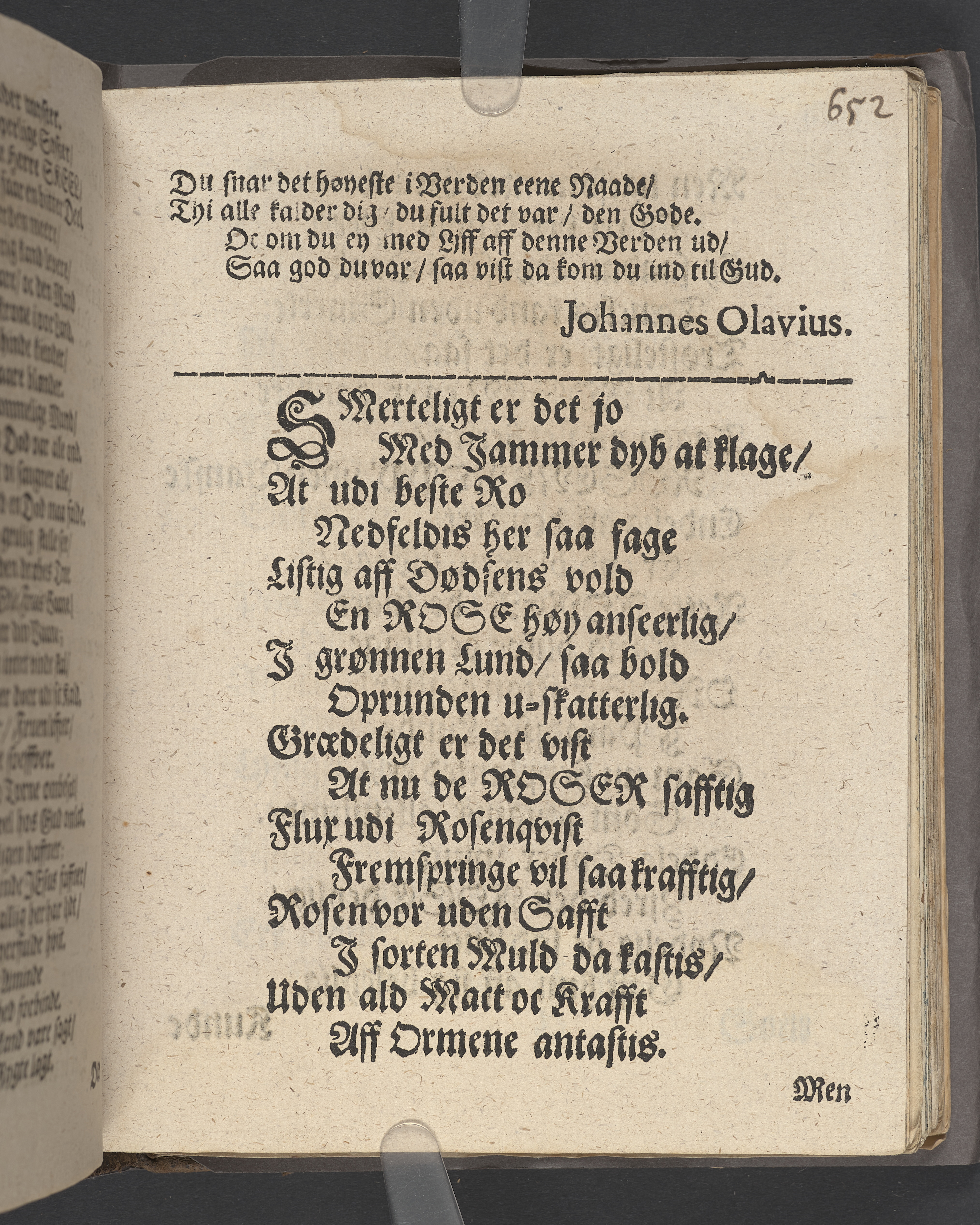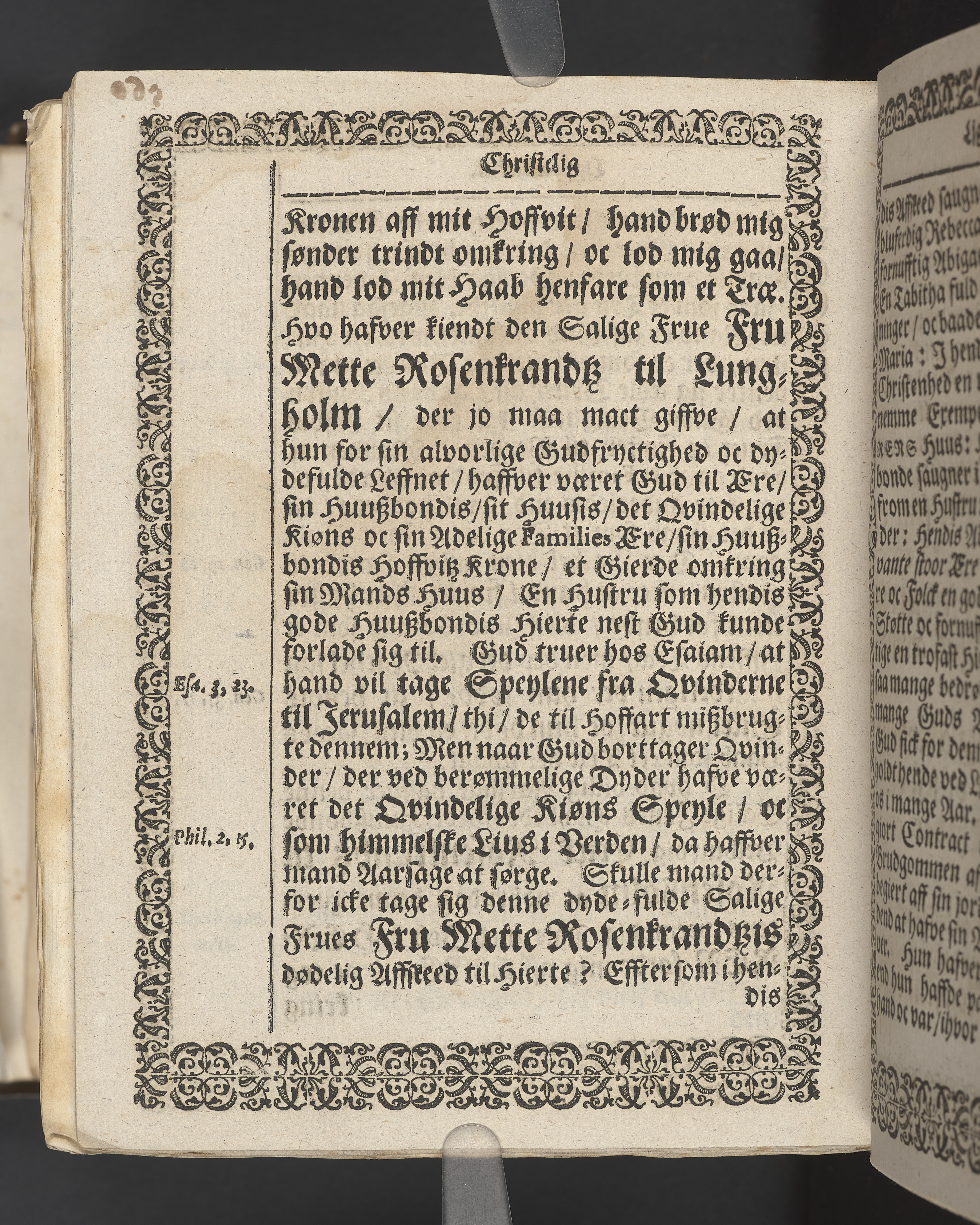Olie-Træer i Guds Huus... fremsatte, der... Frue Mette Rosenkrandtz, D. Erich Rosenkrandtzis til Rosenholm, hendis salige ligs sørgelige begængelse bleff i Aarhuus domkircke holden dend 2. Maji, 1665 ... Aff Erich Mogenszøn Grawio ... Tryckt i Kiøbenhaffn hos Jørgen Lamprecht, aar 1666.