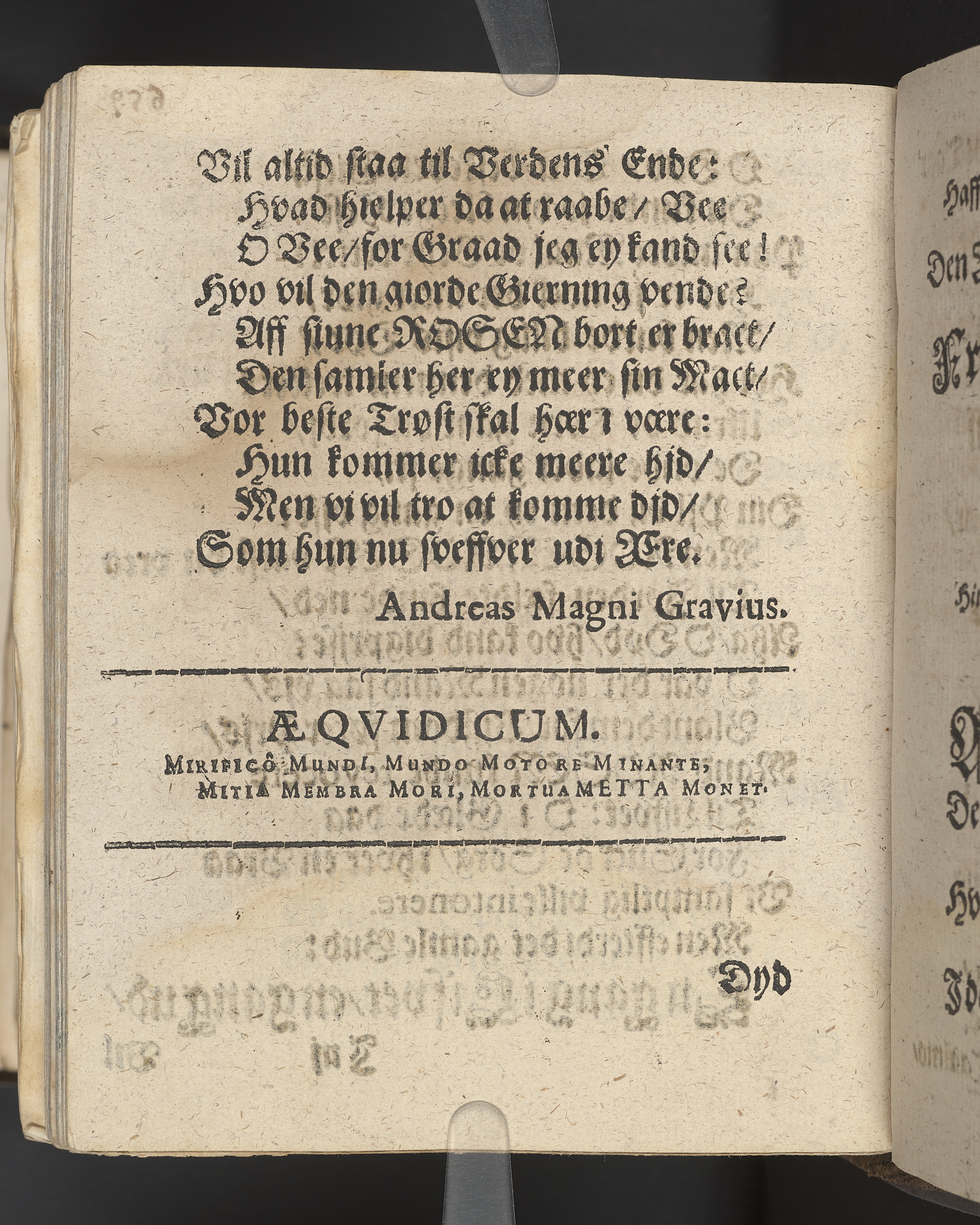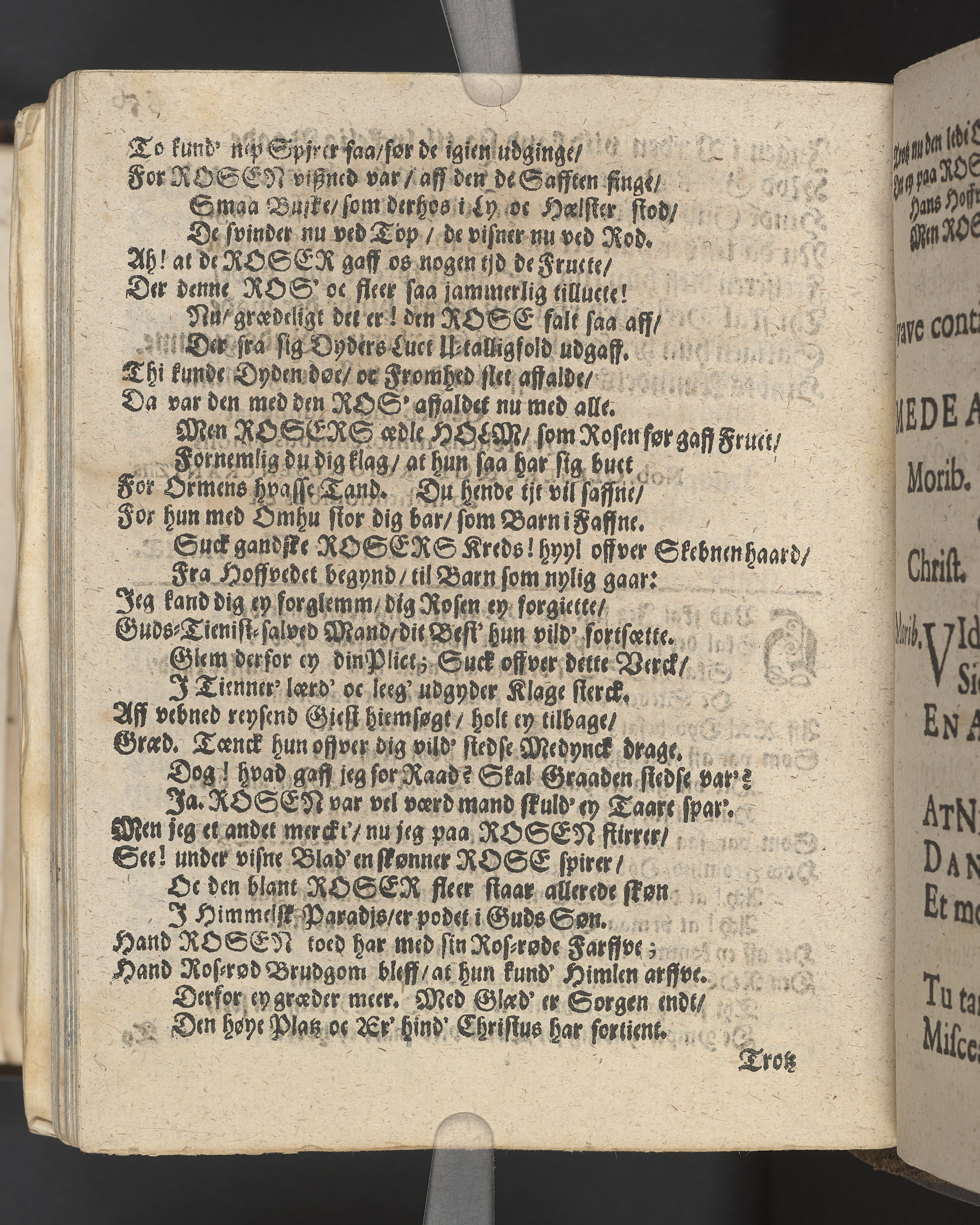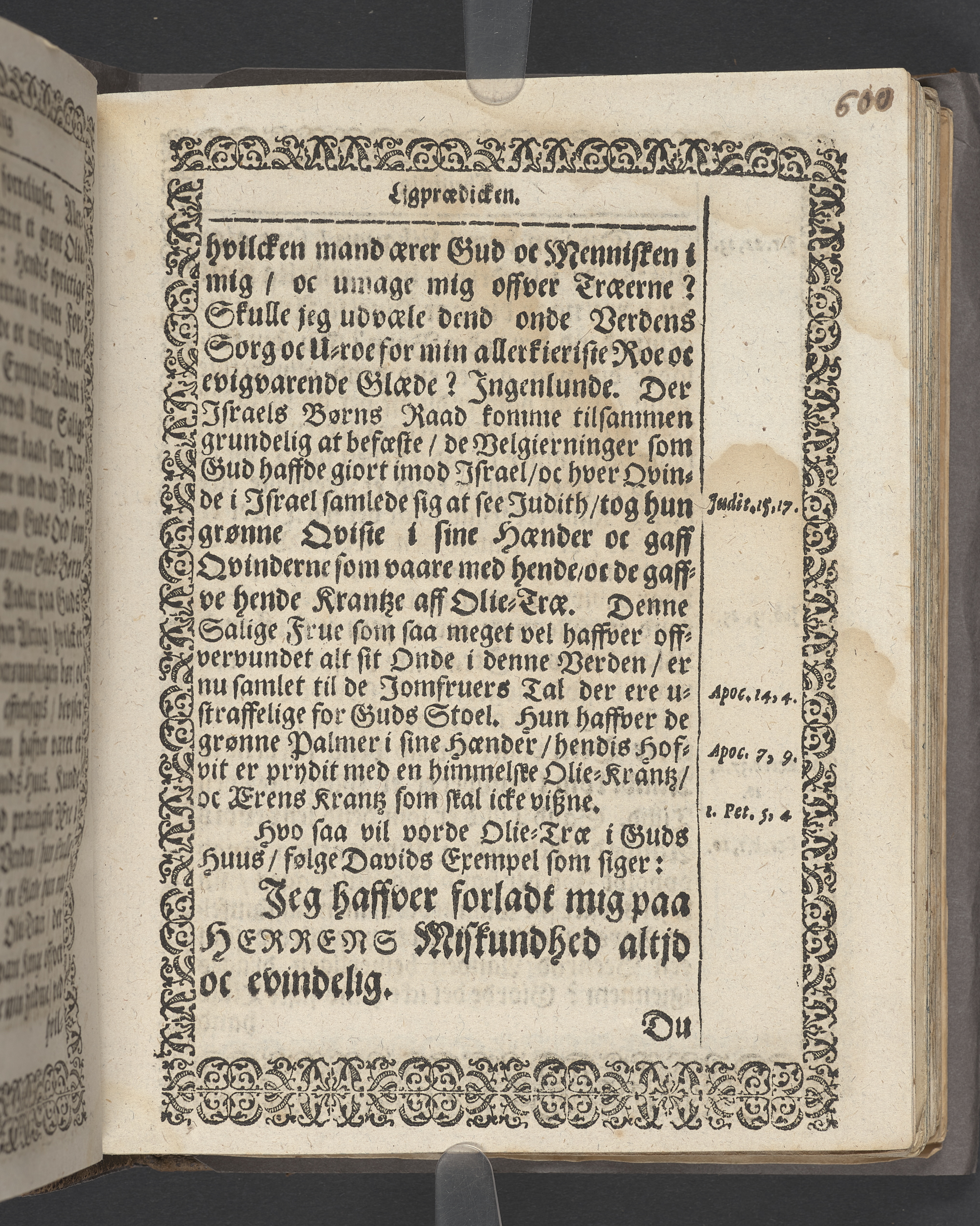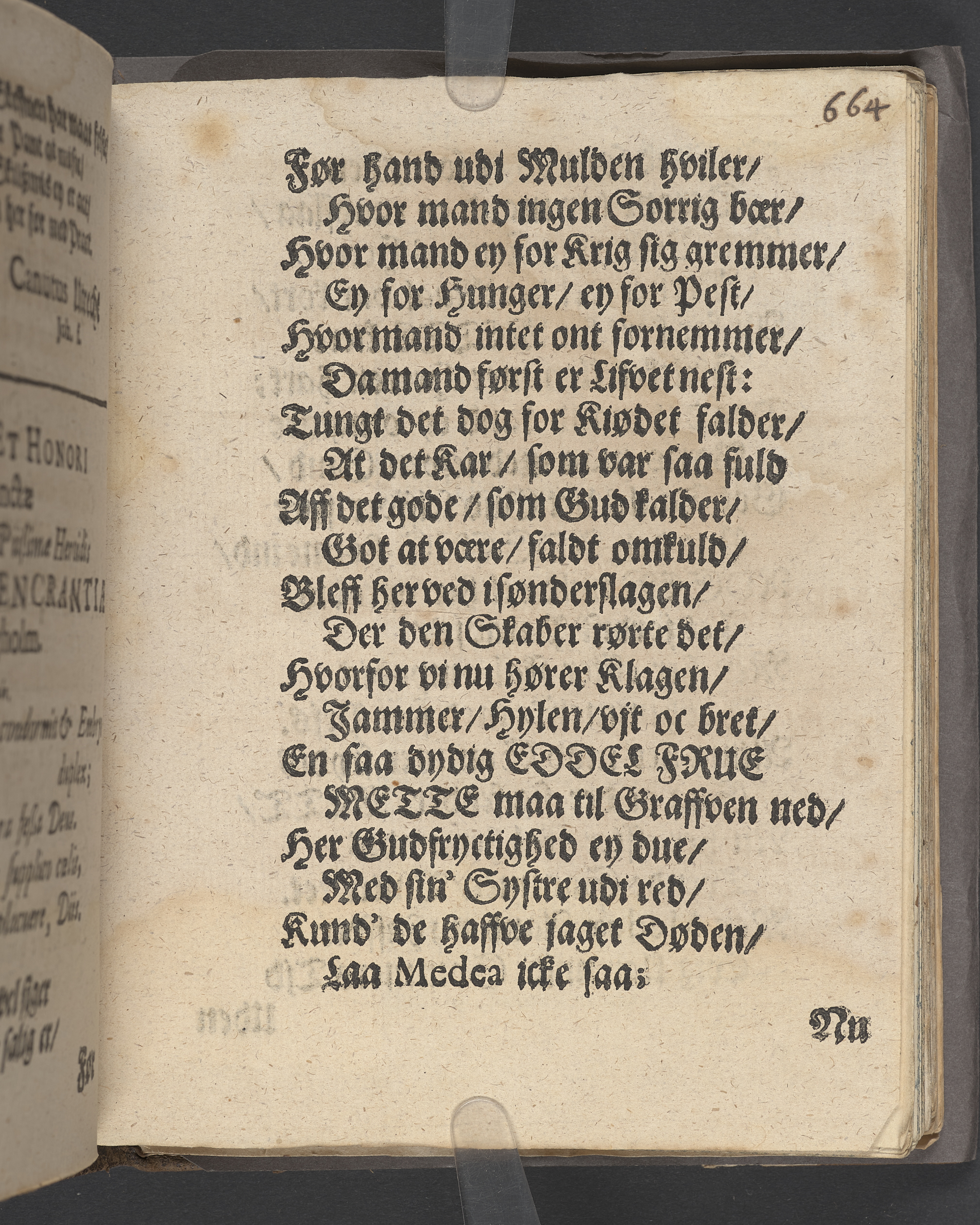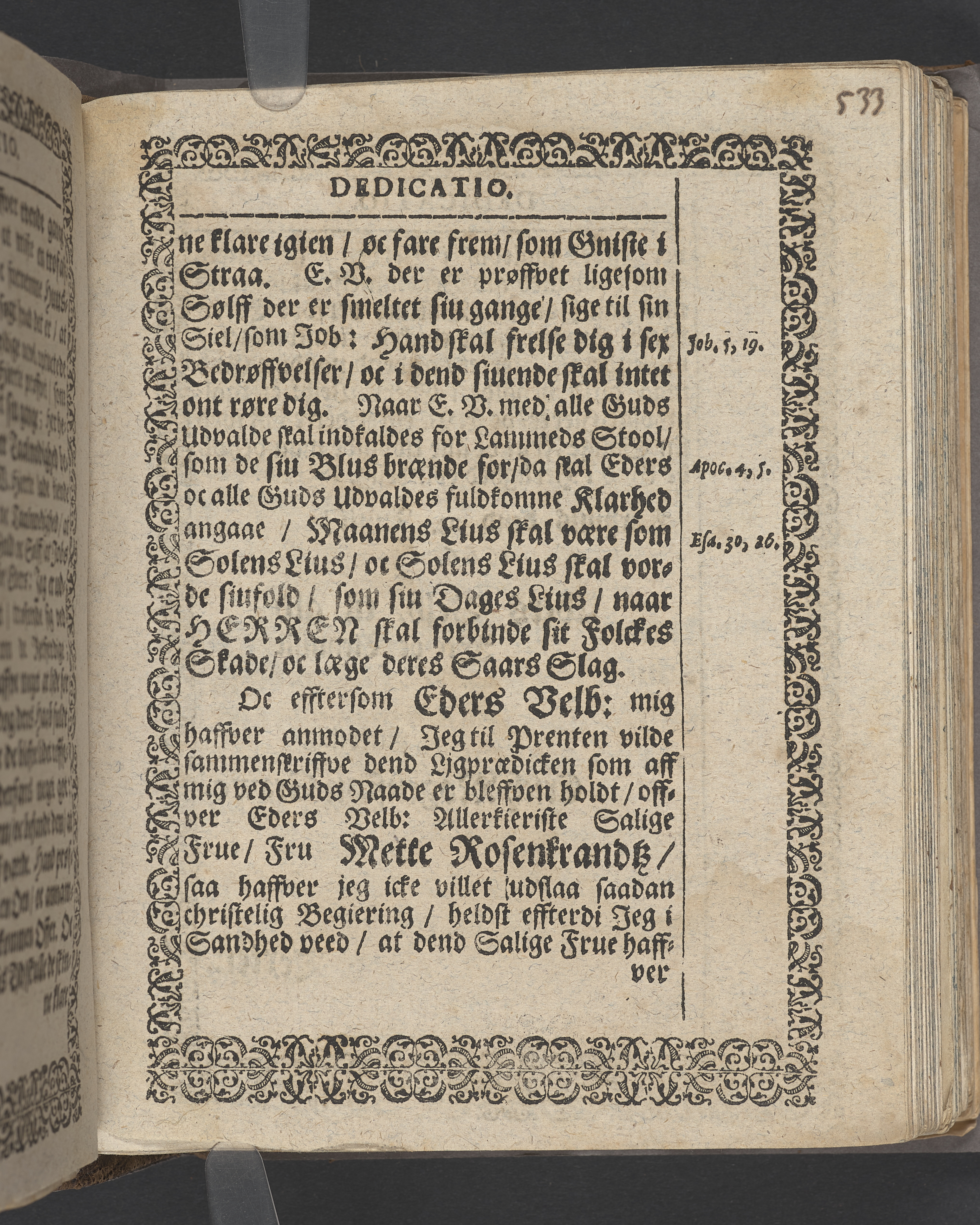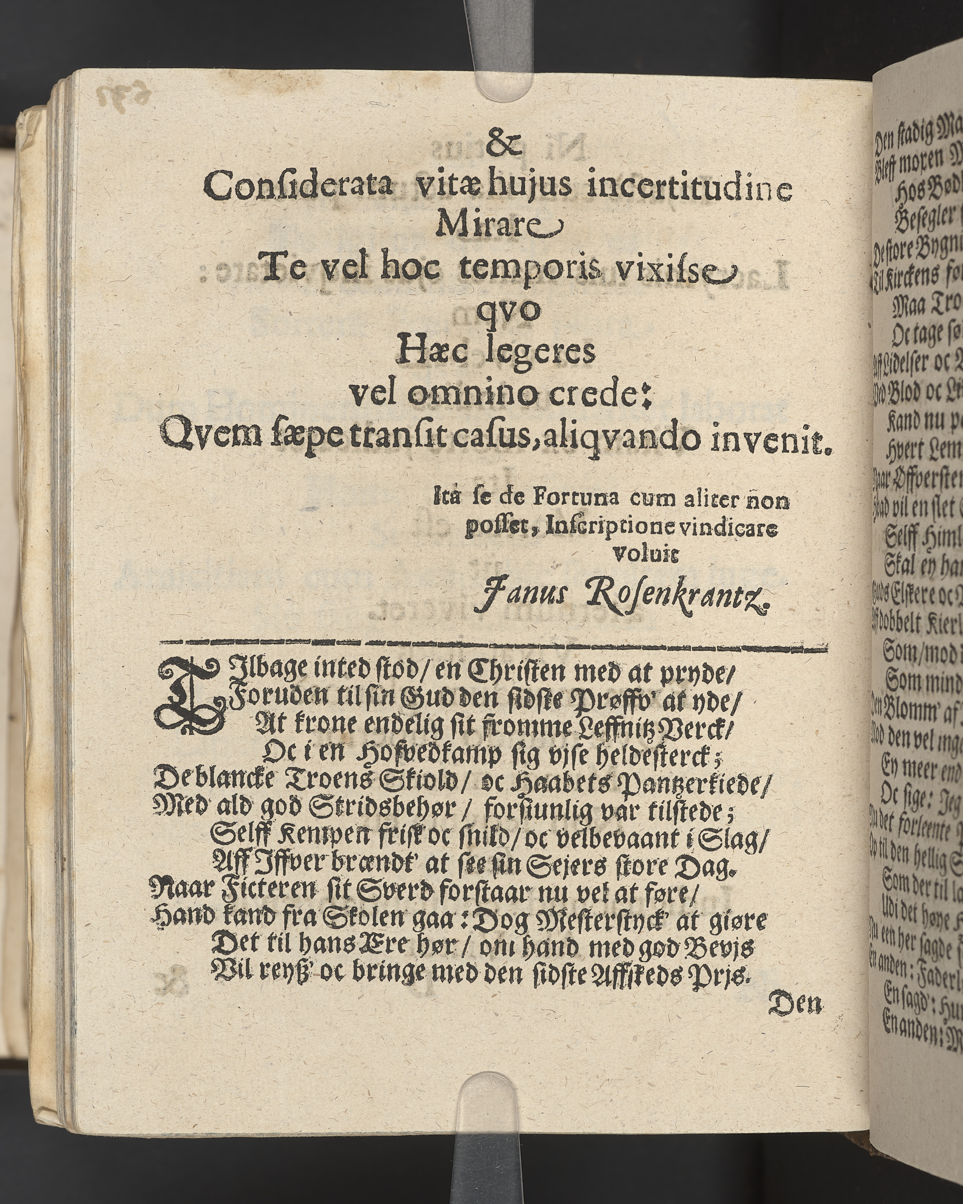 Olie-Træer i Guds Huus... fremsatte, der... Frue Mette Rosenkrandtz, D. Erich Rosenkrandtzis til Rosenholm, hendis salige ligs sørgelige begængelse bleff i Aarhuus domkircke holden dend 2. Maji, 1665 ... Aff Erich Mogenszøn Grawio ... Tryckt i Kiøbenhaffn hos Jørgen Lamprecht, aar 1666.