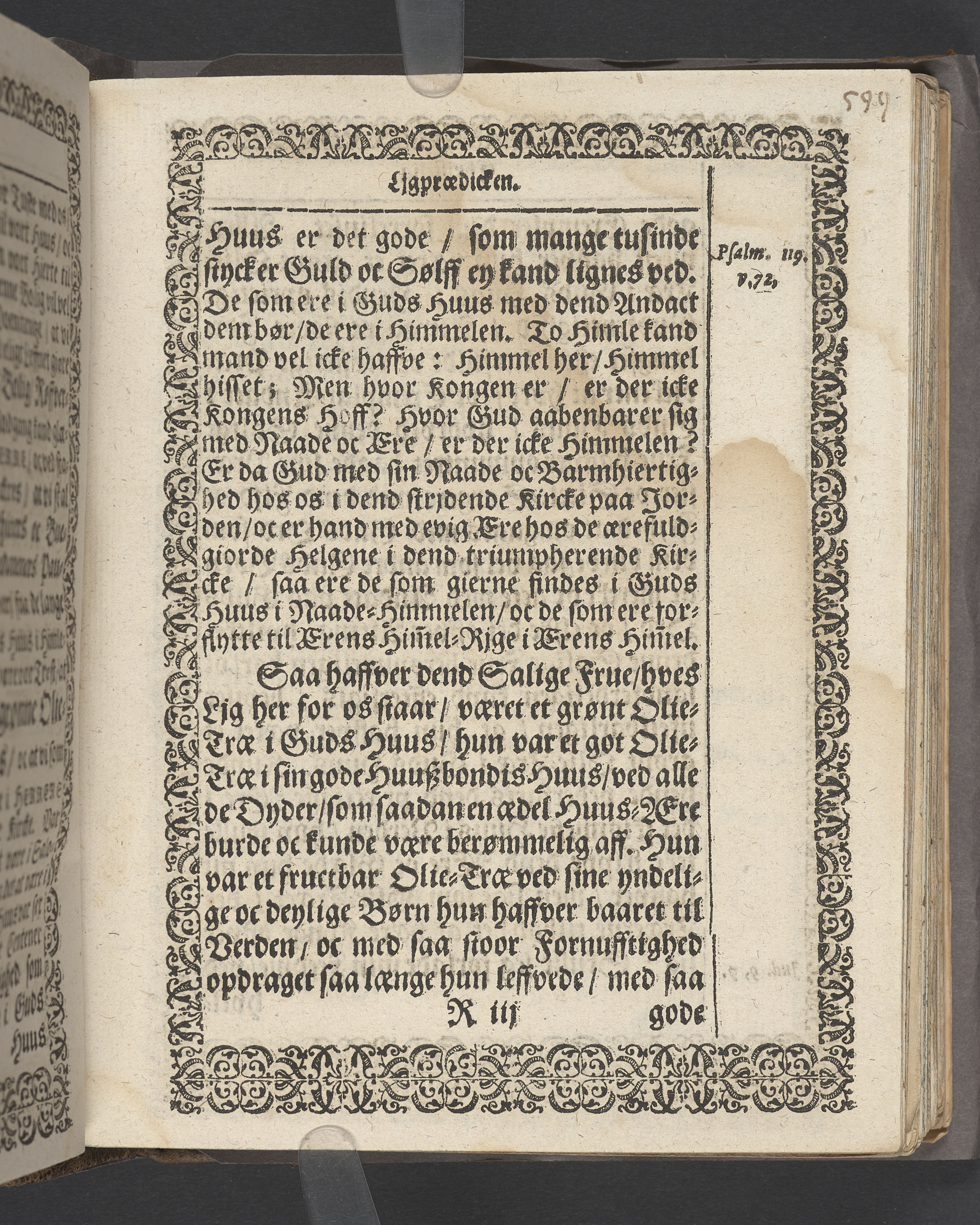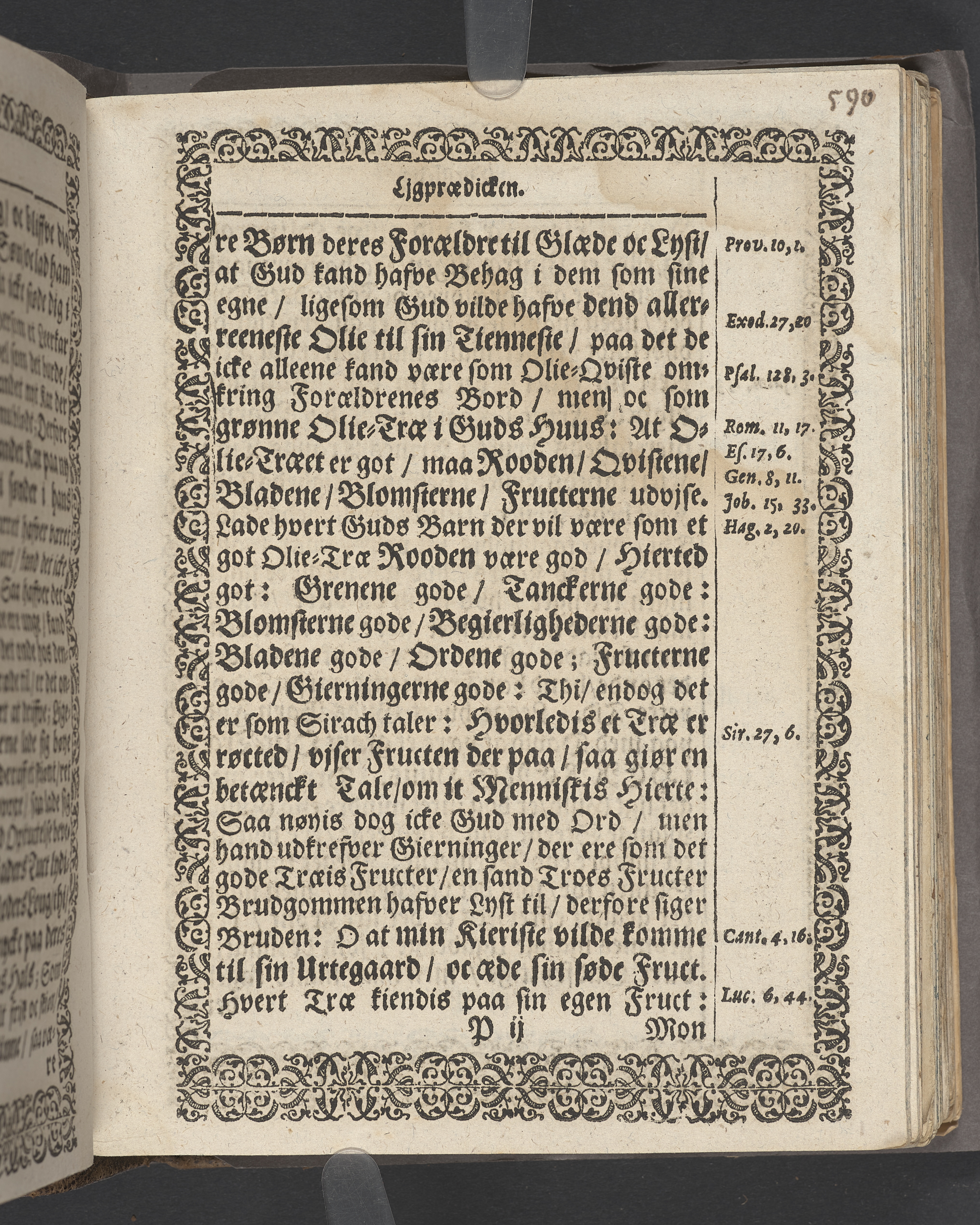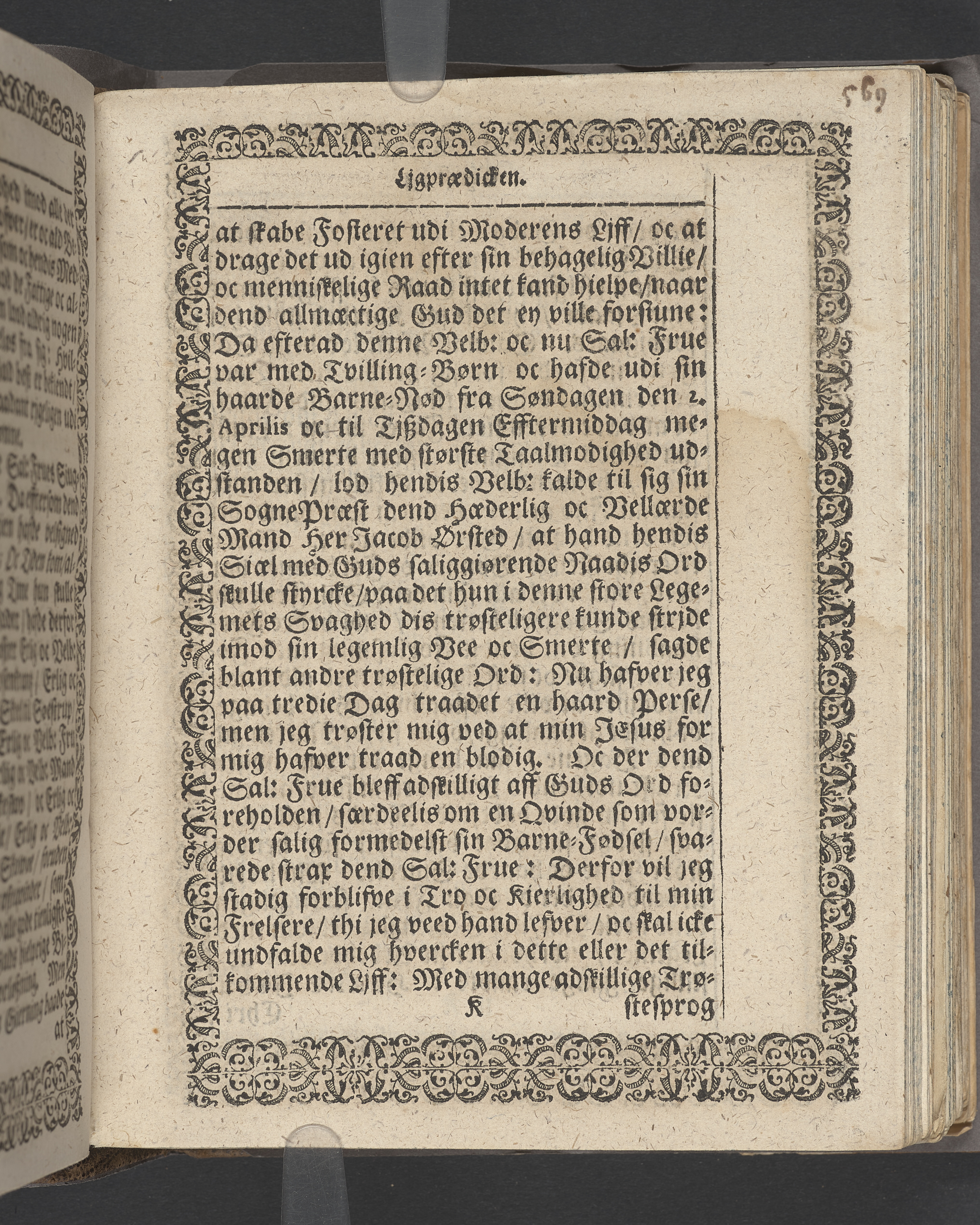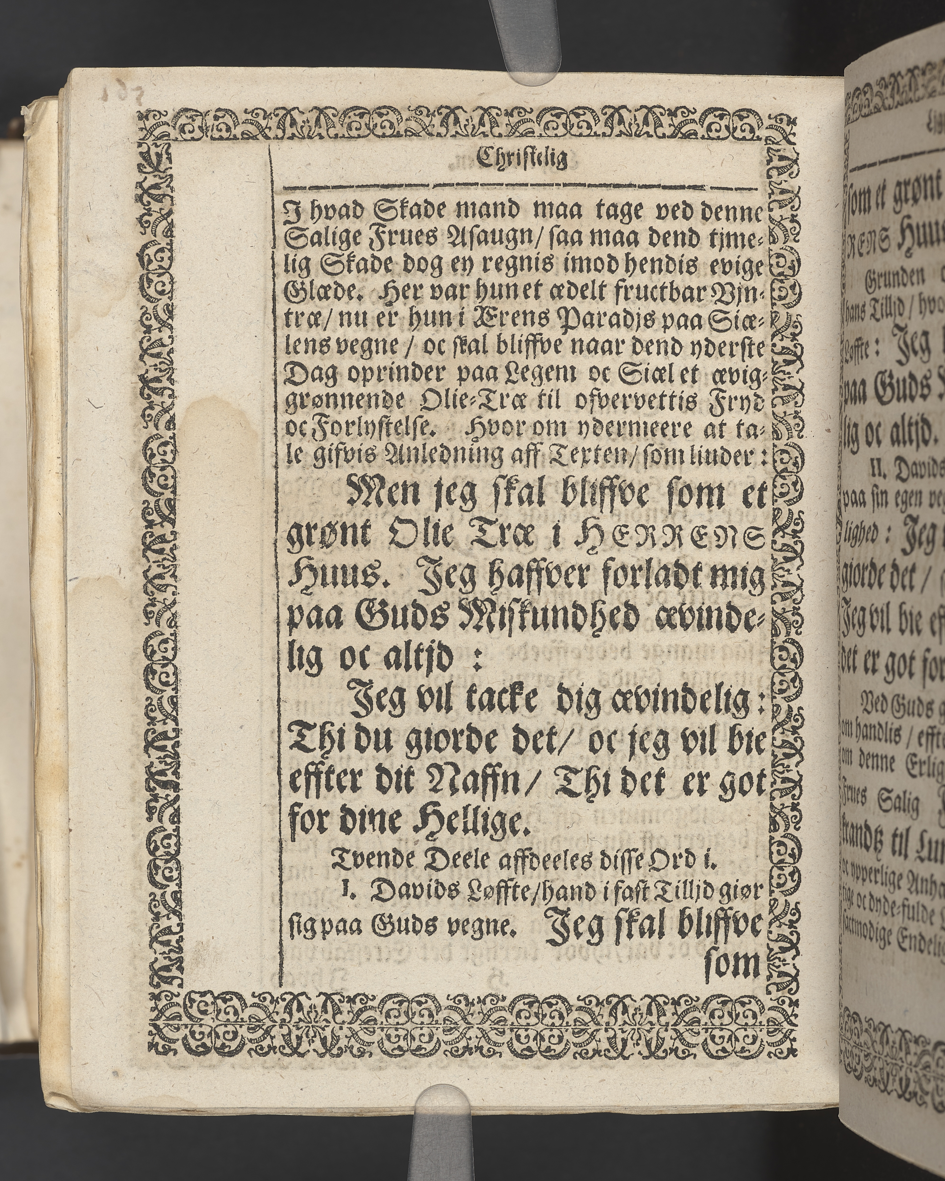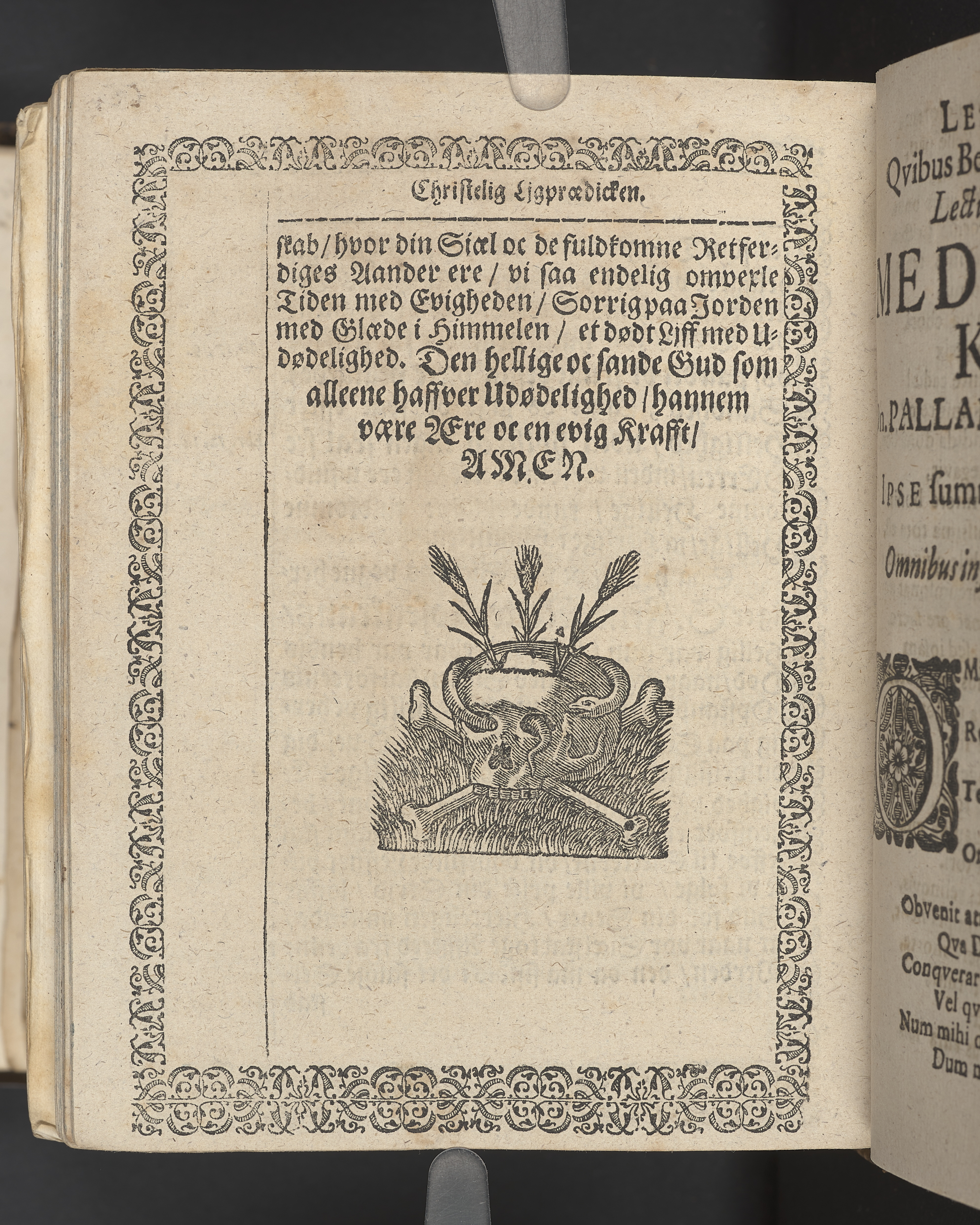 Olie-Træer i Guds Huus... fremsatte, der... Frue Mette Rosenkrandtz, D. Erich Rosenkrandtzis til Rosenholm, hendis salige ligs sørgelige begængelse bleff i Aarhuus domkircke holden dend 2. Maji, 1665 ... Aff Erich Mogenszøn Grawio ... Tryckt i Kiøbenhaffn hos Jørgen Lamprecht, aar 1666.