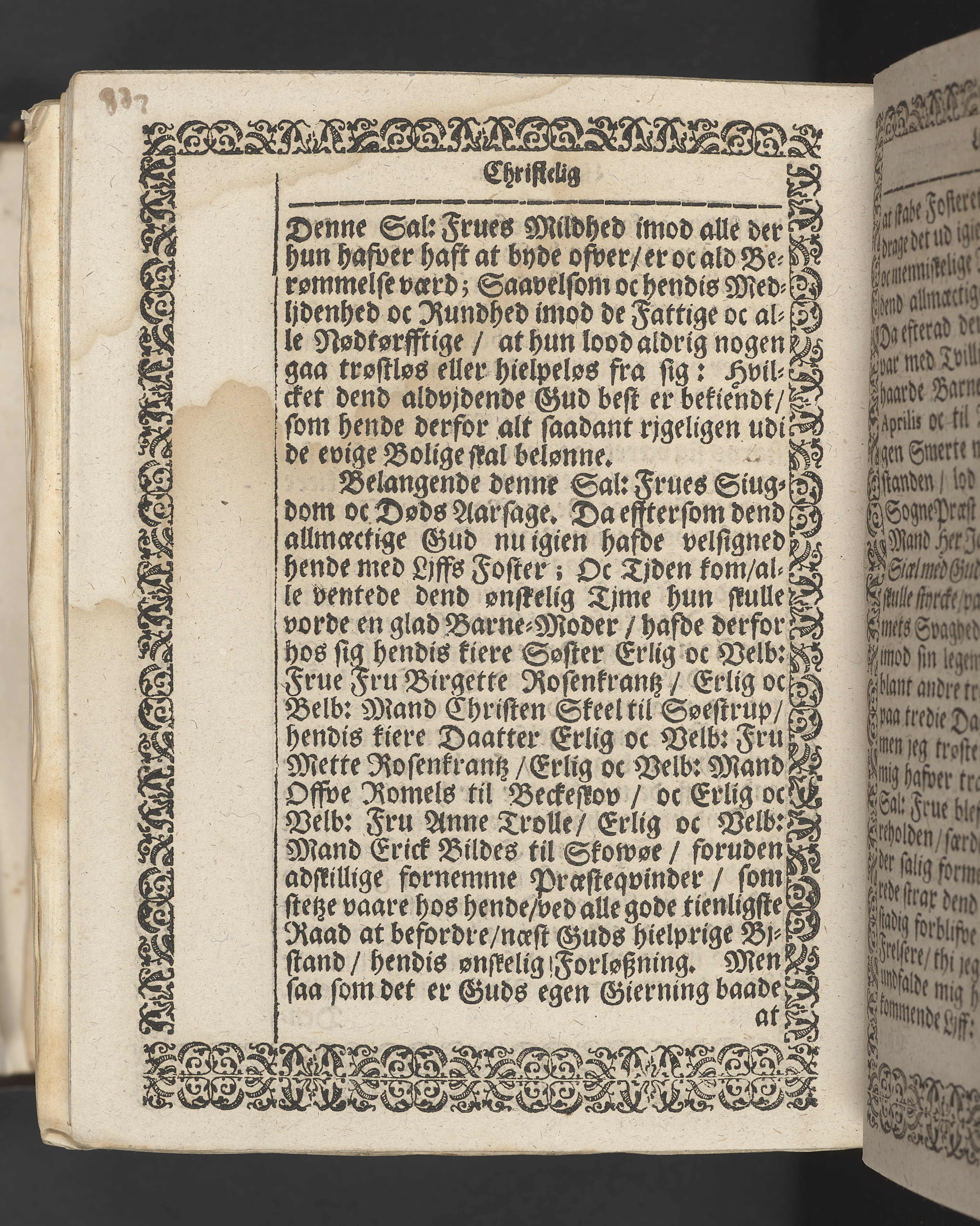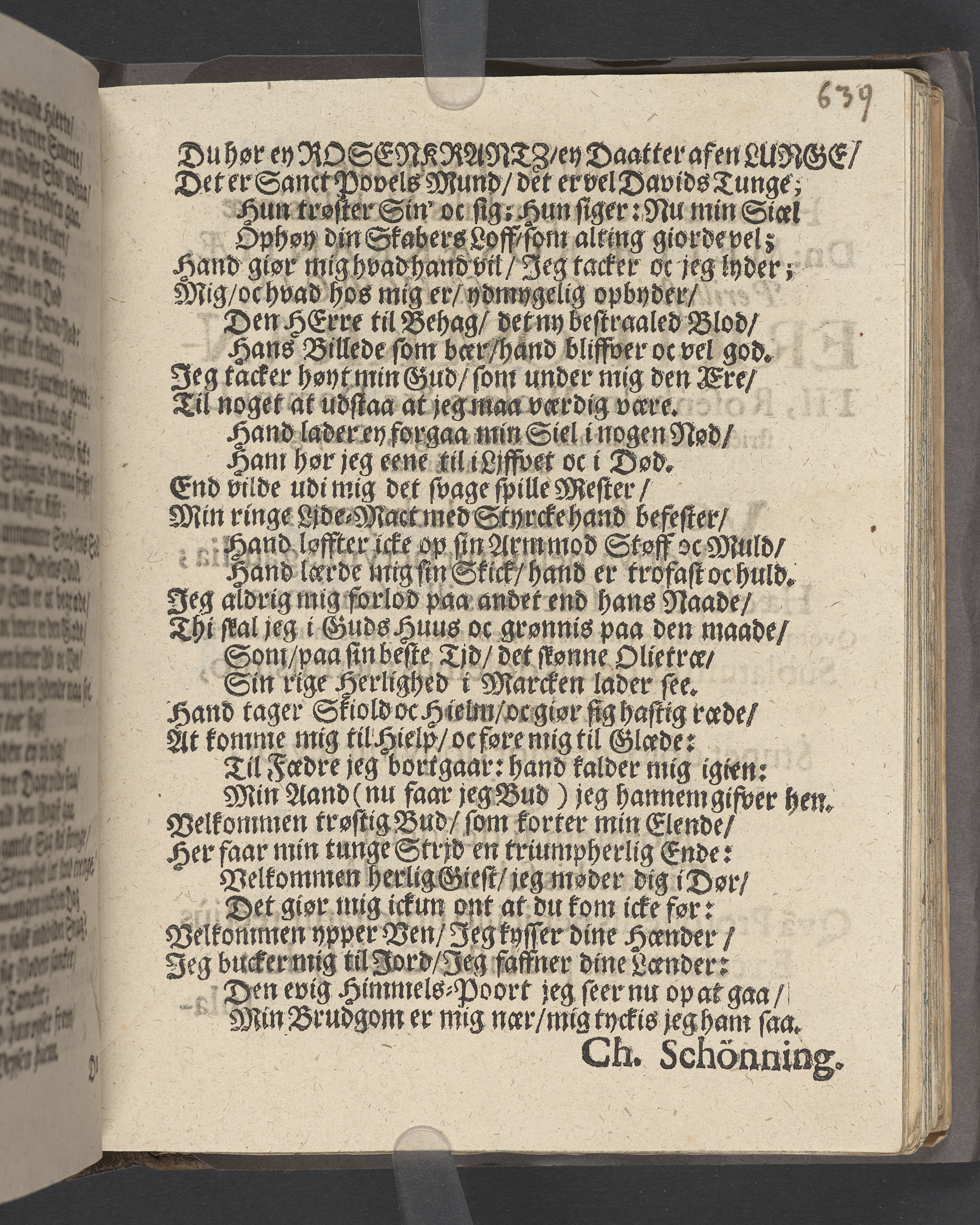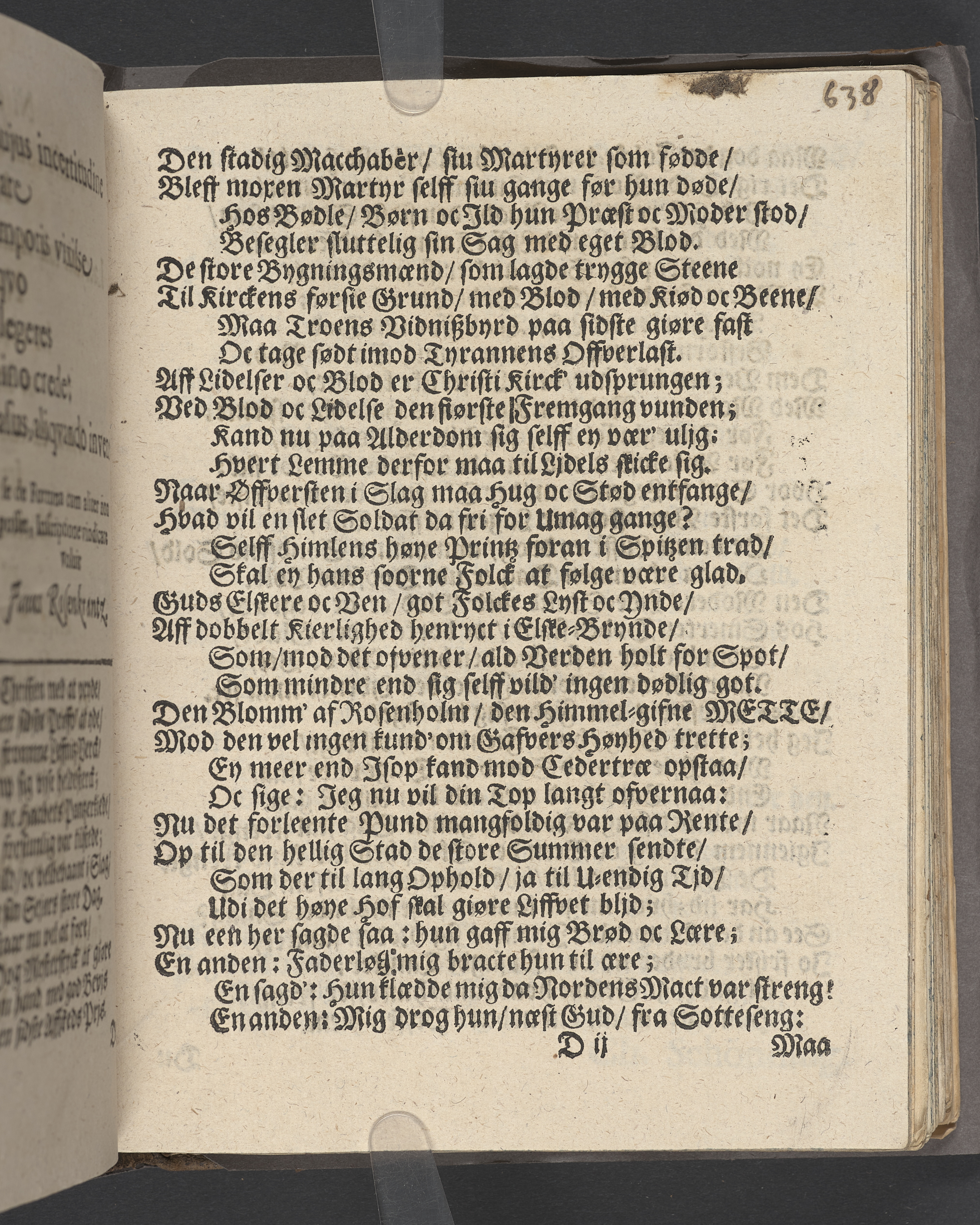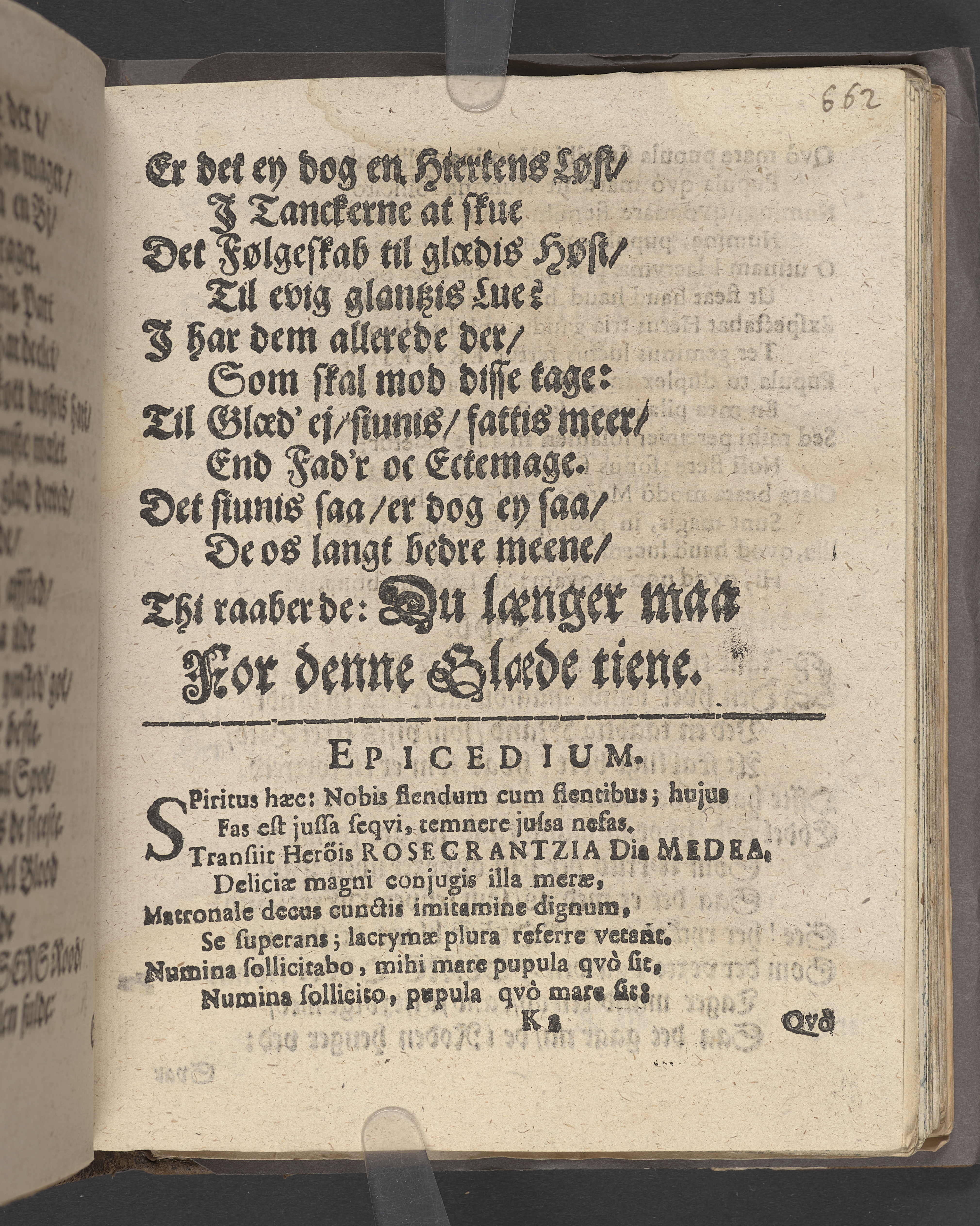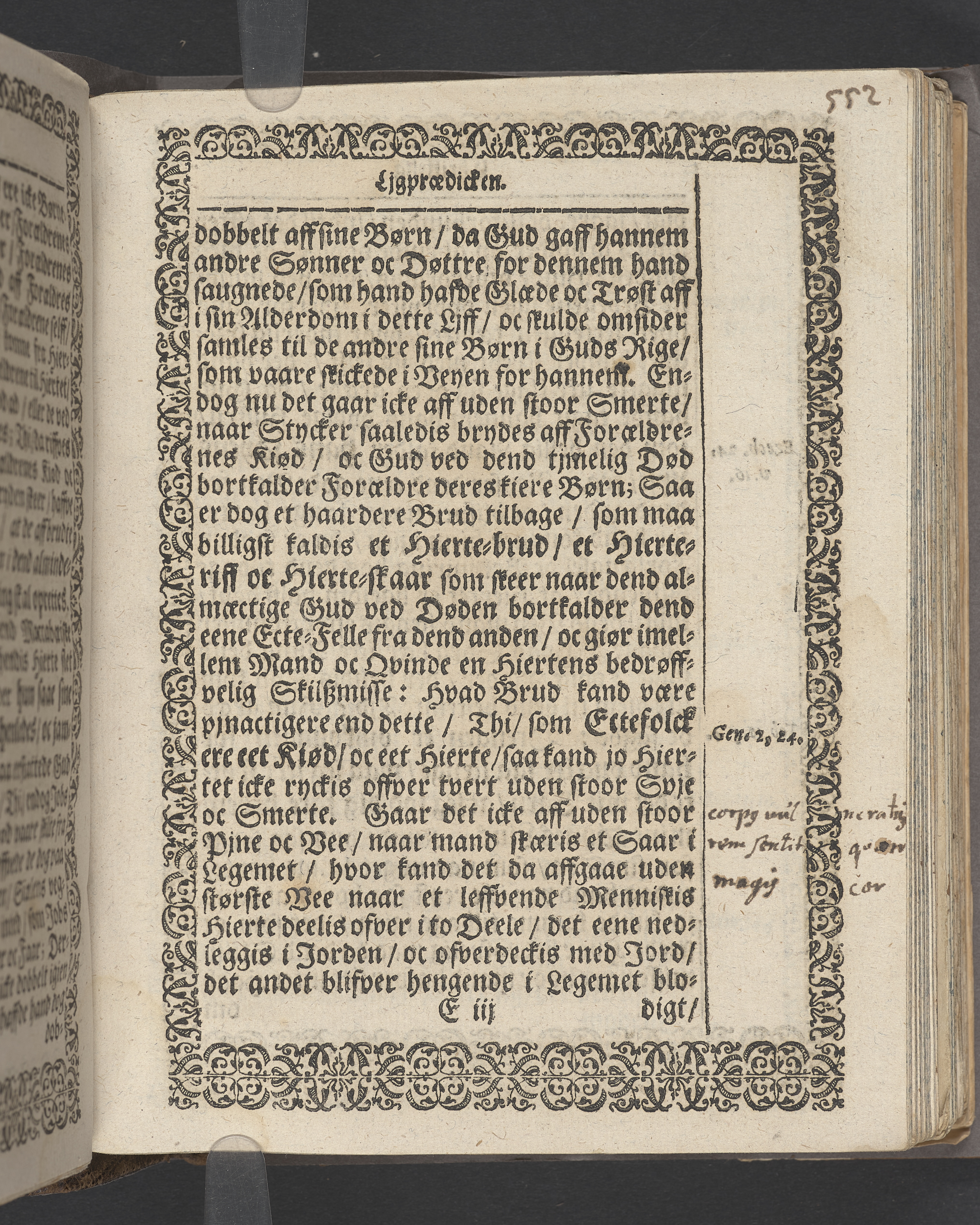 Olie-Træer i Guds Huus... fremsatte, der... Frue Mette Rosenkrandtz, D. Erich Rosenkrandtzis til Rosenholm, hendis salige ligs sørgelige begængelse bleff i Aarhuus domkircke holden dend 2. Maji, 1665 ... Aff Erich Mogenszøn Grawio ... Tryckt i Kiøbenhaffn hos Jørgen Lamprecht, aar 1666.