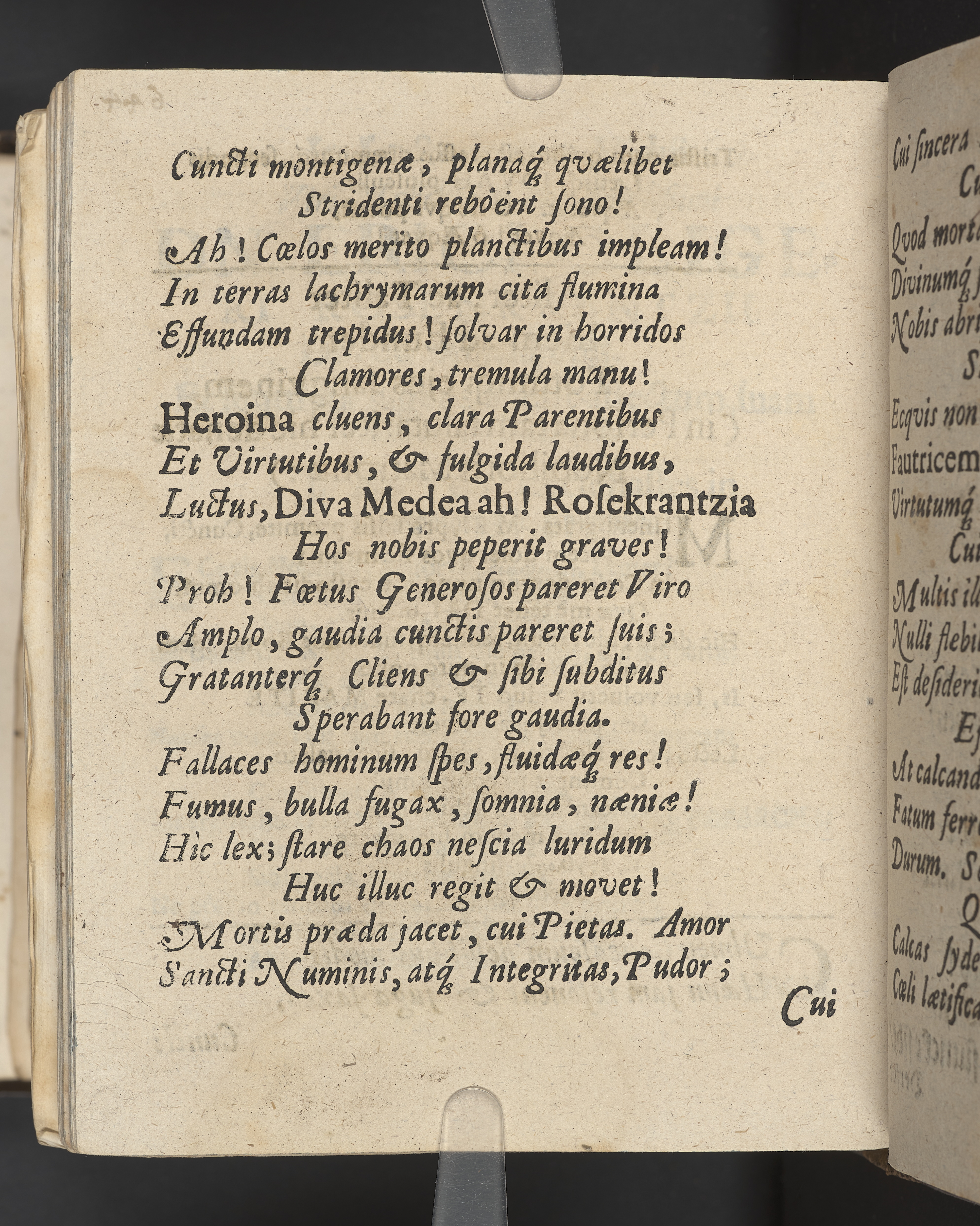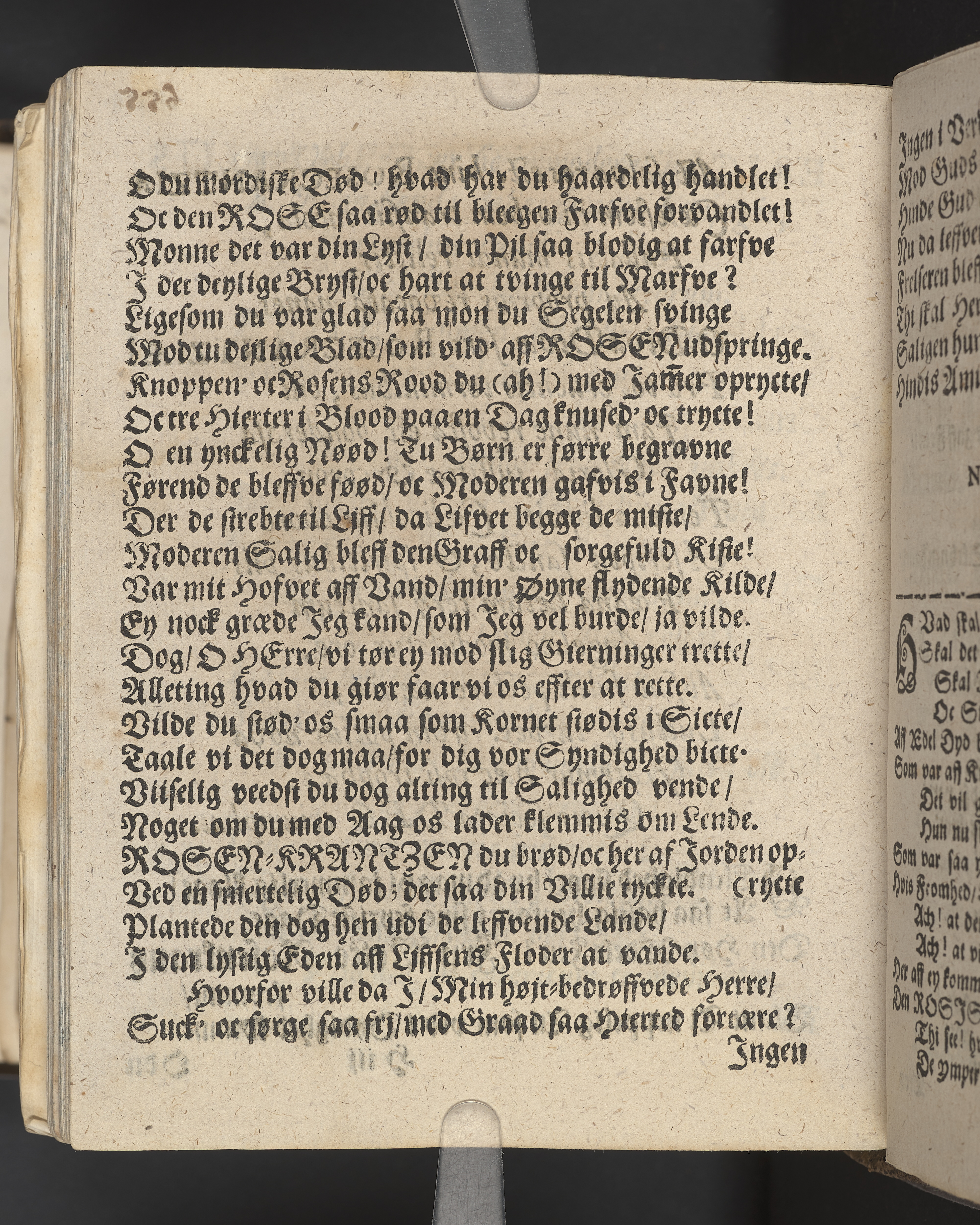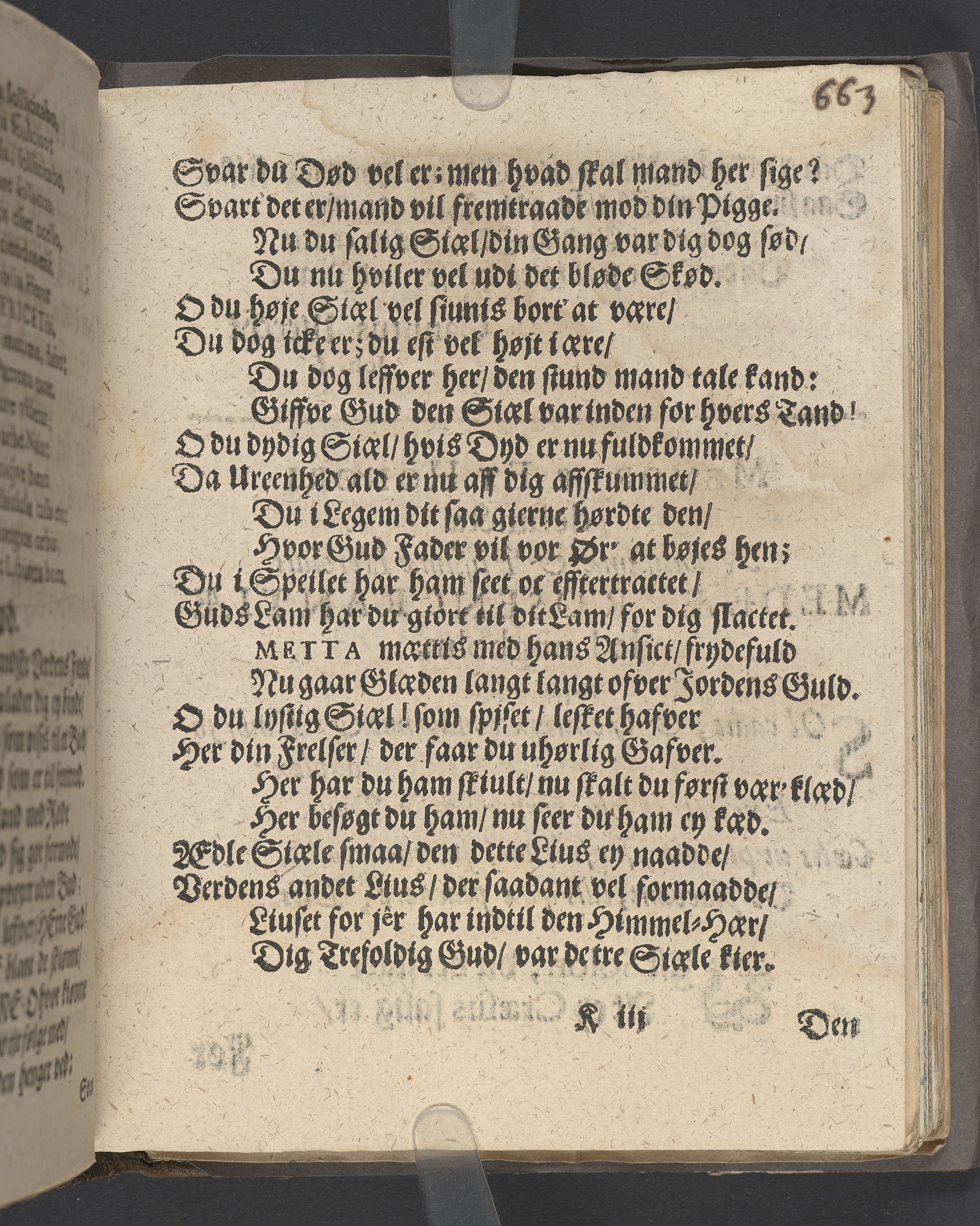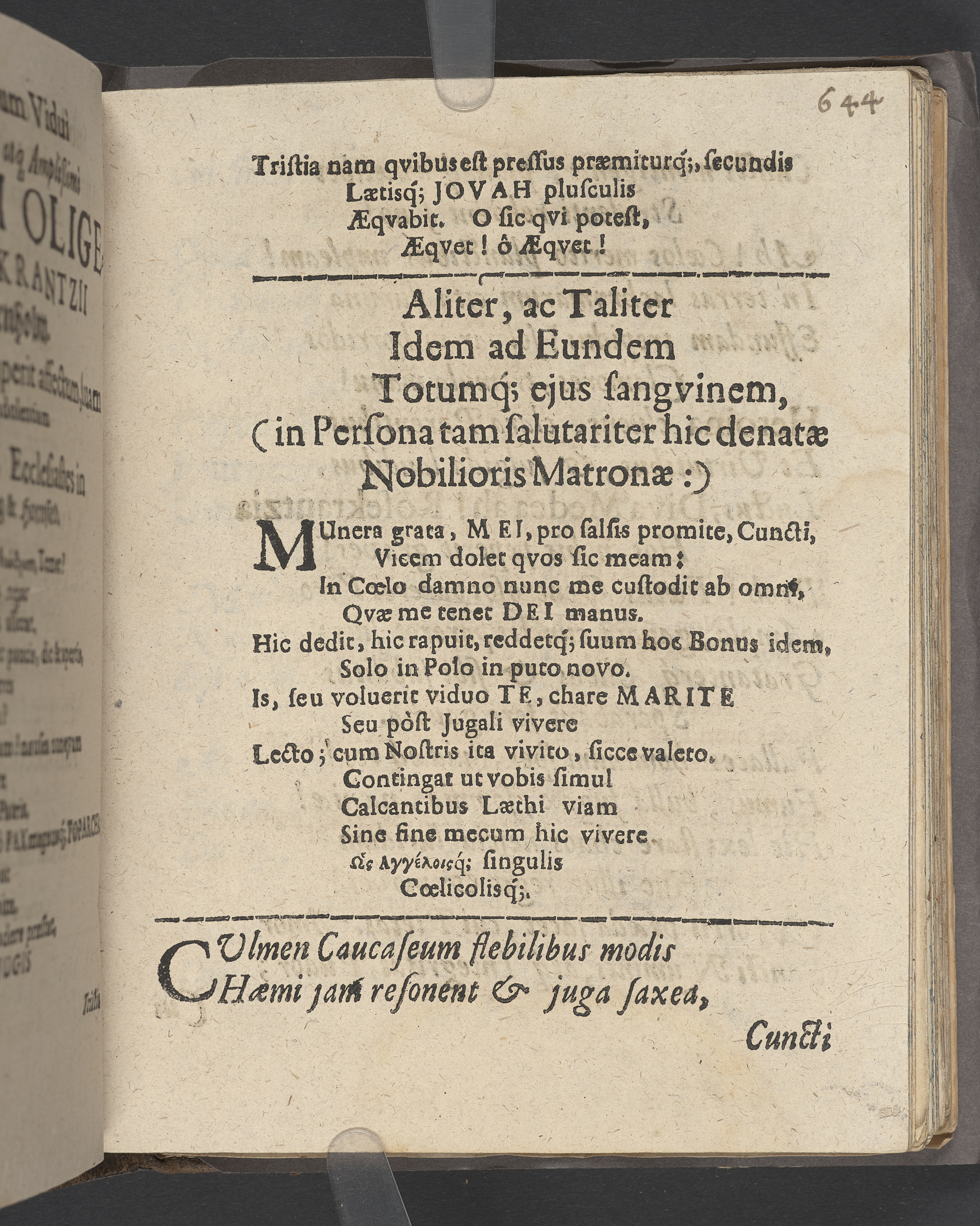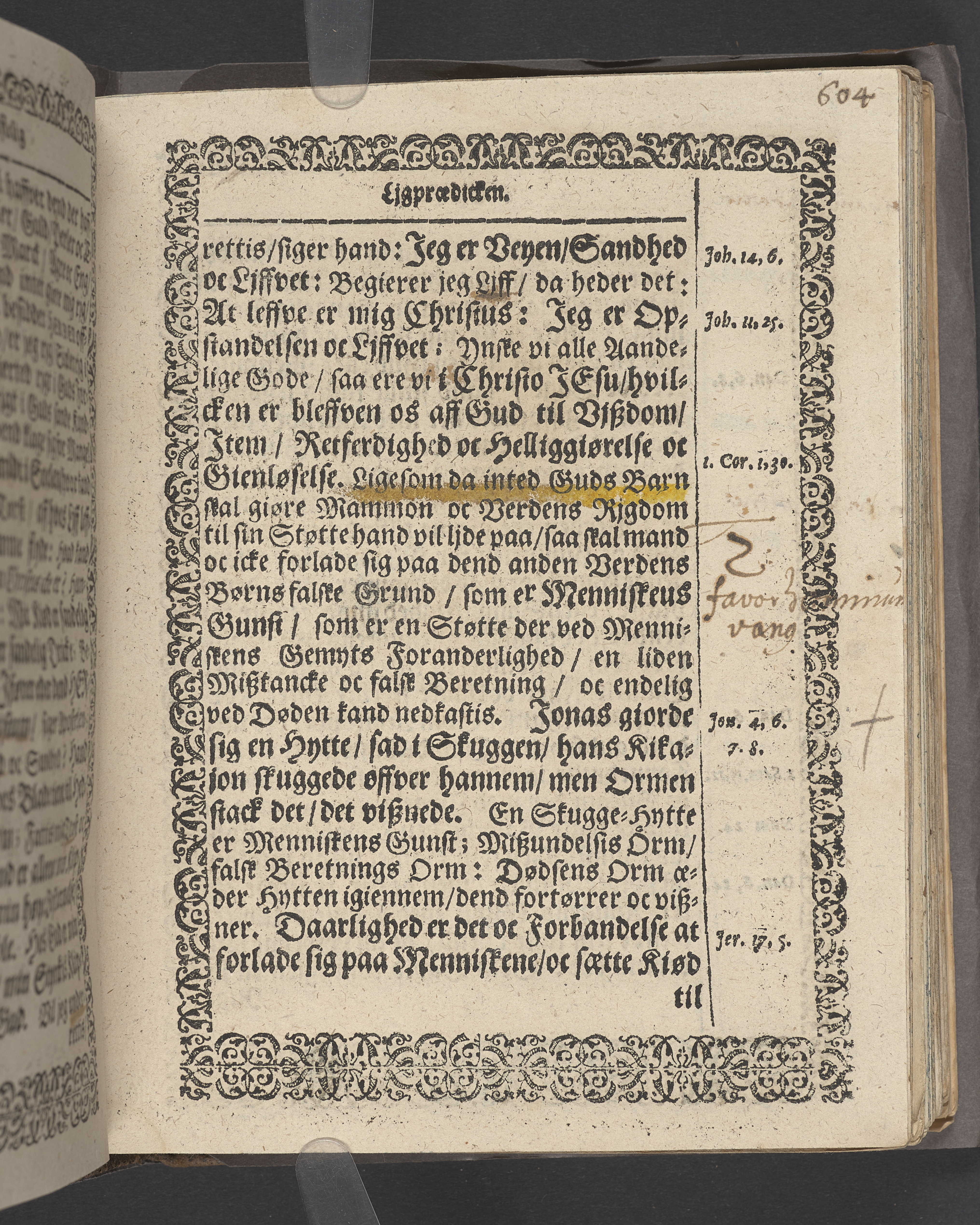 Olie-Træer i Guds Huus... fremsatte, der... Frue Mette Rosenkrandtz, D. Erich Rosenkrandtzis til Rosenholm, hendis salige ligs sørgelige begængelse bleff i Aarhuus domkircke holden dend 2. Maji, 1665 ... Aff Erich Mogenszøn Grawio ... Tryckt i Kiøbenhaffn hos Jørgen Lamprecht, aar 1666.