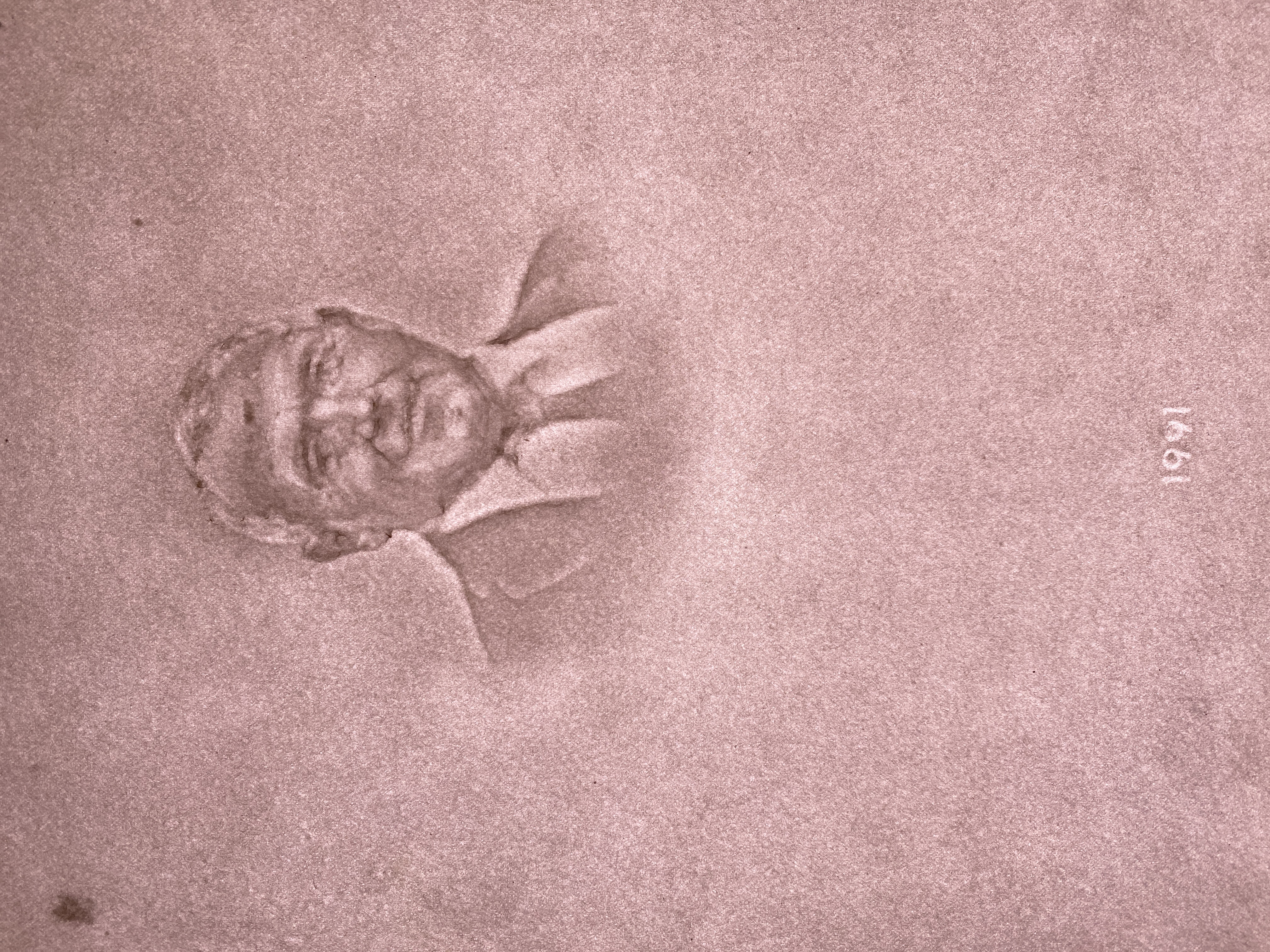 Grovt, tjockt, handgjort papper med vattenstämpel föreställande riksbankchefen Bengt Dennis (?). Under motivet finns även årtalet 1991.