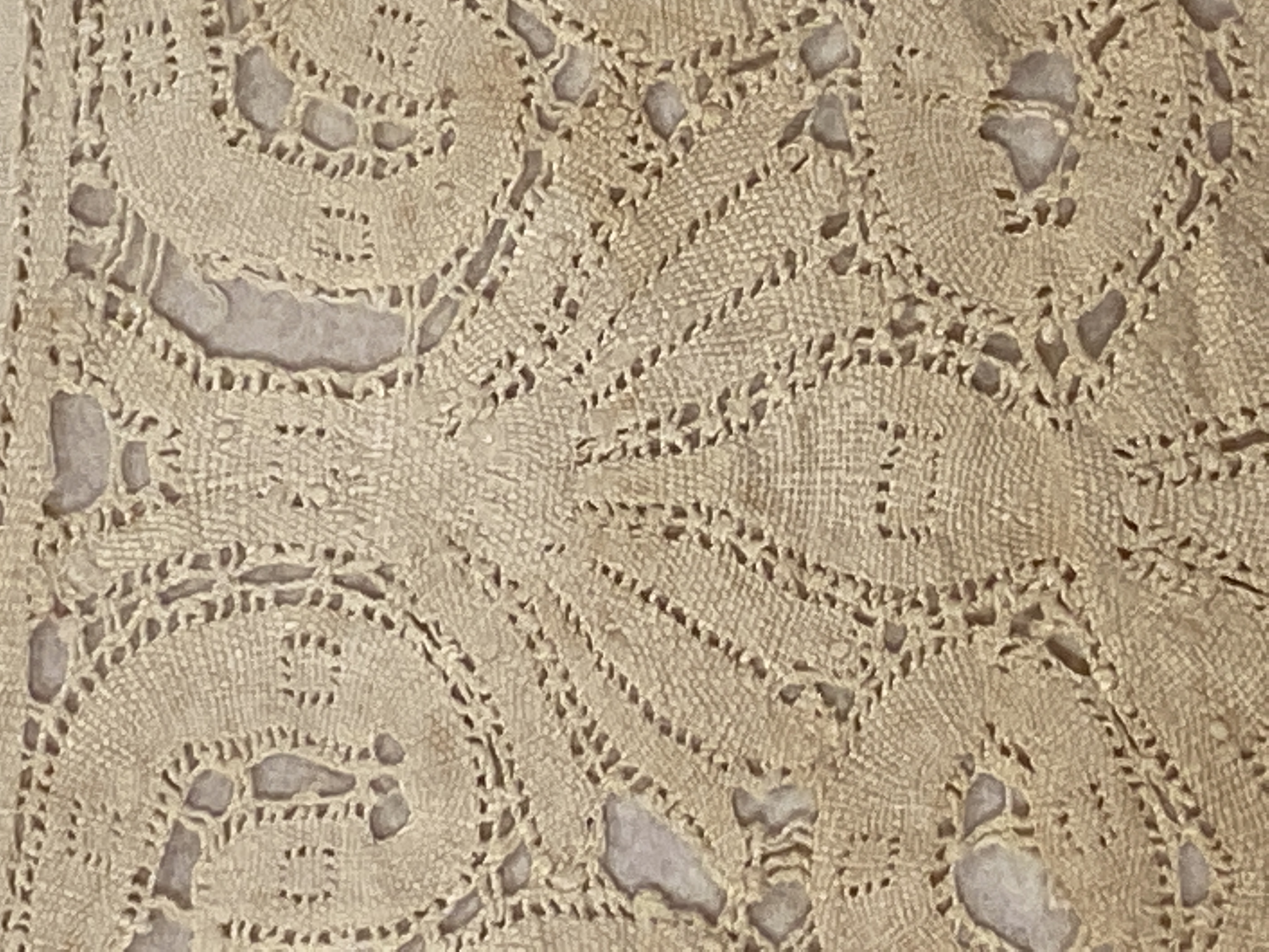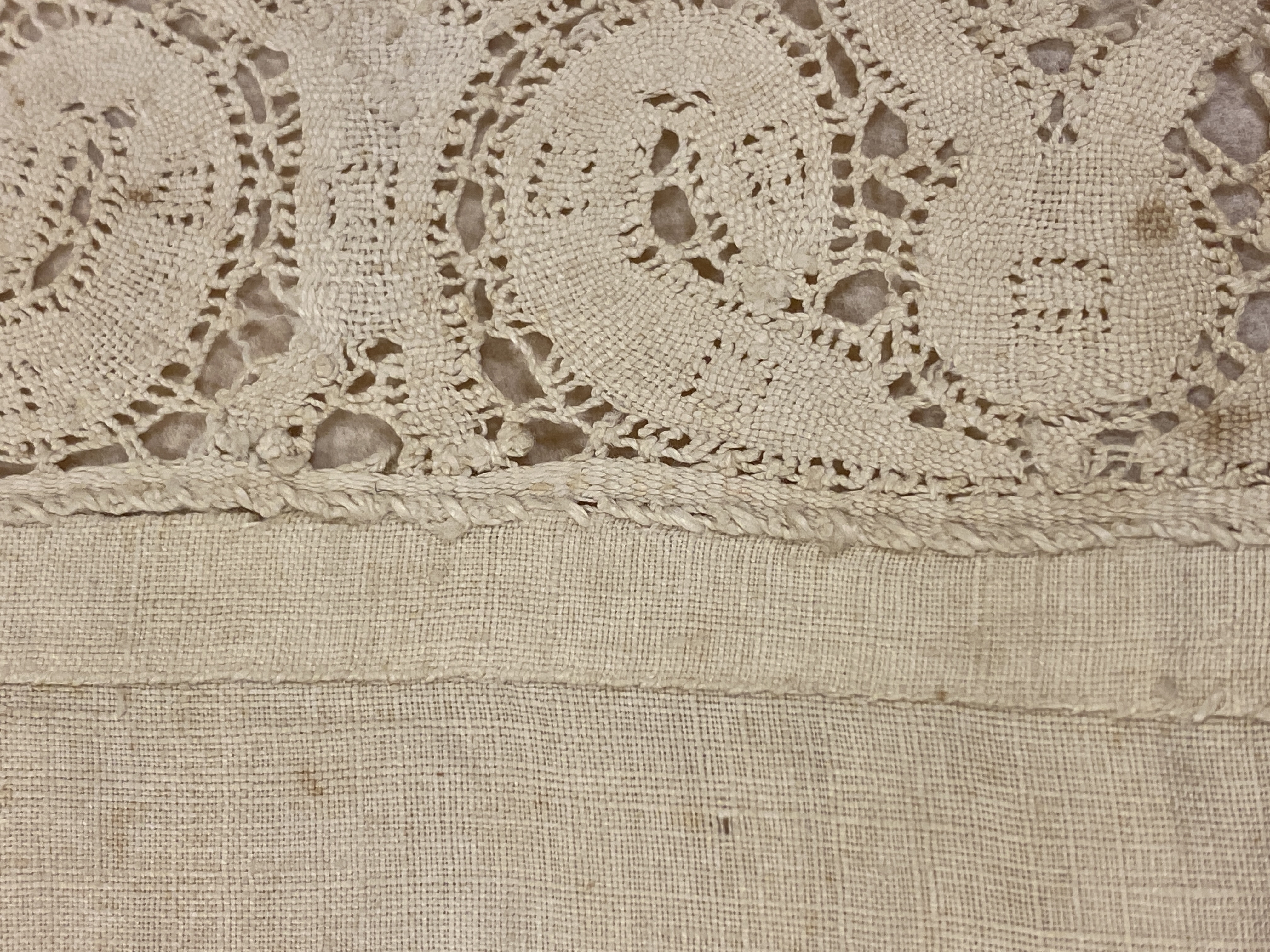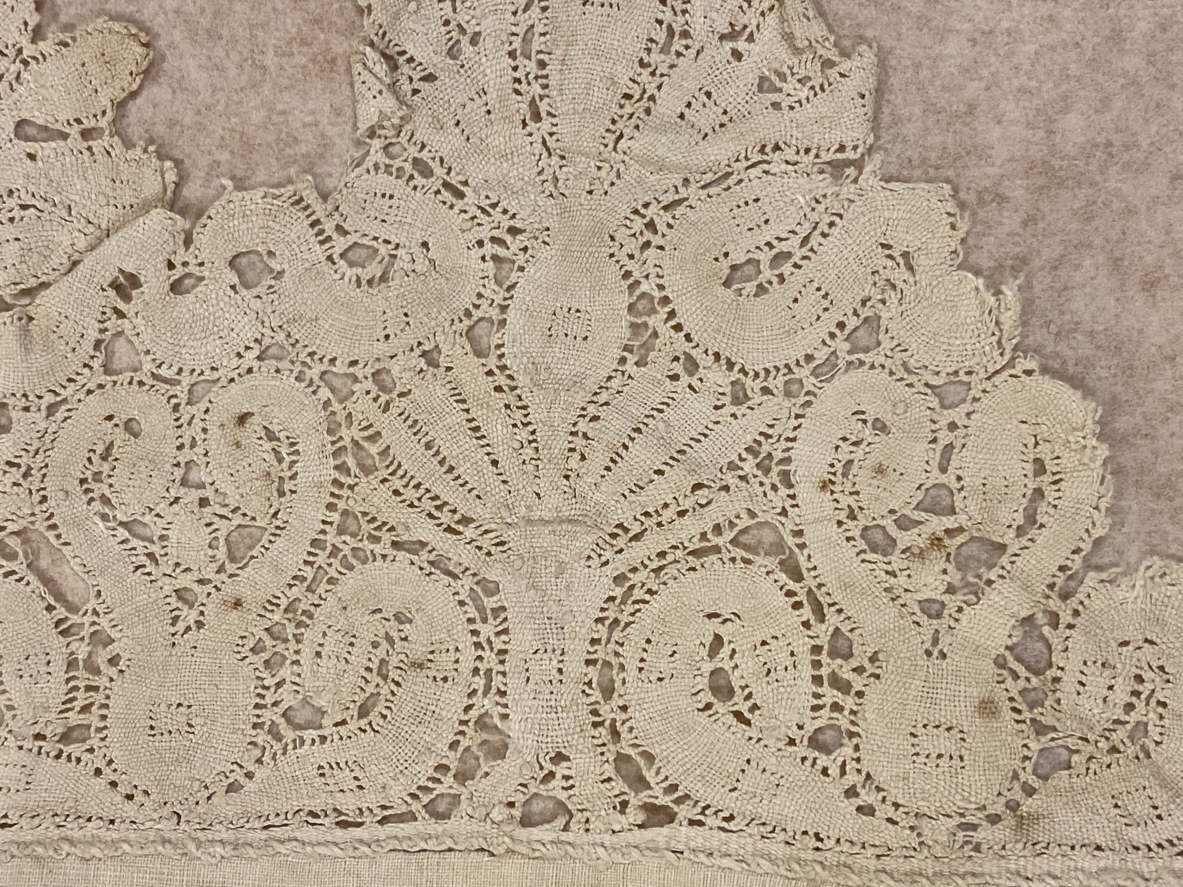 Vitt linne, flandrisk spets. Deponerad i SHM 1986.