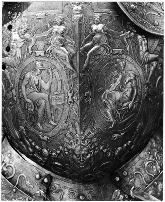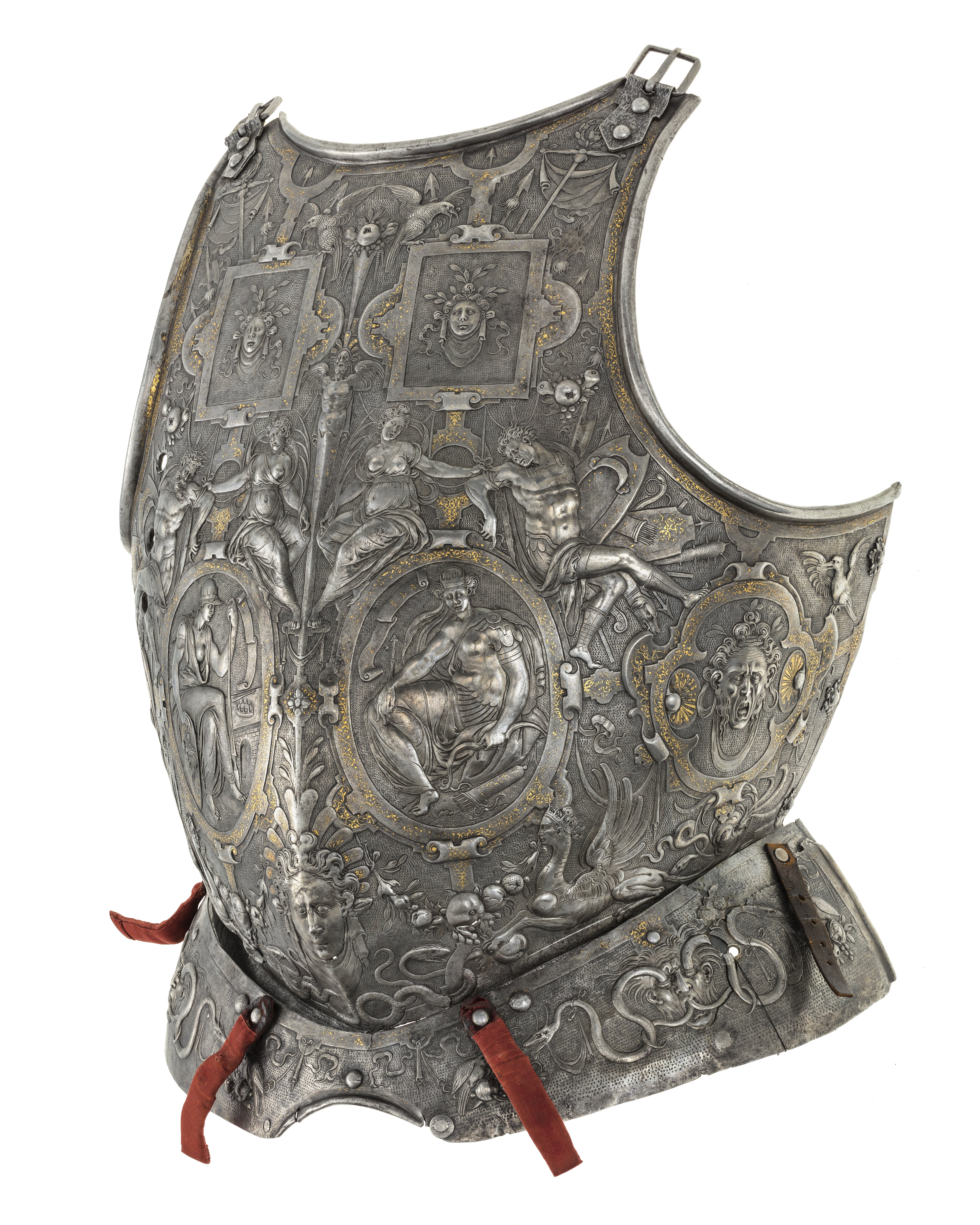 Bukpansar av driven och punsad stålplåt till Erik IIX:s paradrustning