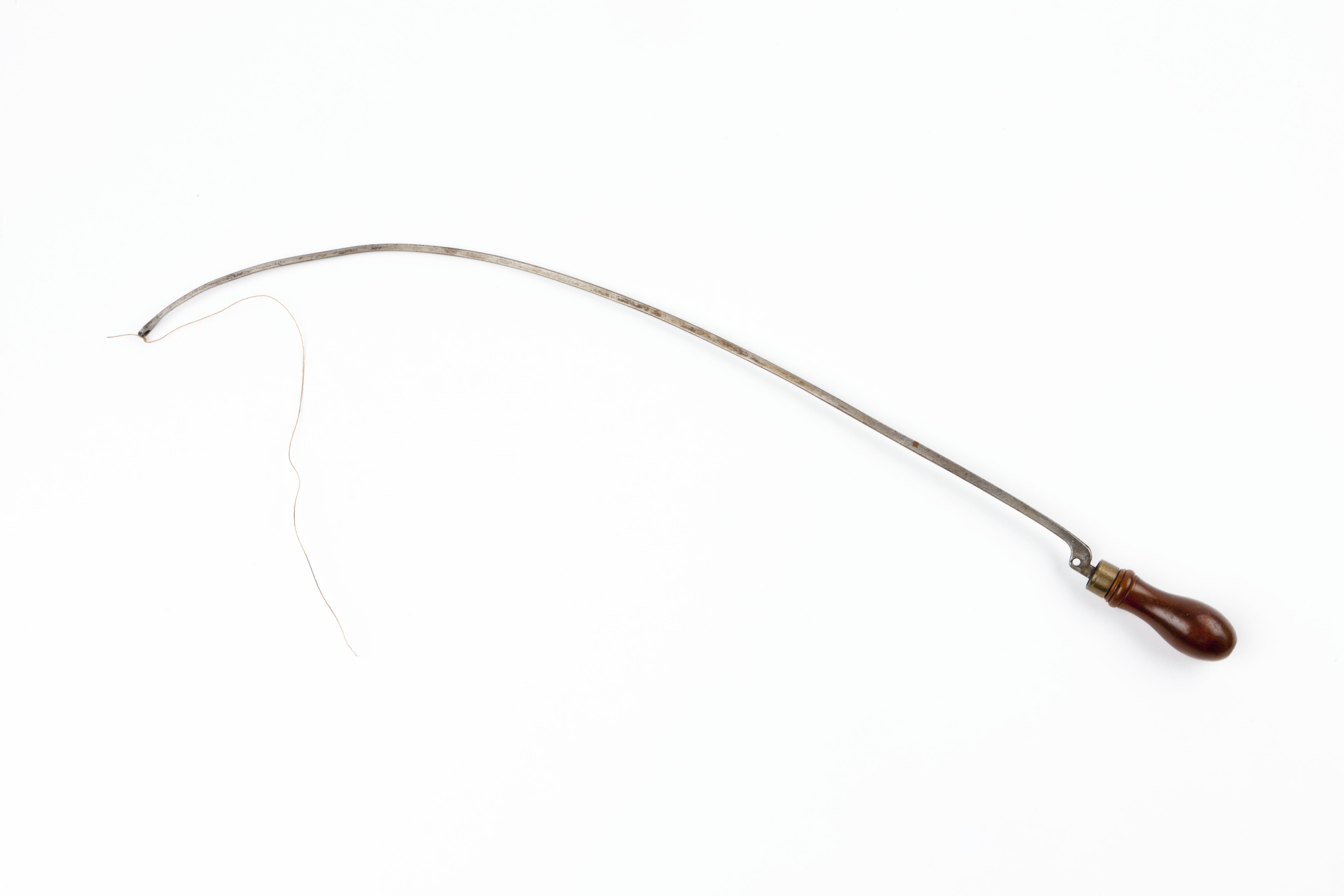 Skaft svarvat av päronträ med mässingsring. Brusten sensträng.