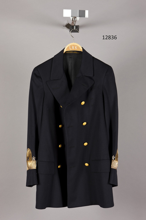 Innerkavaj m: 48 med amiralsgaloner m: 30, dock med två innerbröstfickor. Tränsar på vänster bröst. I höger innerbröstficka vit vaxduksetikett: "F. KAEDINGS EFTERTRÄDARE // STOCKHOLM 28:6 1918 // Herr H. M. Konungen." foder av svart bomullssatäng, ärmfoder av vitt siden med smala blå och svarta ränder. I ryggen etikett: "F. R. KAEDINGS EFTR. // Kongl. Hofleverantörer STOCKHOLM" Kragh: 50 mm, rygg l: 840 mm, rygg b: 410 mm, midja: 1000 mm, l fram: 770 mm, ärml: 660 mm.