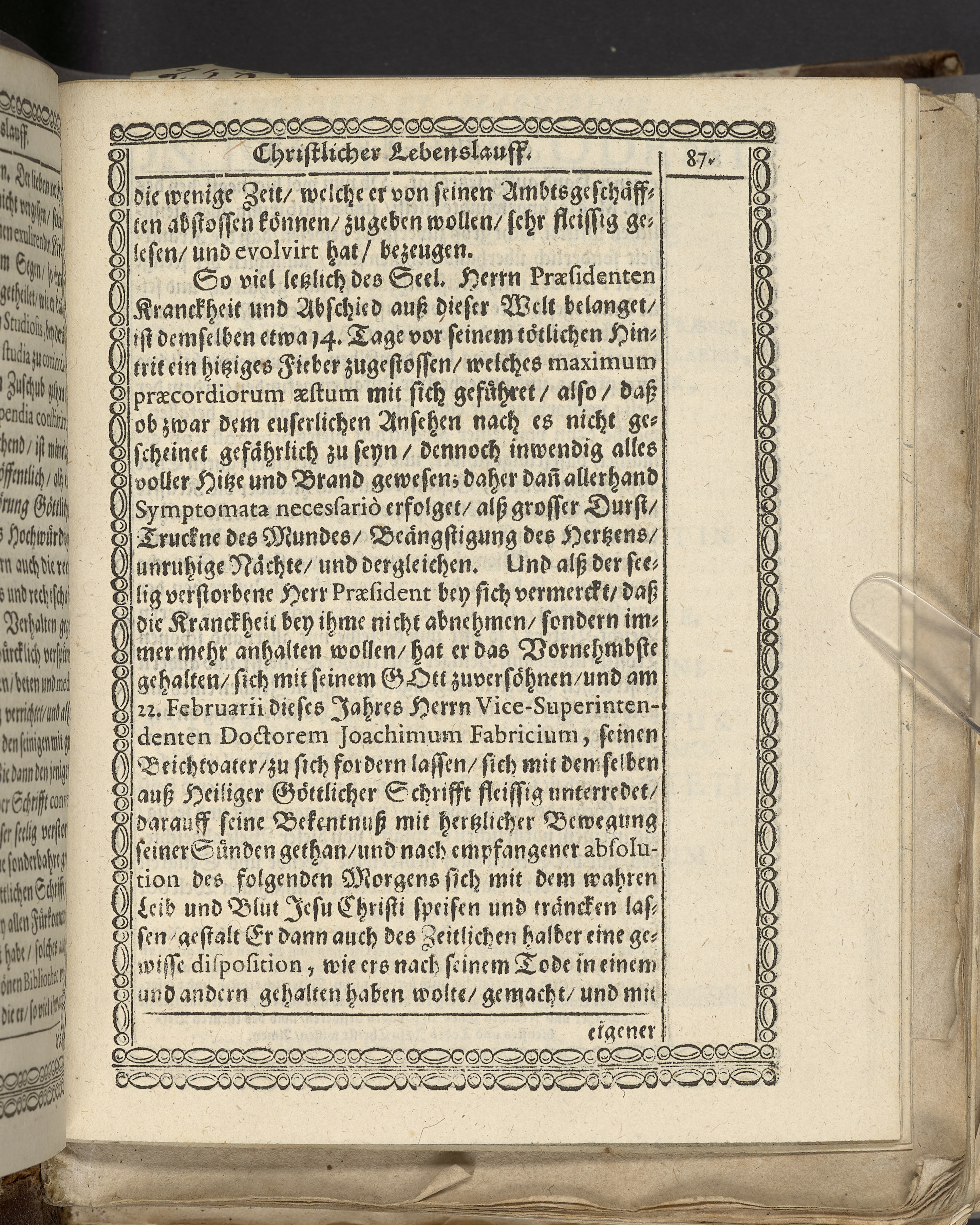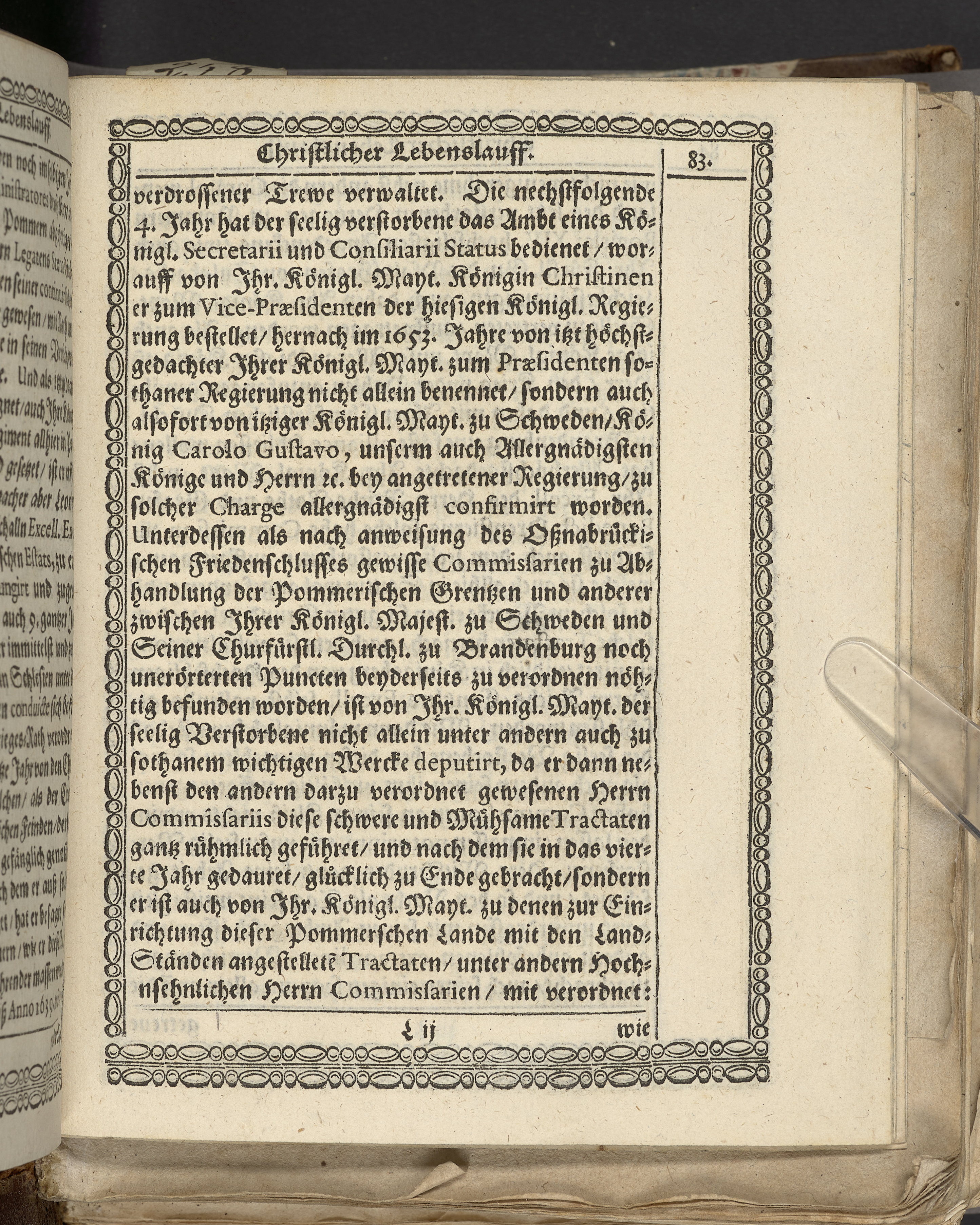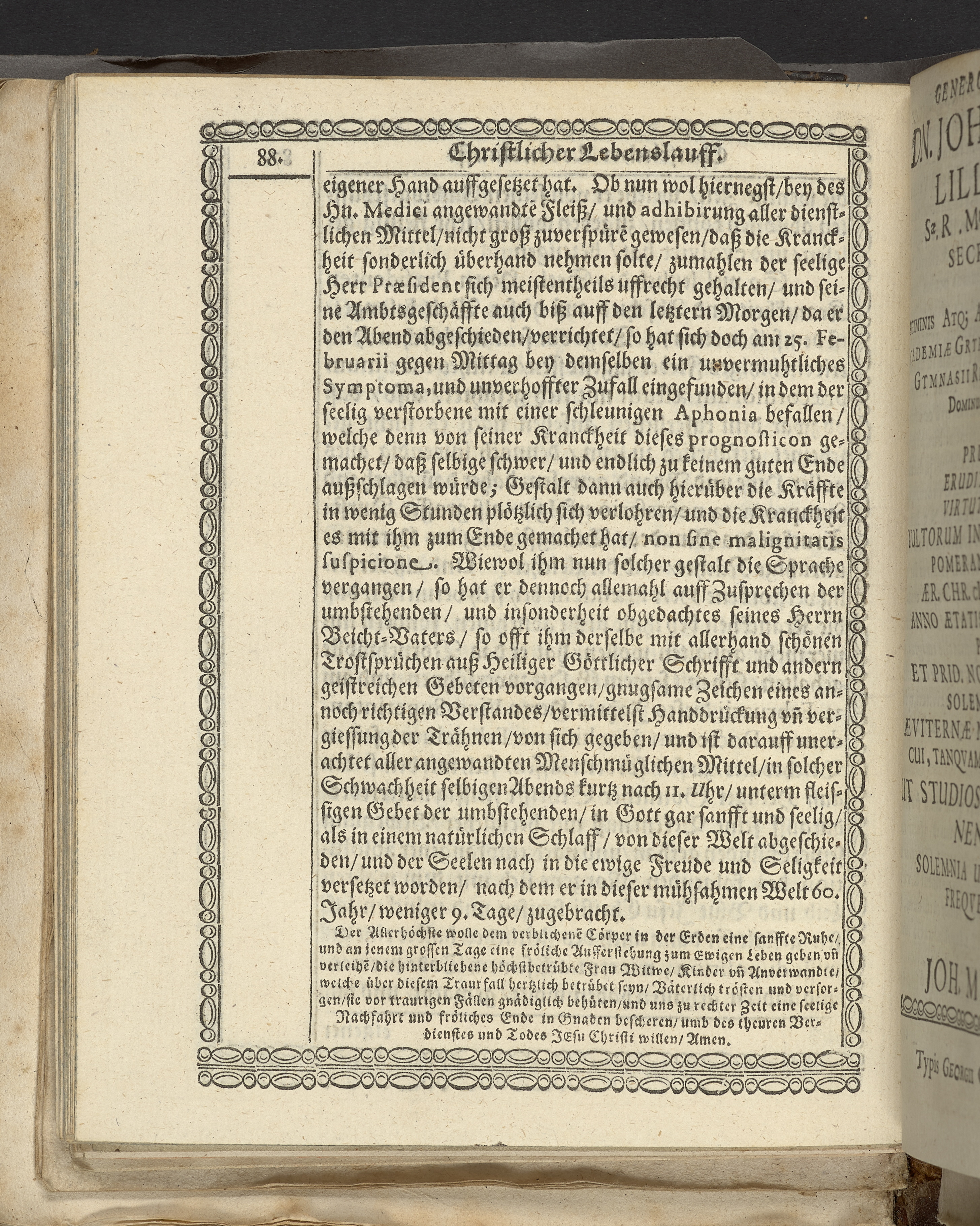 Eliakimus a Deo exaltatus et sublatus ... Bey der hochadelichen und christrühmlichen Leichbestätigund des ... Hn. Johan[n] Nicodemi Lillienströhms, Ihr. königl. Mayt. und dero Reiche Schweden gewesenen wolbestalten Secretarii Status ... auff Eka, Böö und Eichsen Erbherrens ... Dessen abgelebter Cörper ... am 4. Novembris vorerwehnten Jahres, in S. Marien Stiffts-Krichen zu Alten Stettin beygesetzet ist ... von Joachimo Fabricio ... Gedruckt zu Alten Stettin, bey Georg Götzken, des königl. pådag. Buchdr. Im Jahr 1657.