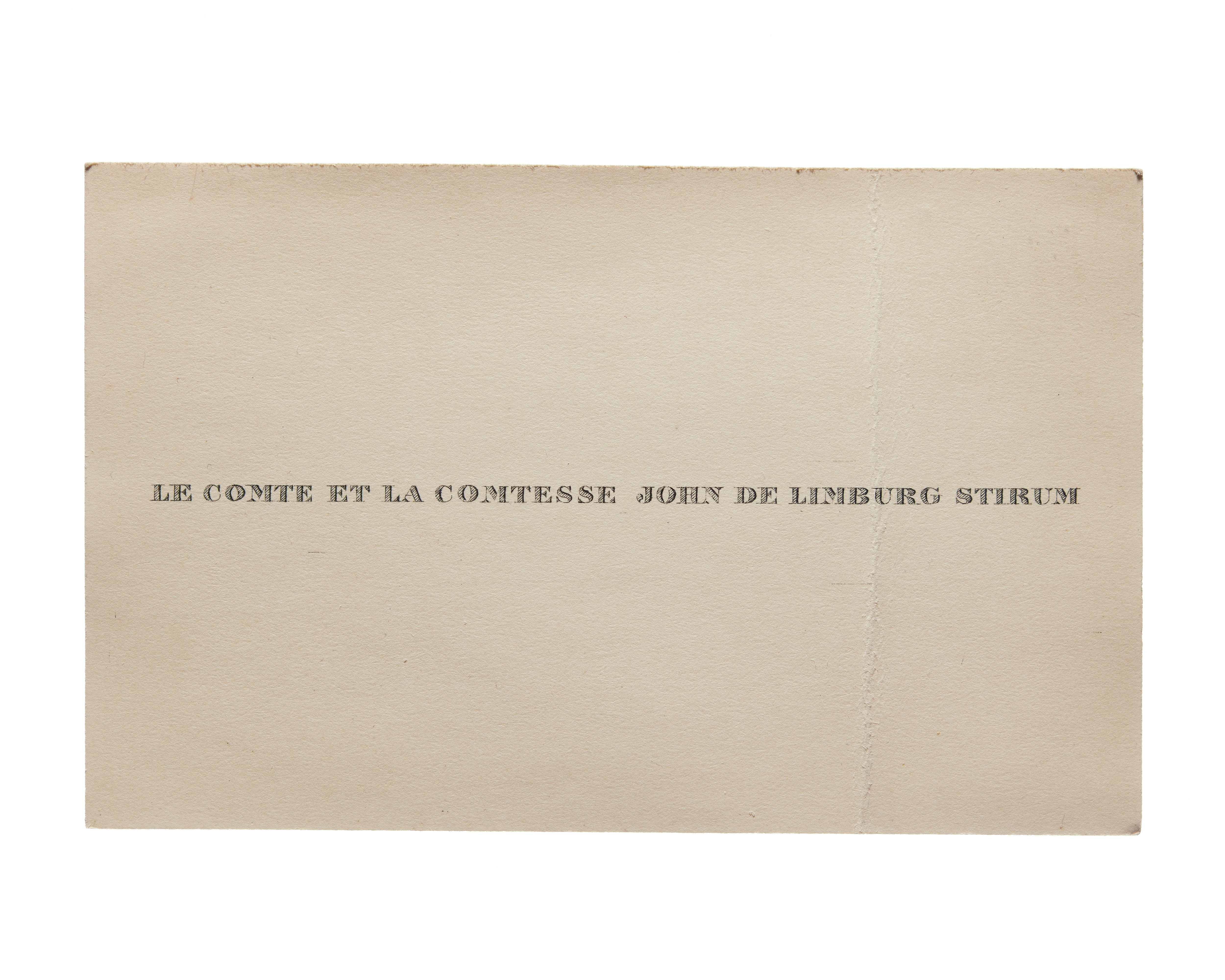 Visitkort från Le Comte et la Comtesse John de Limburg Stirum.