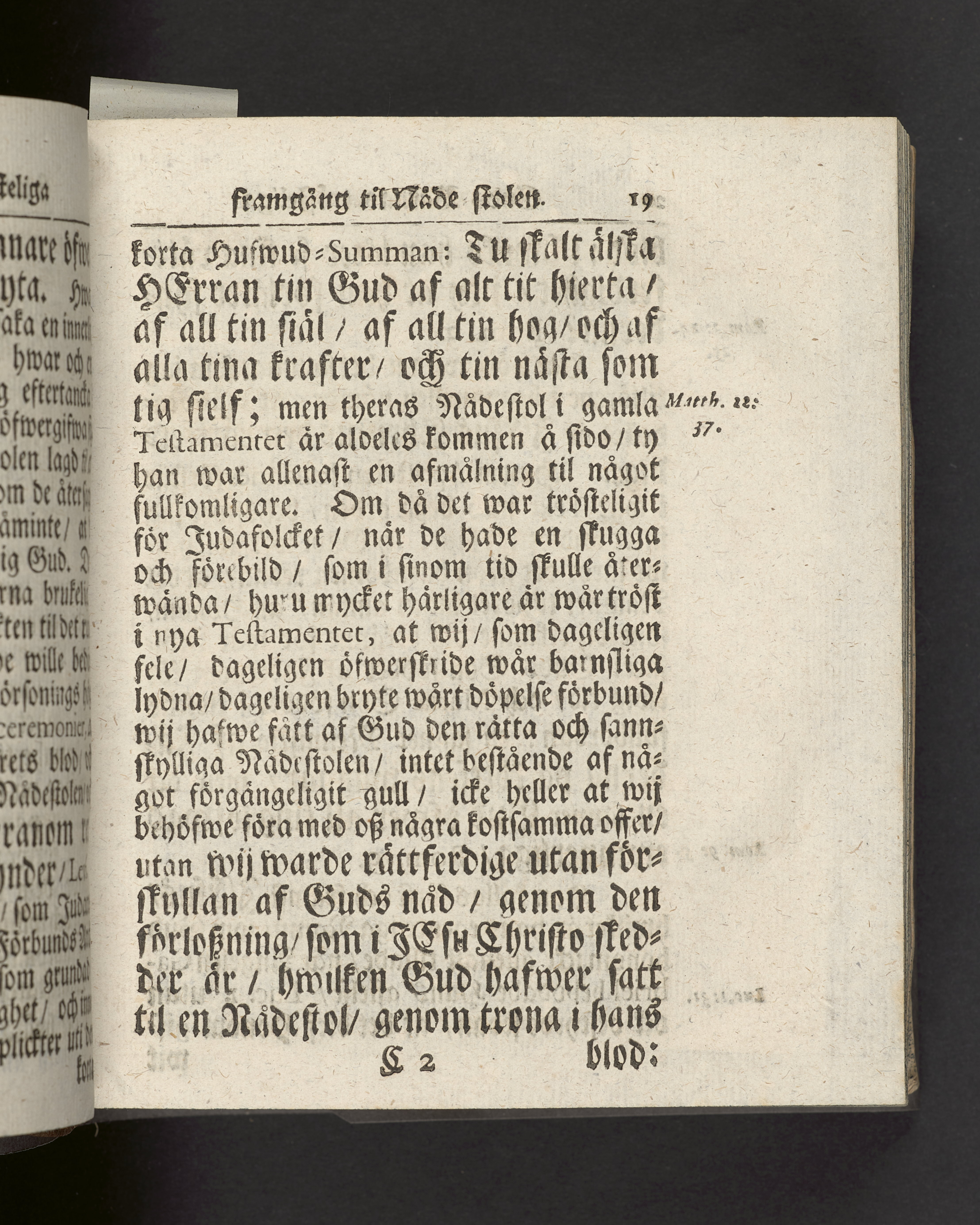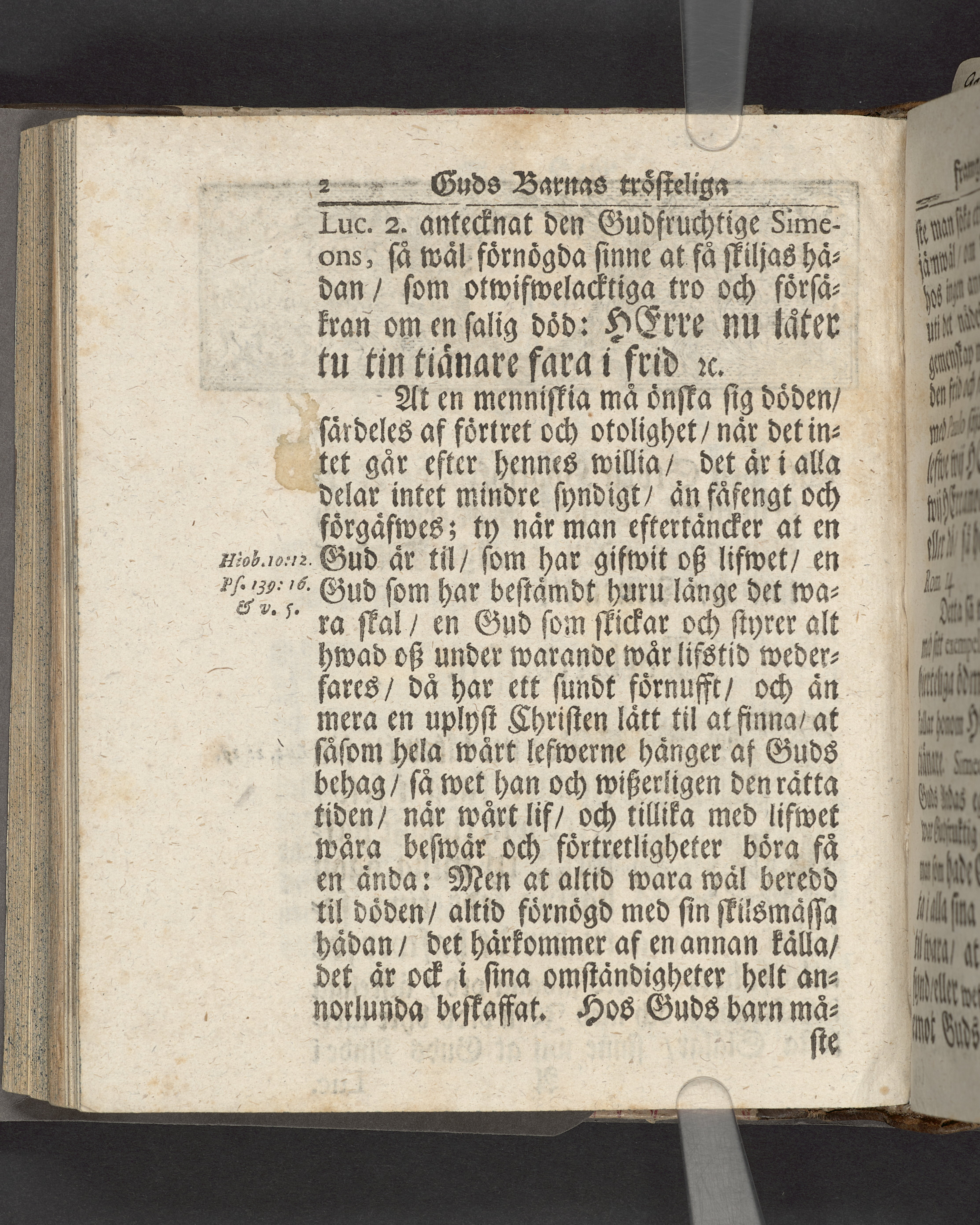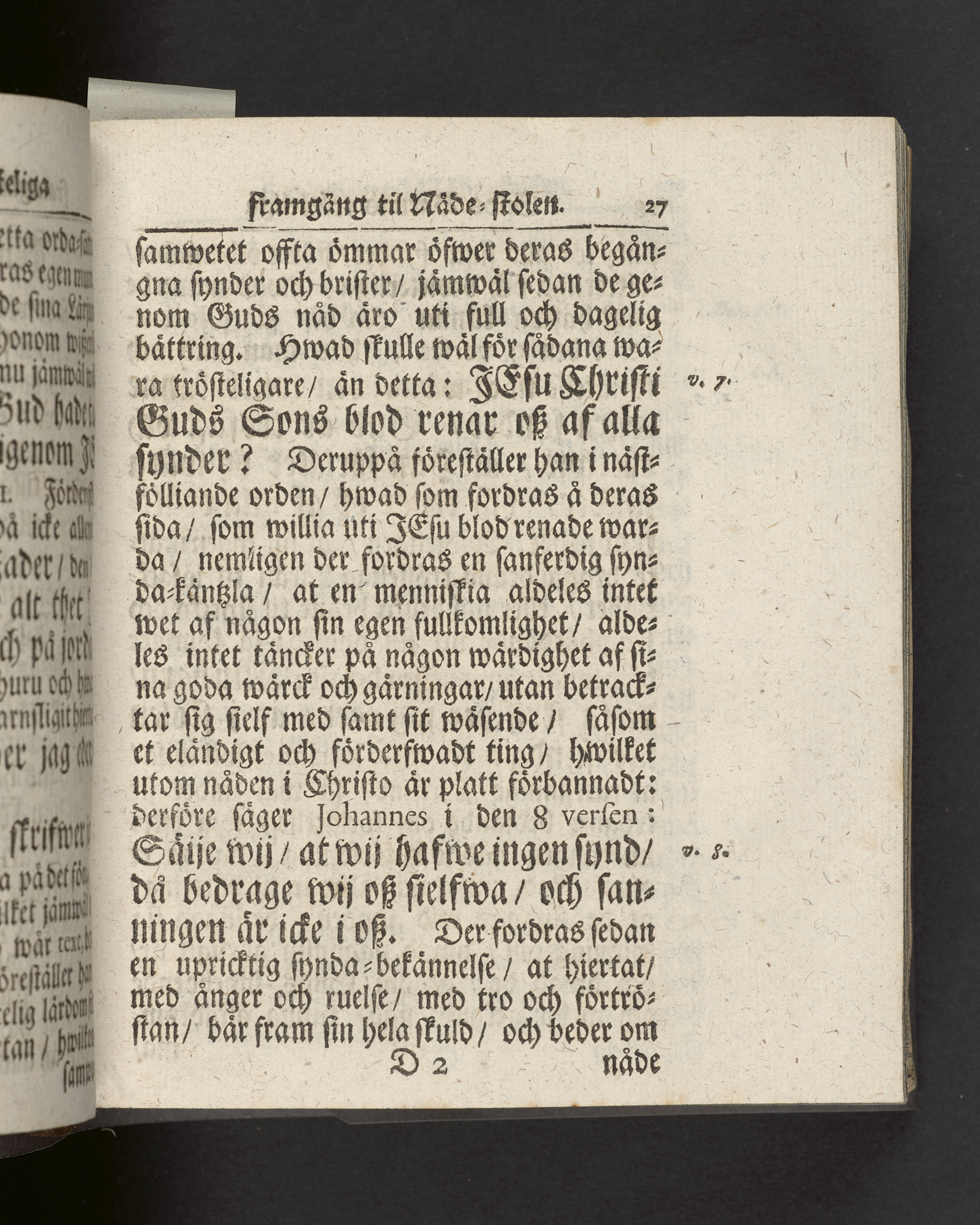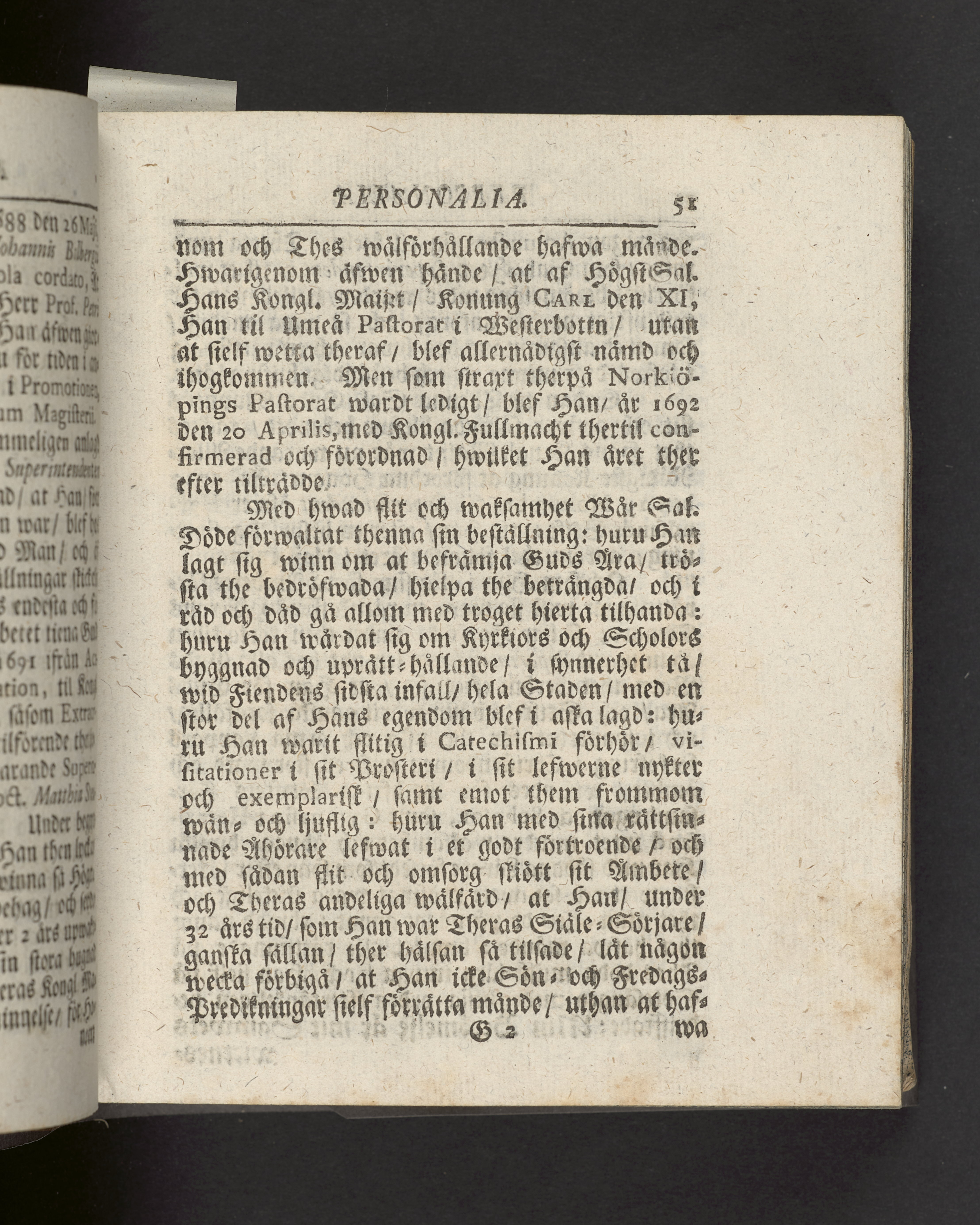 I sammelband med 26 tryck. Högst upp på titelsidan anteckning med uppgifter om födelse- och dödsdatum för den avlidna. Snitten stänkta i blått.